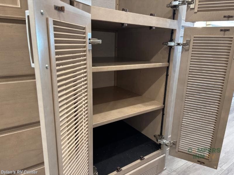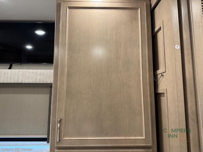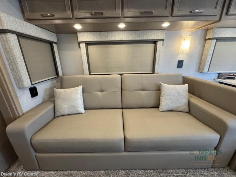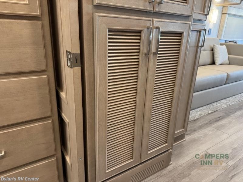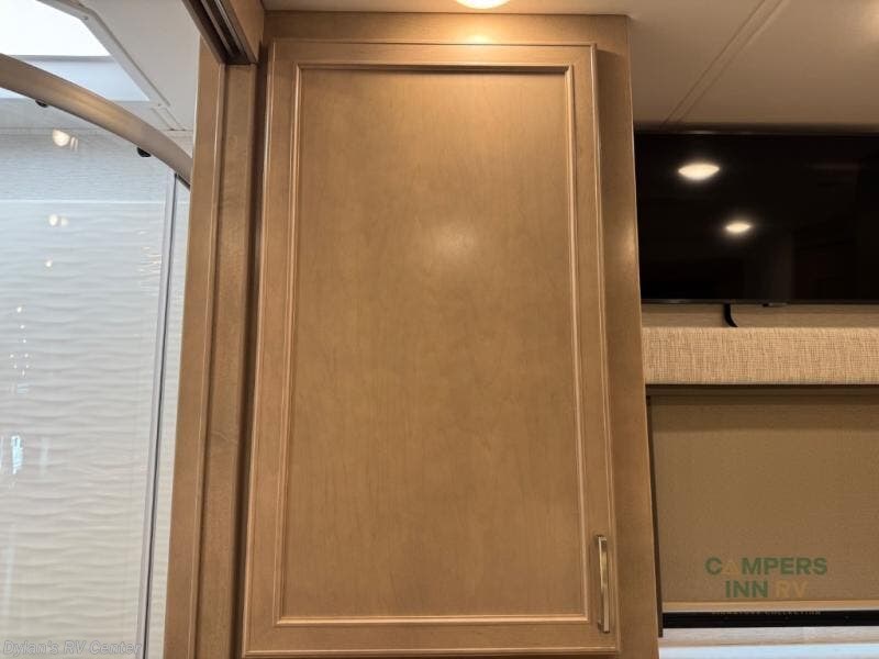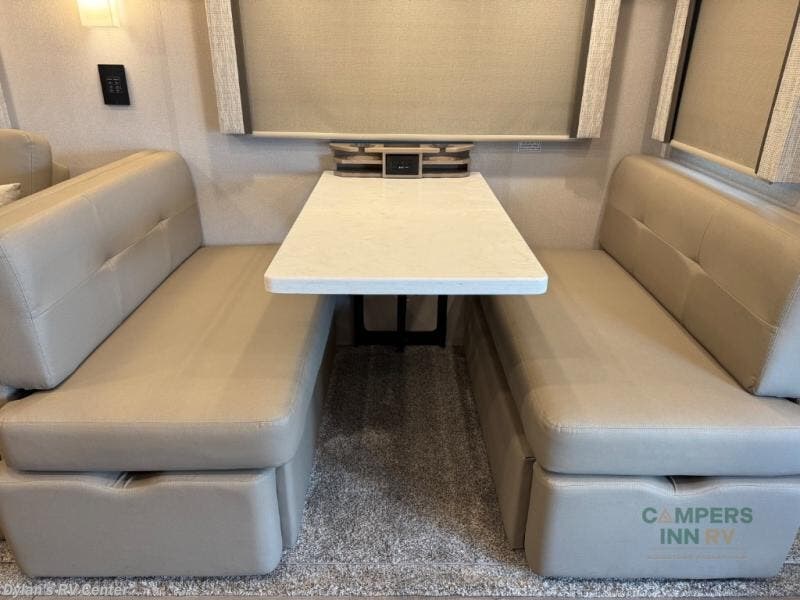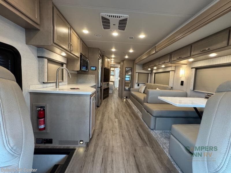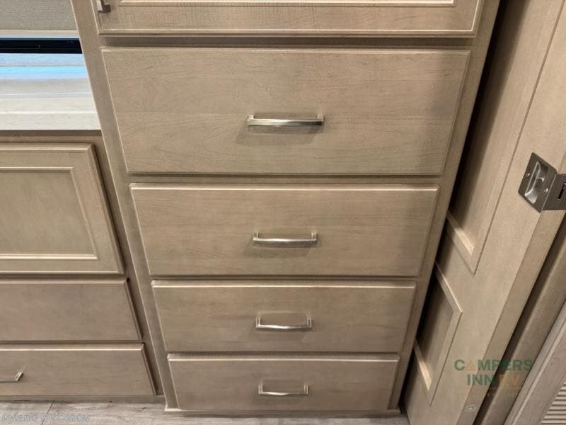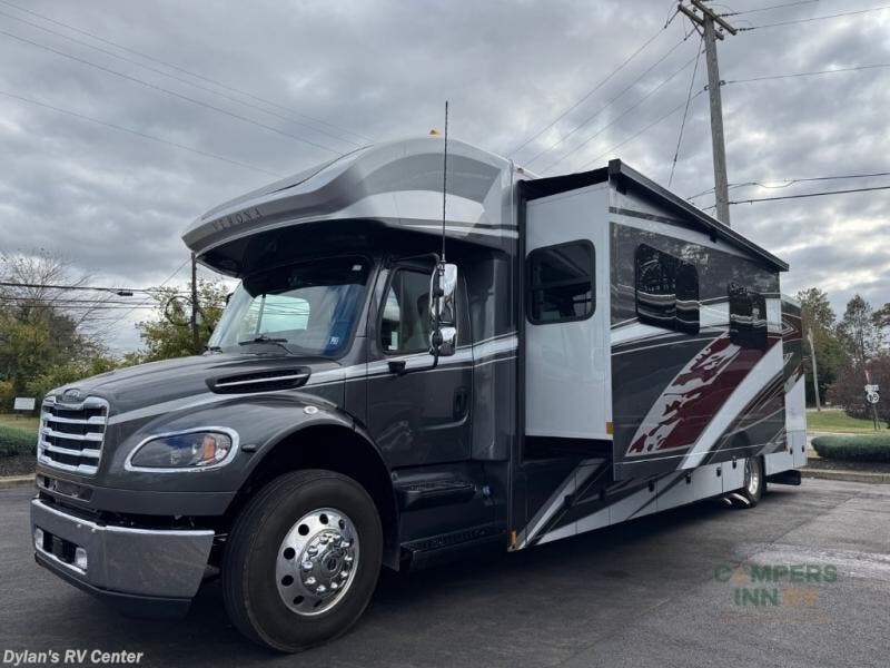 Renegade Verona Super C diesel motorhome 40VRB highlights: Bath and a Half RV King Bed Hide-A-Bed Sofa 43" 4K Smart LED TV Outside Entertainment Why not enjoy the ride just as much as the destination, well you can with this Verona! The Airliner rear air suspension, the power/heated remote control mirrors, the Freightliner "Safety Assurance package" features and the comfortable seats will make that happen each trip. You will also have all the comforts of home such as the kitchen amenities including a convection microwave oven and a French door residential refrigerator, plus the Ultra-Soft slide-a-bed sofa and booth dinette to relax on. The half bath is super convenient when you have two or more onboard, and the master suite offers a king bed slide with lots of storage and a 32" 4K Smart LED TV, plus a rear full bathroom. There is so much more to love about this coach, step right up! With any Renegade Verona Super C diesel motorhome, you will have confidence to explore the open road! The Cummins 360HP 3200TRV Allison transmission gives you the power and performance to travel anywhere, and the 3000-watt true sine inverter makes this an electric coach, plus the aluminum automotive cab construction is designed and tested for occupant protection. The interior boast about the solid hardwood cabinets including every cabinet stile and passage door are made from hardwood for true residential craftsmanship and the articulating cabinet hinges complete the package. More luxurious features include the polished solid surface countertops, the memory foam mattress, and the wavy patterned fiberglass shower with glass door. Choose extreme luxury, purpose and durability, take a Verona on the road today!