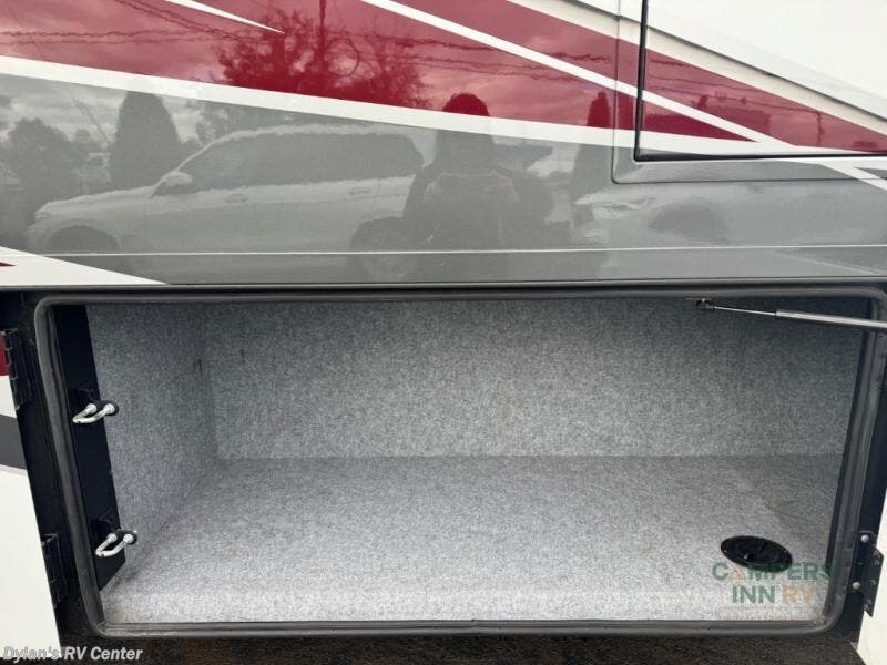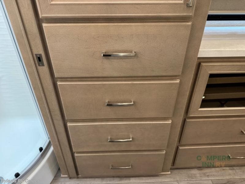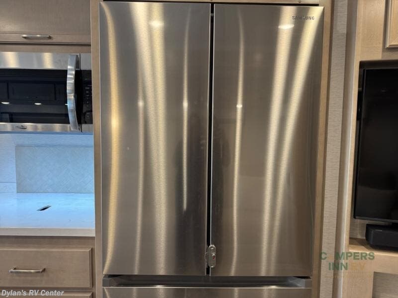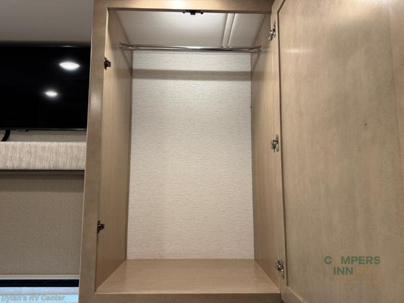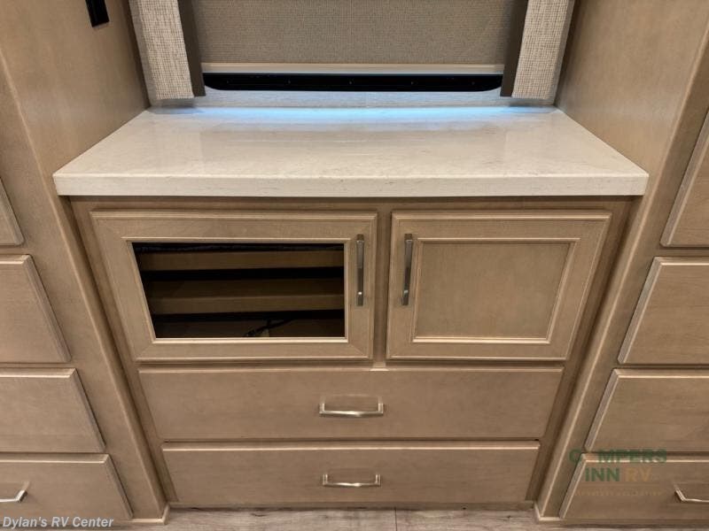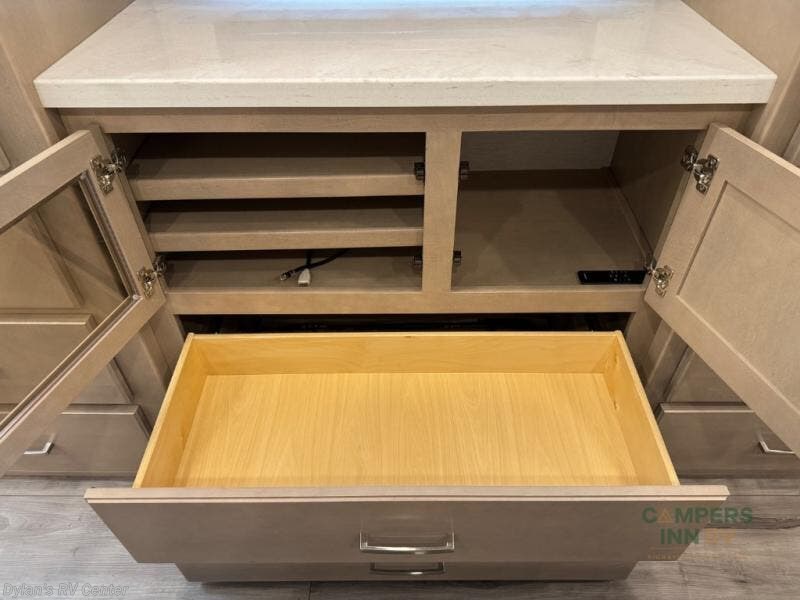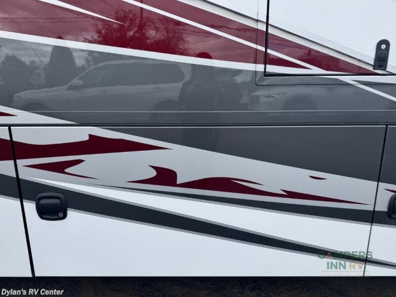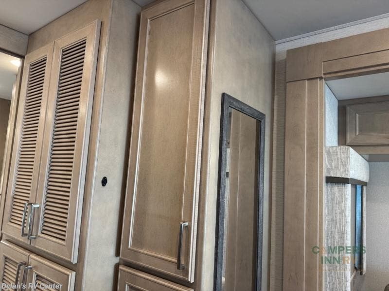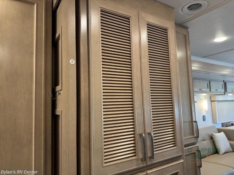 Renegade Verona Super C diesel motorhome 40VRB highlights: Bath and a Half RV King Bed Hide-A-Bed Sofa 43" 4K Smart LED TV Outside Entertainment Why not enjoy the ride just as much as the destination, well you can with this Verona! The Airliner rear air suspension, the power/heated remote control mirrors, the Freightliner "Safety Assurance package" features and the comfortable seats will make that happen each trip. You will also have all the comforts of home such as the kitchen amenities including a convection microwave oven and a French door residential refrigerator, plus the Ultra-Soft slide-a-bed sofa and booth dinette to relax on. The half bath is super convenient when you have two or more onboard, and the master suite offers a king bed slide with lots of storage and a 32" 4K Smart LED TV, plus a rear full bathroom. There is so much more to love about this coach, step right up! With any Renegade Verona Super C diesel motorhome, you will have confidence to explore the open road! The Cummins 360HP 3200TRV Allison transmission gives you the power and performance to travel anywhere, and the 3000-watt true sine inverter makes this an electric coach, plus the aluminum automotive cab construction is designed and tested for occupant protection. The interior boast about the solid hardwood cabinets including every cabinet stile and passage door are made from hardwood for true residential craftsmanship and the articulating cabinet hinges complete the package. More luxurious features include the polished solid surface countertops, the memory foam mattress, and the wavy patterned fiberglass shower with glass door. Choose extreme luxury, purpose and durability, take a Verona on the road today!