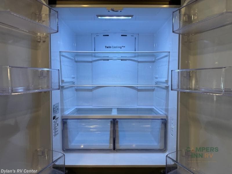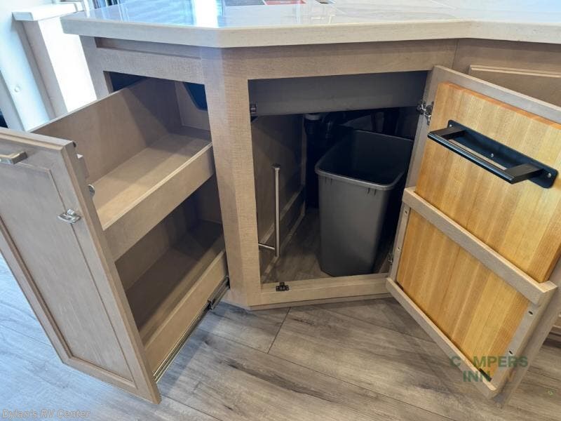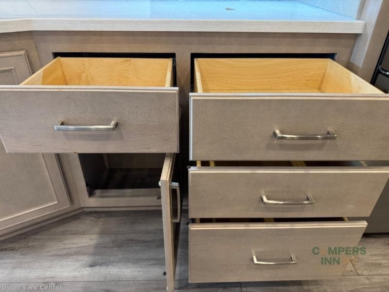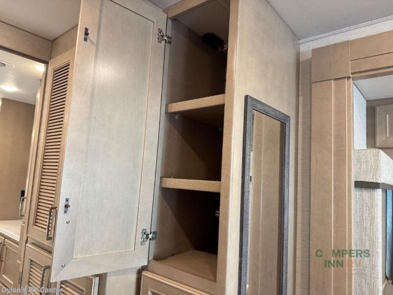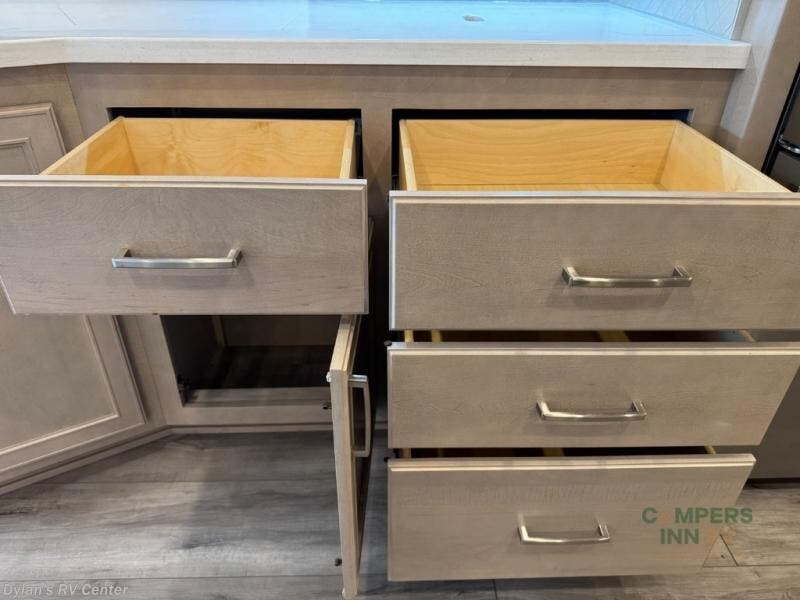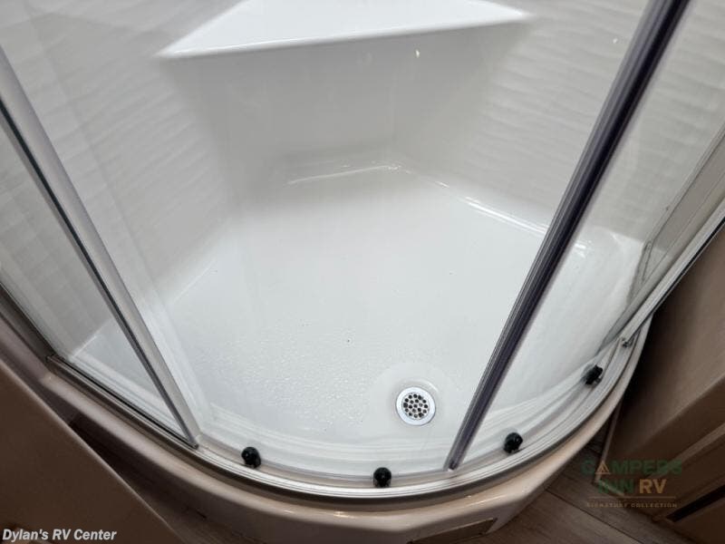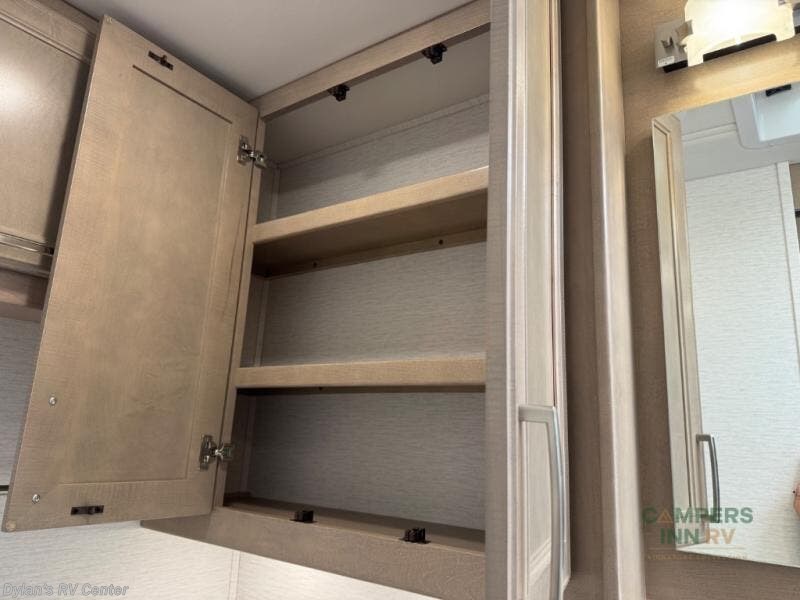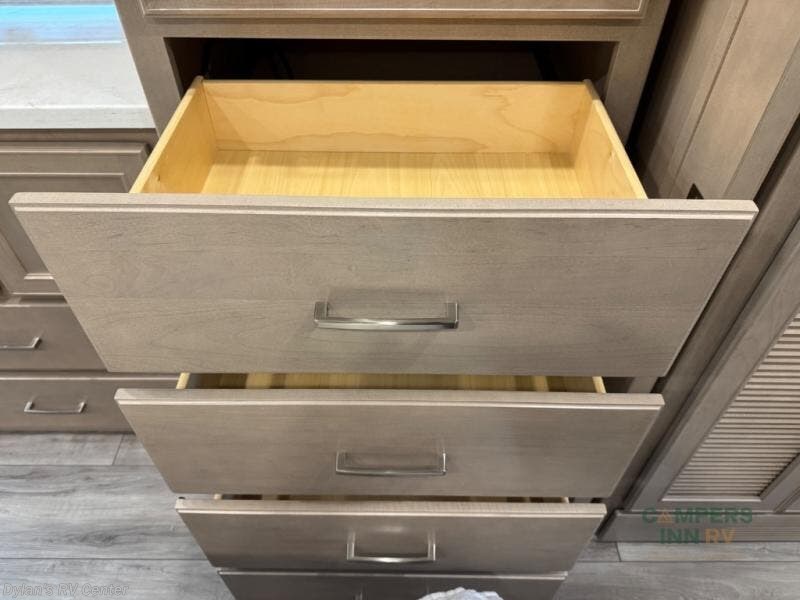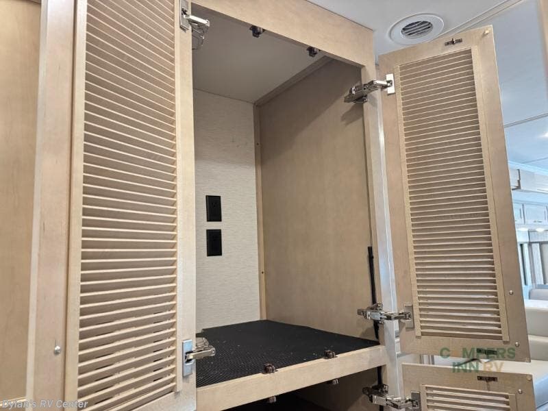 Renegade Verona Super C diesel motorhome 40VRB highlights: Bath and a Half RV King Bed Hide-A-Bed Sofa 43" 4K Smart LED TV Outside Entertainment Why not enjoy the ride just as much as the destination, well you can with this Verona! The Airliner rear air suspension, the power/heated remote control mirrors, the Freightliner "Safety Assurance package" features and the comfortable seats will make that happen each trip. You will also have all the comforts of home such as the kitchen amenities including a convection microwave oven and a French door residential refrigerator, plus the Ultra-Soft slide-a-bed sofa and booth dinette to relax on. The half bath is super convenient when you have two or more onboard, and the master suite offers a king bed slide with lots of storage and a 32" 4K Smart LED TV, plus a rear full bathroom. There is so much more to love about this coach, step right up! With any Renegade Verona Super C diesel motorhome, you will have confidence to explore the open road! The Cummins 360HP 3200TRV Allison transmission gives you the power and performance to travel anywhere, and the 3000-watt true sine inverter makes this an electric coach, plus the aluminum automotive cab construction is designed and tested for occupant protection. The interior boast about the solid hardwood cabinets including every cabinet stile and passage door are made from hardwood for true residential craftsmanship and the articulating cabinet hinges complete the package. More luxurious features include the polished solid surface countertops, the memory foam mattress, and the wavy patterned fiberglass shower with glass door. Choose extreme luxury, purpose and durability, take a Verona on the road today!