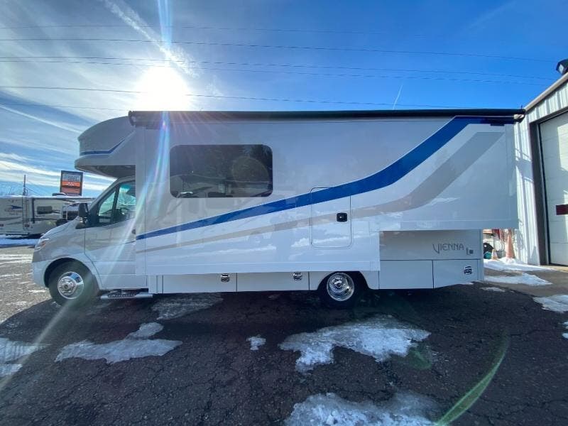 Explore this Used 2024 Renegade Vienna 25FWC — a luxury Class?C motorhome that blends comfort, style, and functionality for your next adventure. Featuring a thoughtfully designed floorplan with a spacious living area, well-equipped kitchen, comfortable sleeping spaces, and premium finishes throughout, the Vienna 25FWC delivers the freedom of the open road without sacrificing home-like comforts. Built on a reliable chassis and packed with storage and modern amenities, this used Renegade Vienna is ideal for weekend getaways or full-time travel.