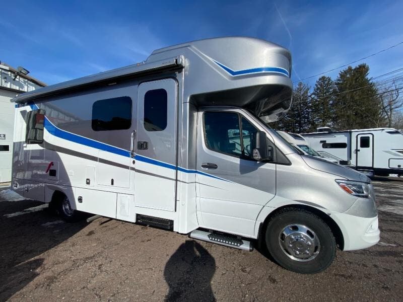 Luxury is in the details of each one of these Renegade Vienna Class C diesel motorhomes! They are built on a Mercedes-Benz Sprinter chassis, and include a four point hydraulic leveling system with app control, a 2000w true sine wave hybrid inverter, a 3.6KW LP generator with auto gen start, and Winegard Connect 2.0. You will appreciate the Truma™ Comfort Plus tankless water heater when showering, the accent lighting at the galley countertop for style, and the USB charging in the living area, bedroom and kitchen to keep your electronics ready. The Maple hardwood cabinetry completes the luxurious décor throughout the inside. Make your selection today!