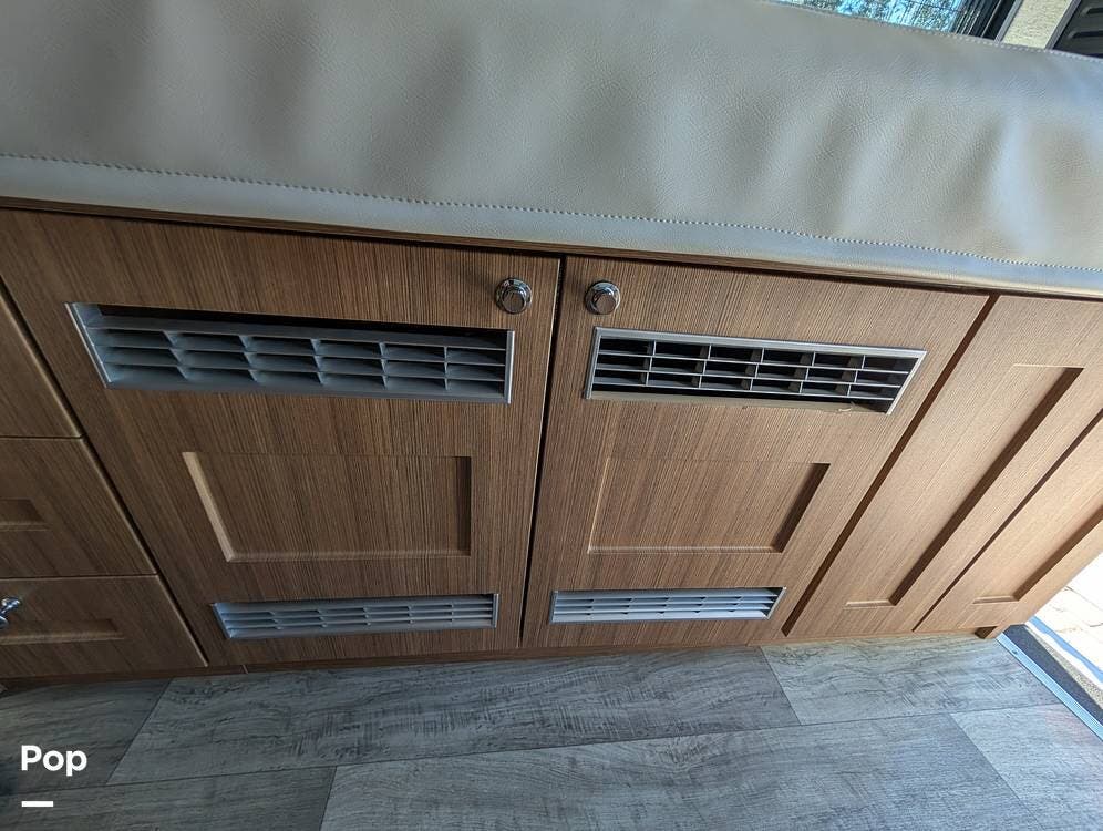 Inside, the modern interior showcases premium materials, LED accent lighting, and a versatile king/twin bed configuration that adapts easily to your travel style. Designed for extended and off-grid travel, this coach is equipped with a 3000W inverter, 600Ah lithium battery system, and 300 watts of solar. The air conditioner can run directly off the lithium batteries, minimizing the need for shore power, while the quiet under-hood generator provides reliable backup energy when needed.