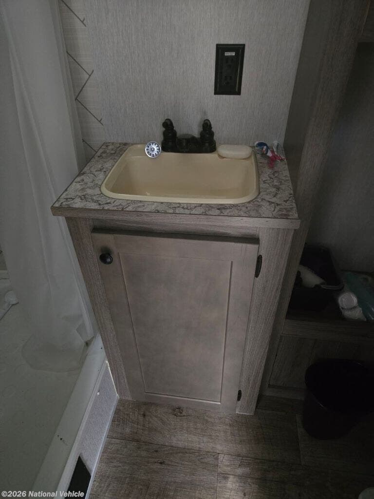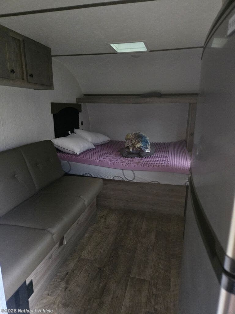 Step inside to find a bright and functional interior with clean finishes, LED lighting, and thoughtfully designed storage throughout. The efficient layout makes the most of every inch, providing a cozy sleeping area, dinette space for meals or relaxing, and large windows that bring in natural light and fresh air.