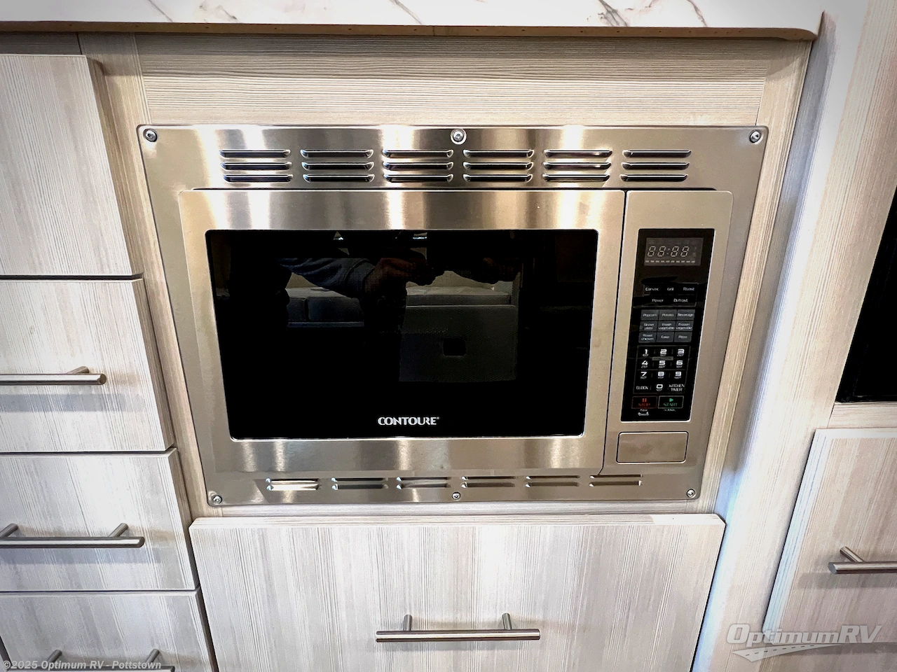 You can tour a local winery or trek up north to find a cozy and secluded camping spot with this Compass AWD Class B+ gas motorhome! All of your needs will be met with the excellent features and amenities included on this coach, like the full bathroom complete with a 24" x 32" shower, three robe hooks, a shower skylight, a foot-flush toilet, and a power bath vent. The kitchen is ready to help you make mobile meals, and the 68" Dream Dinette is the perfect place for eating those meals or playing a game later on. At the dinette table top, you'll find a wireless phone charger with USB plug so that you can charge your phones. There is a privacy curtain that sections off the flip-up RV queen bed, and you'll also find a 32" TV in the bedroom. The second 32" TV is located out in the main living area for everyone else to watch.