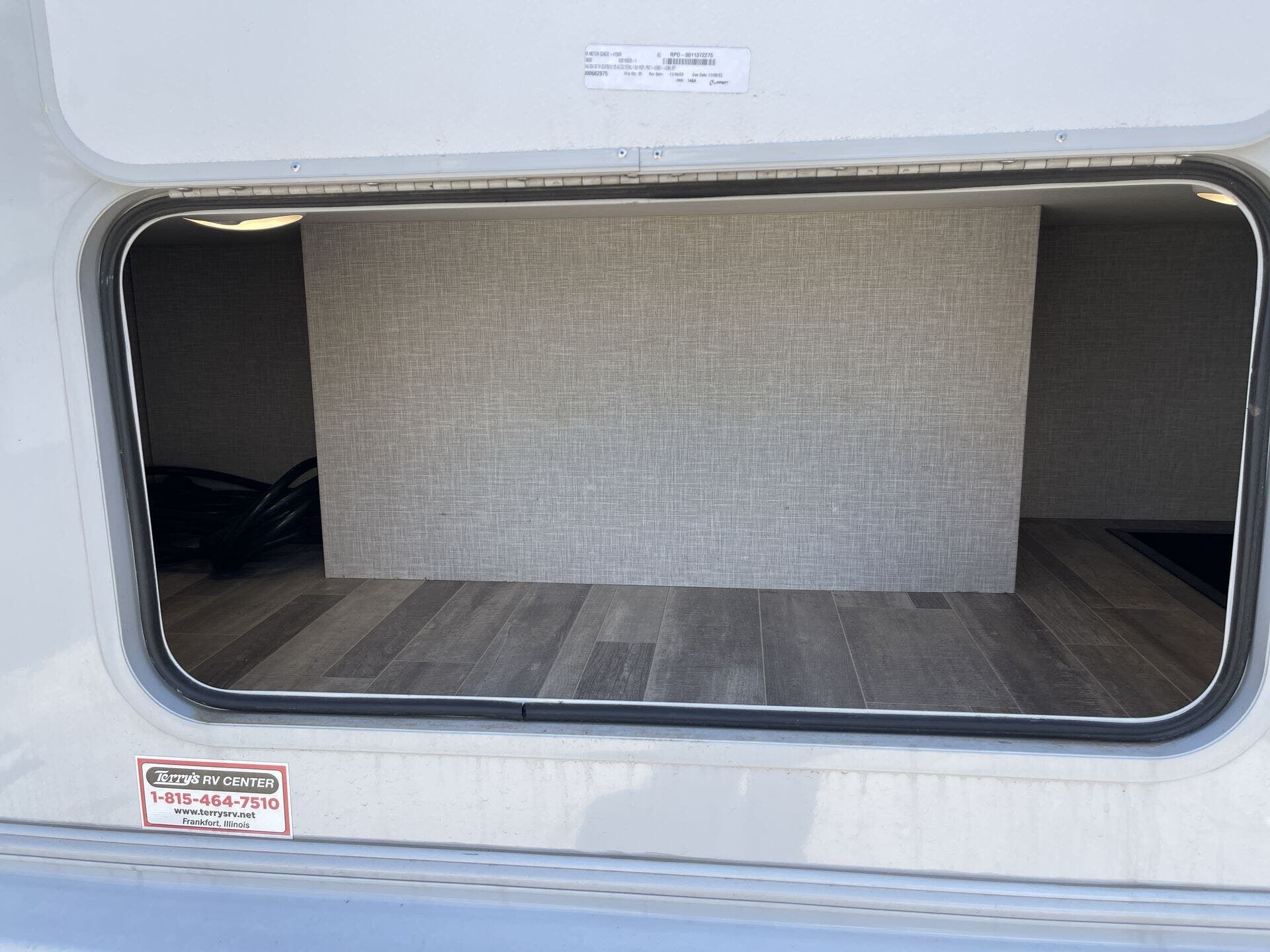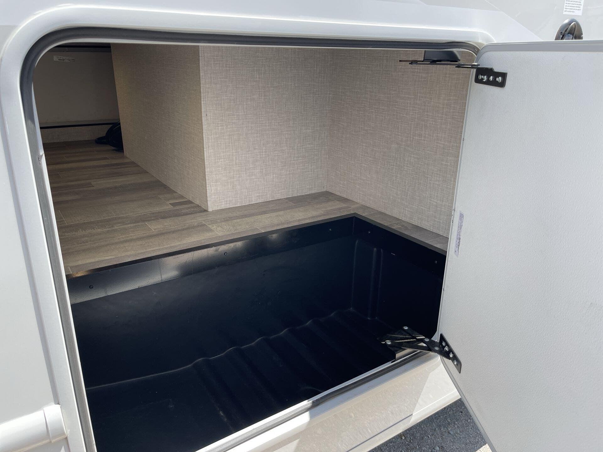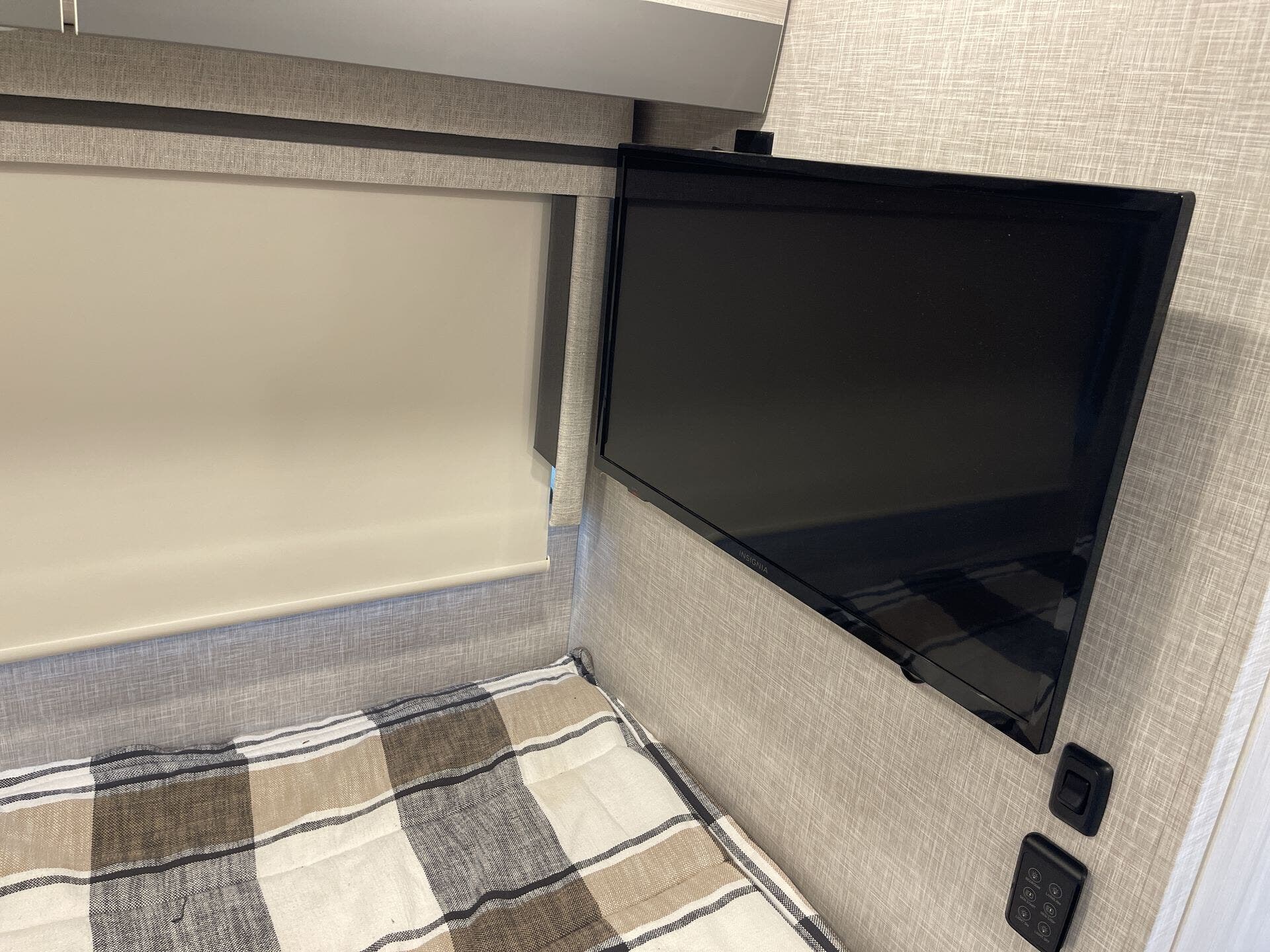 Well-equipped for modern travel, the 24KB includes conveniences like Onan 4 kW generator, tankless water heater, 15,000 BTU ducted AC, a 19,000 BTU furnace, and ample tank storage (31 gal fresh, 25–27 gal gray, 18–20 gal black). Entertainment options include dual 32″ smart TVs, Wi-Fi/4G & TV antenna, USB charging ports, and multiplex control of systems via touchscreen or smartphone app.