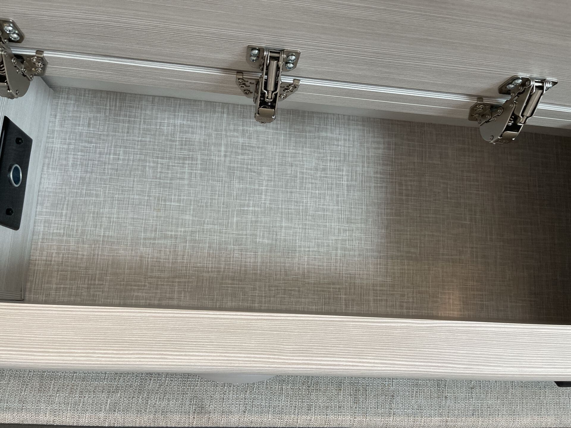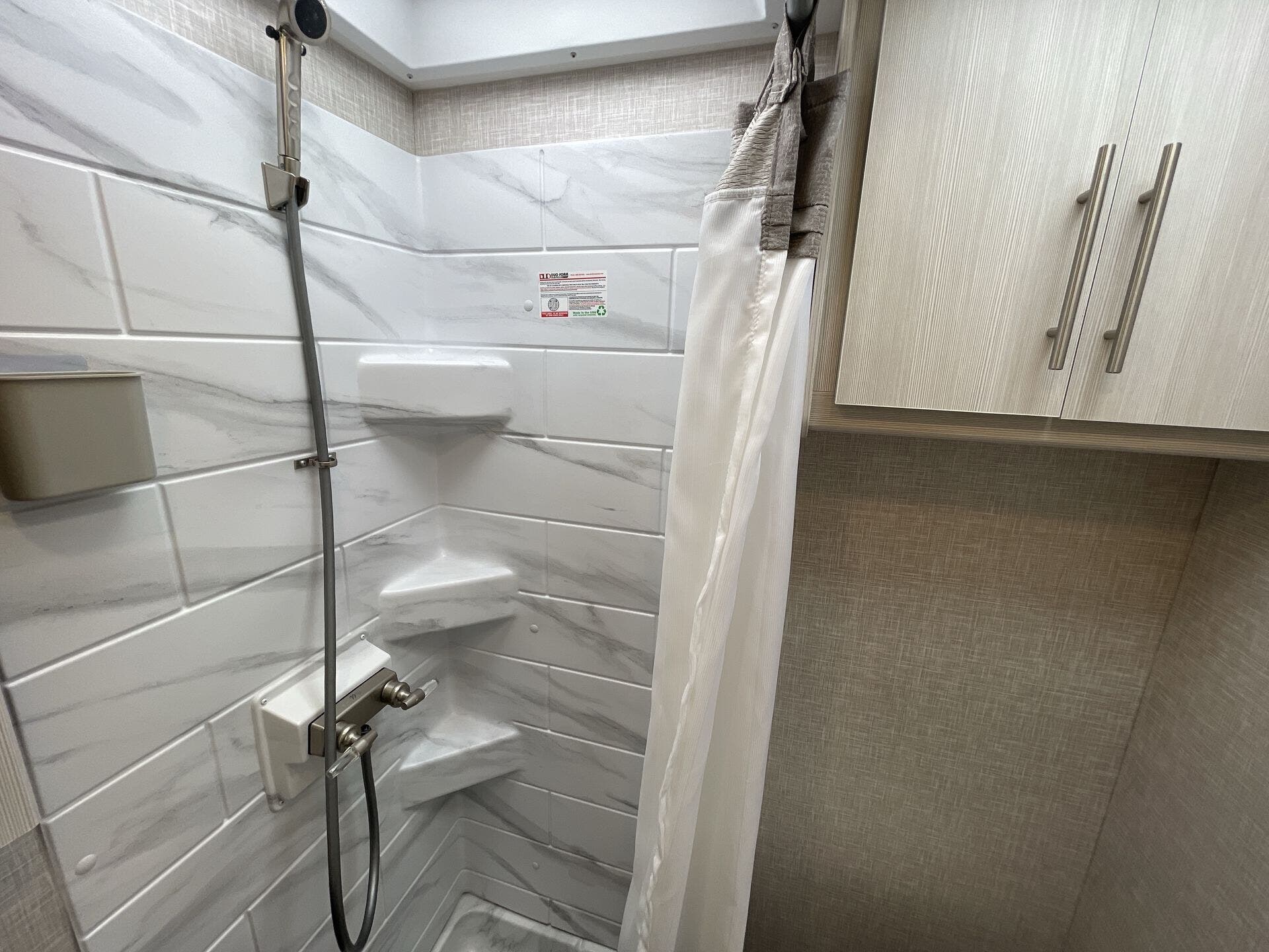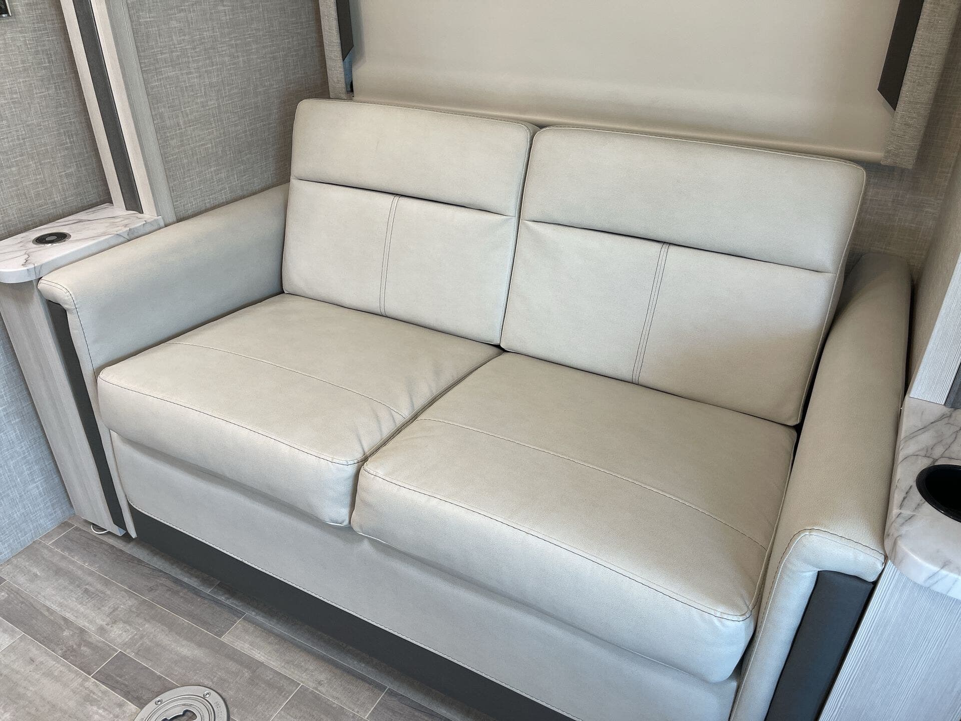 Well-equipped for modern travel, the 24KB includes conveniences like Onan 4 kW generator, tankless water heater, 15,000 BTU ducted AC, a 19,000 BTU furnace, and ample tank storage (31 gal fresh, 25–27 gal gray, 18–20 gal black). Entertainment options include dual 32″ smart TVs, Wi-Fi/4G & TV antenna, USB charging ports, and multiplex control of systems via touchscreen or smartphone app.