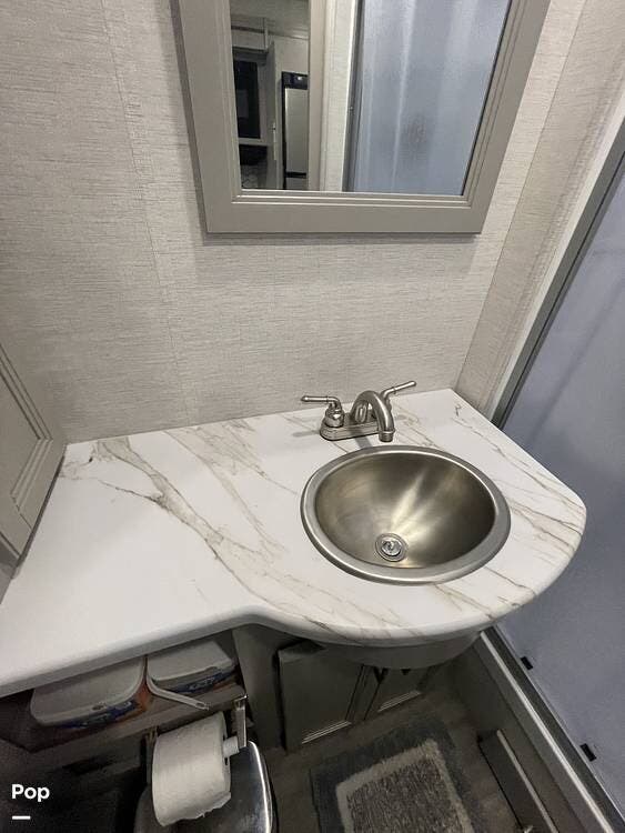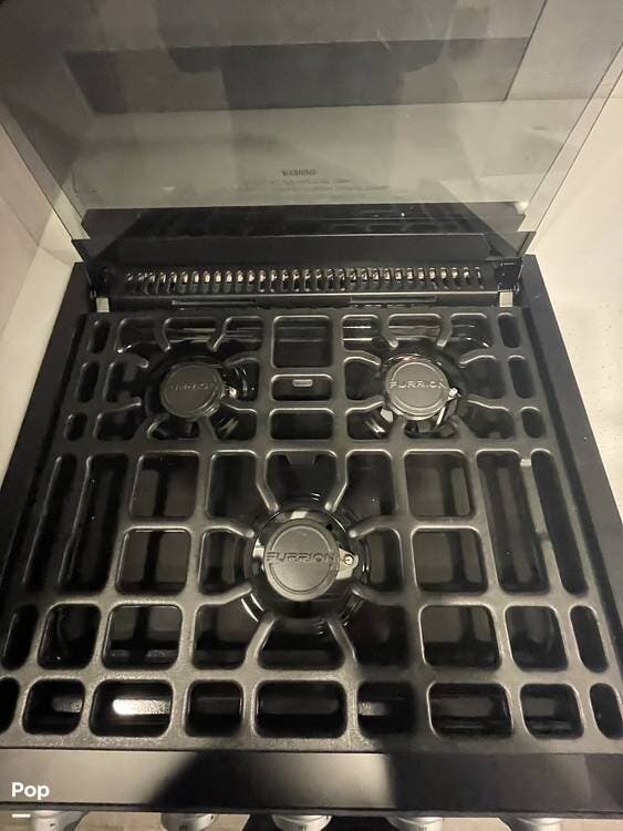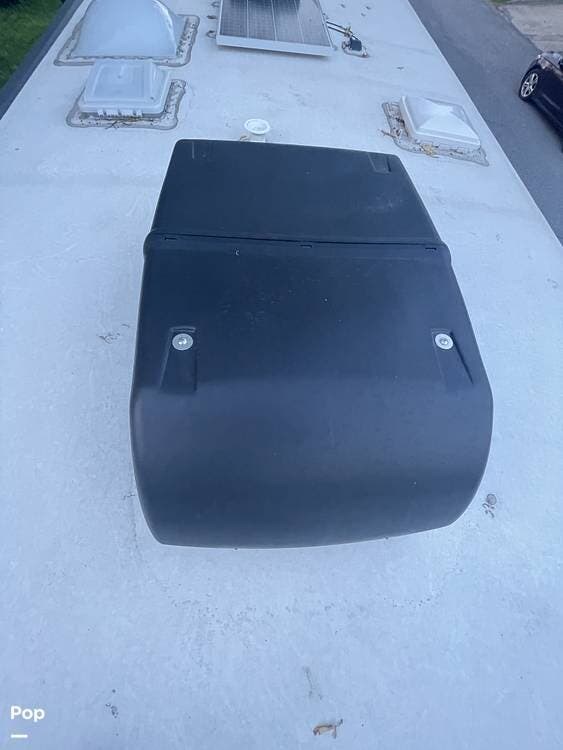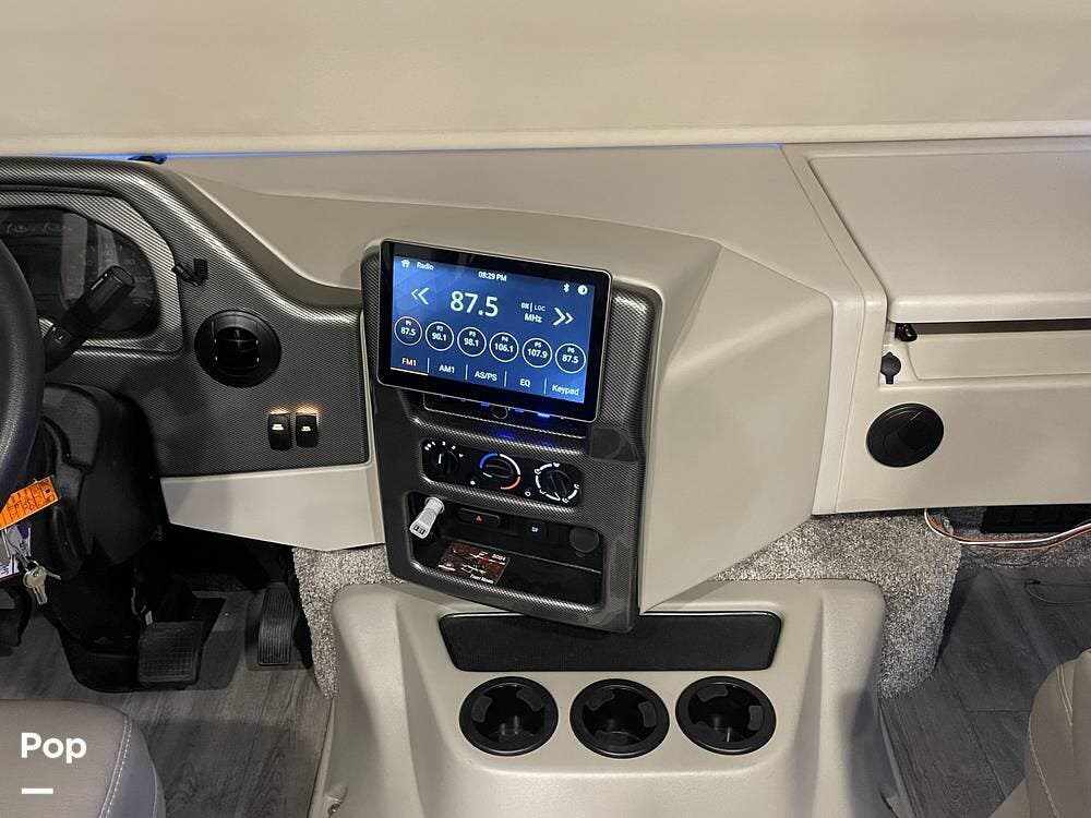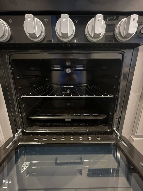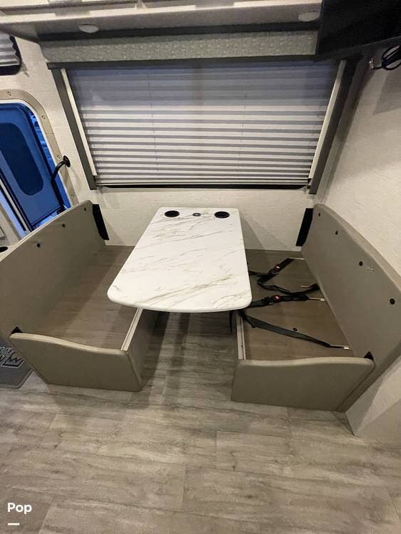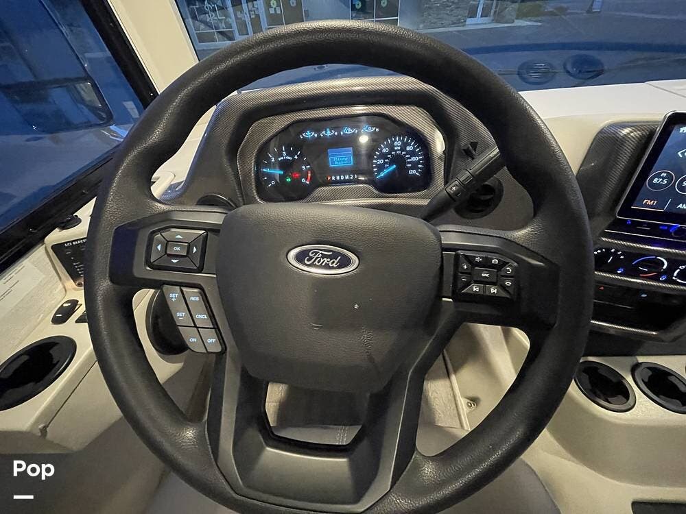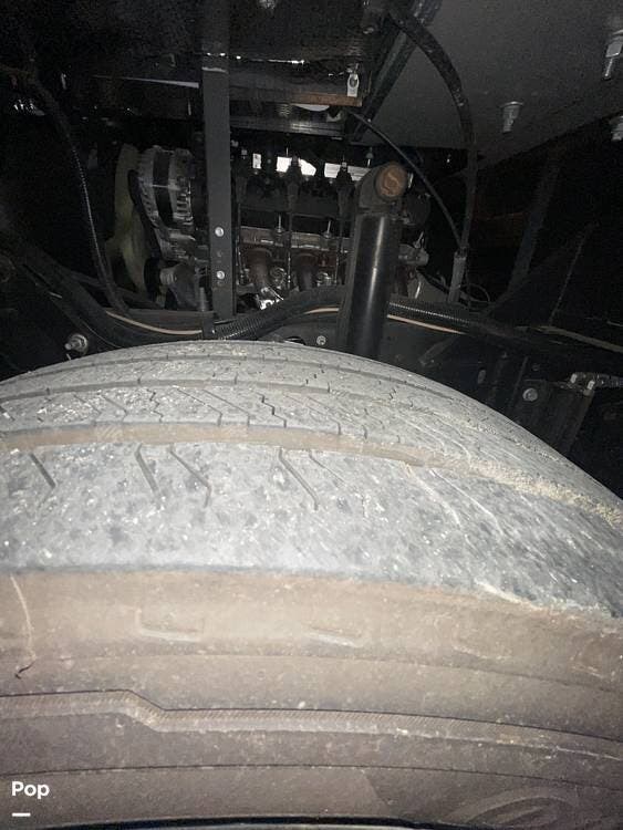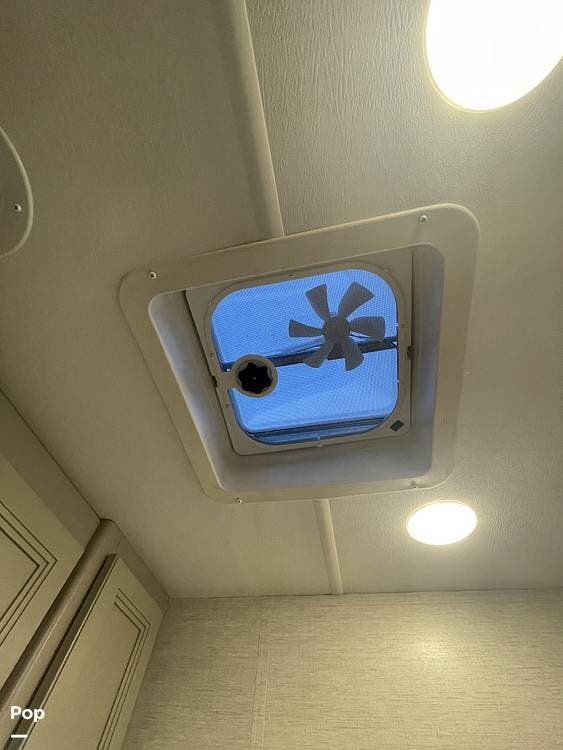 Walking in this almost new RV, to your left are the nicely appointed driver and passenger seats. All the main controls are facing the driver, and there is a small pull-out tray available for the passenger.