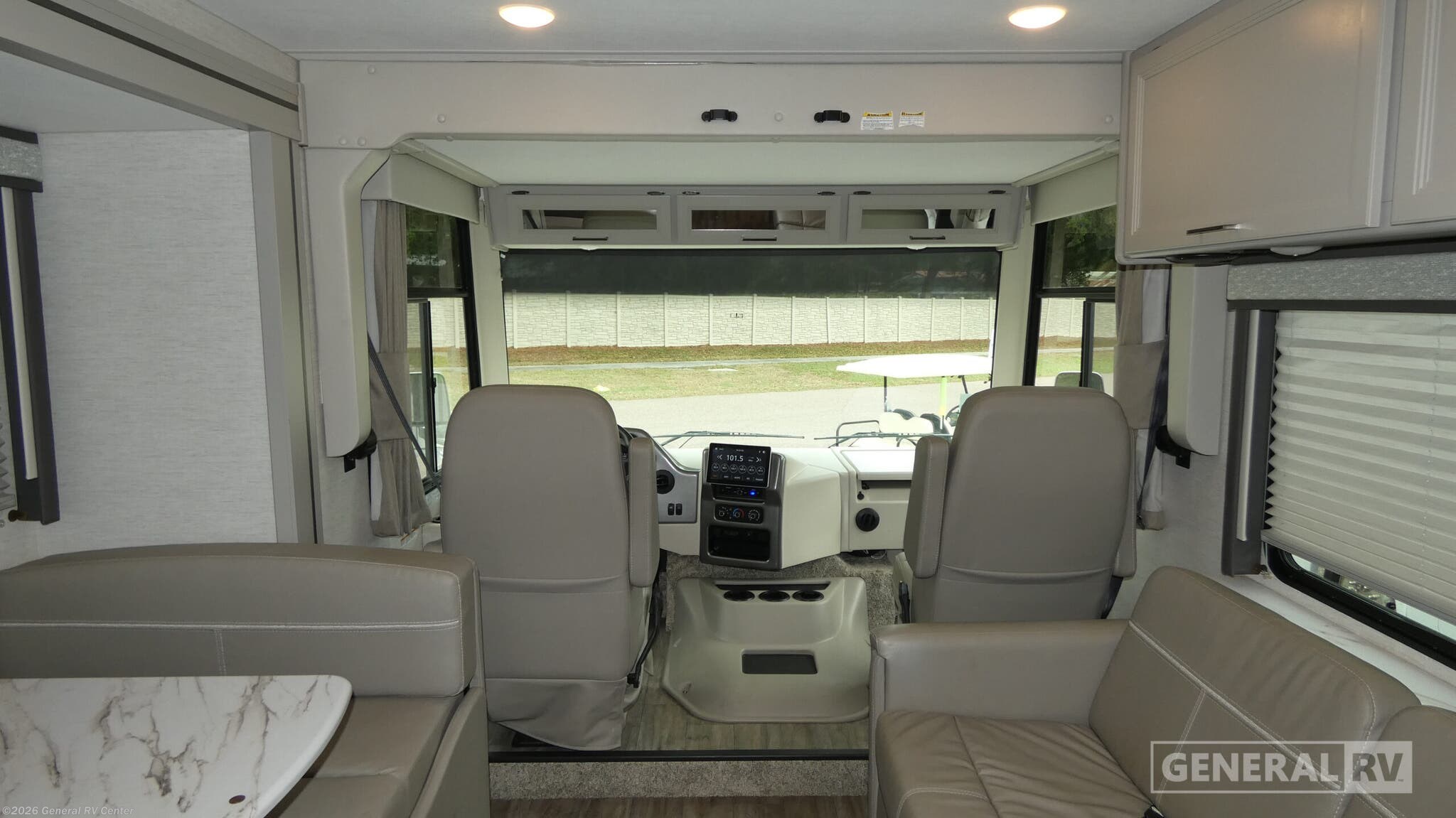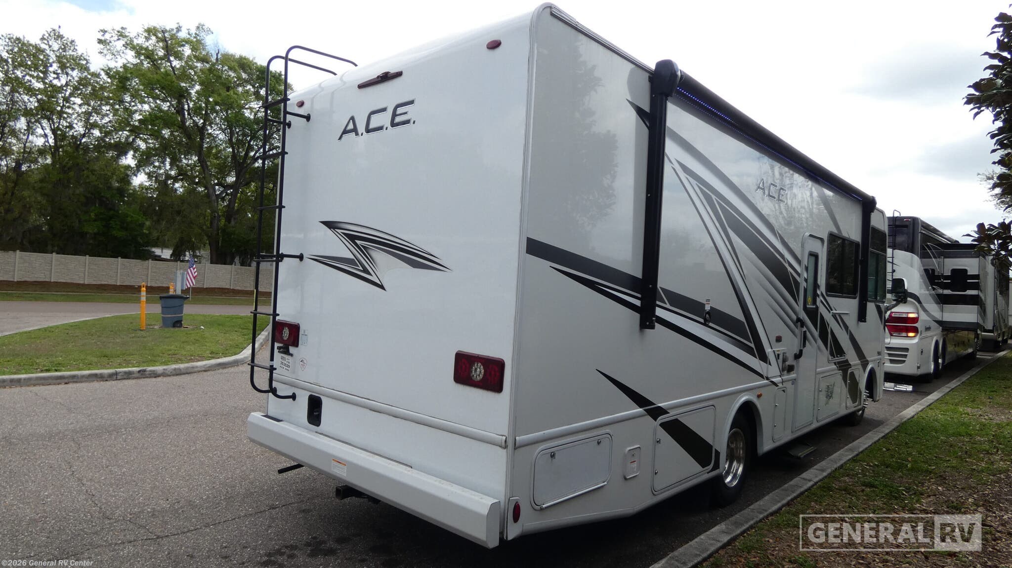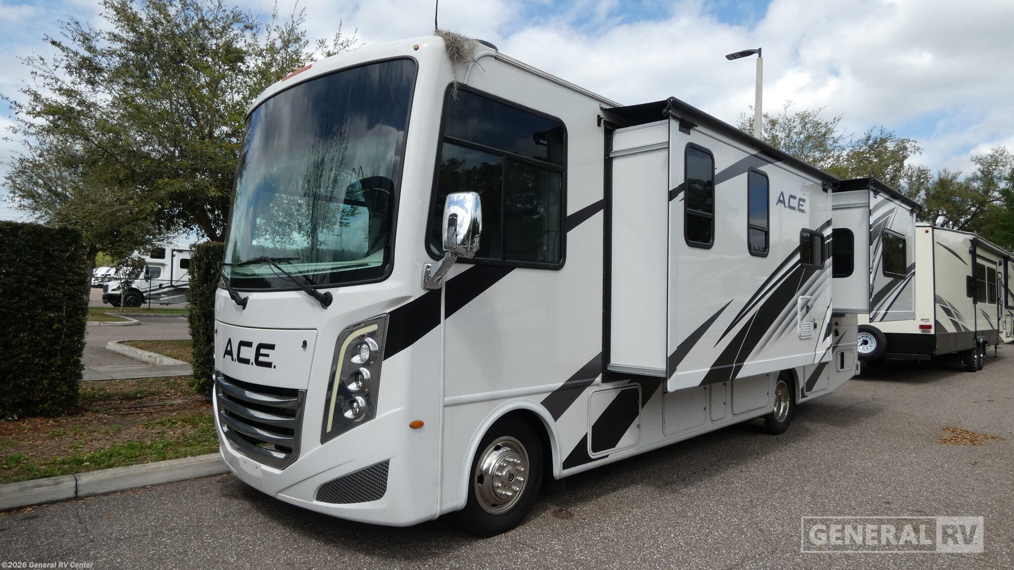 Step into the world of adventure with the 2024 Thor Motor Coach A.C.E. 29G. This motorhome is designed to be your home away from home, offering comfort and convenience for up to eight travelers. The spacious interior features a luxurious king-size bed in the rear bedroom, ensuring restful nights on the road. With additional convertible sleeping spaces, including a jack-knife sofa and a dream dinette, everyone will find their perfect spot to relax. The A.C.E. 29G's floorplan is thoughtfully designed to maximize space and functionality. The center kitchen is equipped with a mid-size refrigerator and a three-burner cooktop, perfect for preparing meals on the go. The front living area is ideal for socializing, with a 39" TV for entertainment. Outside, the 19 ft. powered retractable awning creates a perfect shaded retreat, while the exterior 32" TV ensures you won't miss a moment of your favorite shows or games. Built on a robust Ford F53 chassis with a 335-horsepower engine, this motorhome is ready to take you wherever your heart desires. For more details, visit your nearest General RV dealership.