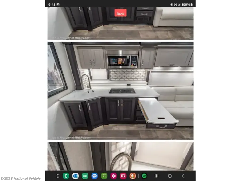 This home sleeps up to 10 people and has an on-board washer & drier, Cummins diesel generator, auto leveling and retraction system, 3 driving cameras (rear, left & right sides), 2 full baths, water filtration, adjustable water pressure gauge, large reservoirs for extended boondocking (fresh, grey & black), 200 amp roof-mountrd solar panels to keep house batteries charged, 50-amp 25' shore cable with 25' extension, tire pressure and temperature monitoring system, 4 televisions, residential full-size fridge & freezer with ice & water in door, satellite wifi-ready, 3 AC units & heat pump for house HVAC, AquaHot for hot water, very large "basement" passthrough storage, rear emergency exit, key fob for lock/unlock, swivel front driver and passenger seats to become additional living area recliners, ceramic tile floors and backsplashes throughout, 10,000 lb-rated hitch, porcelain toilets, removable induction cooktop (for indoor or exterior cooking), high powered air compressor (generator add-on), and much more...