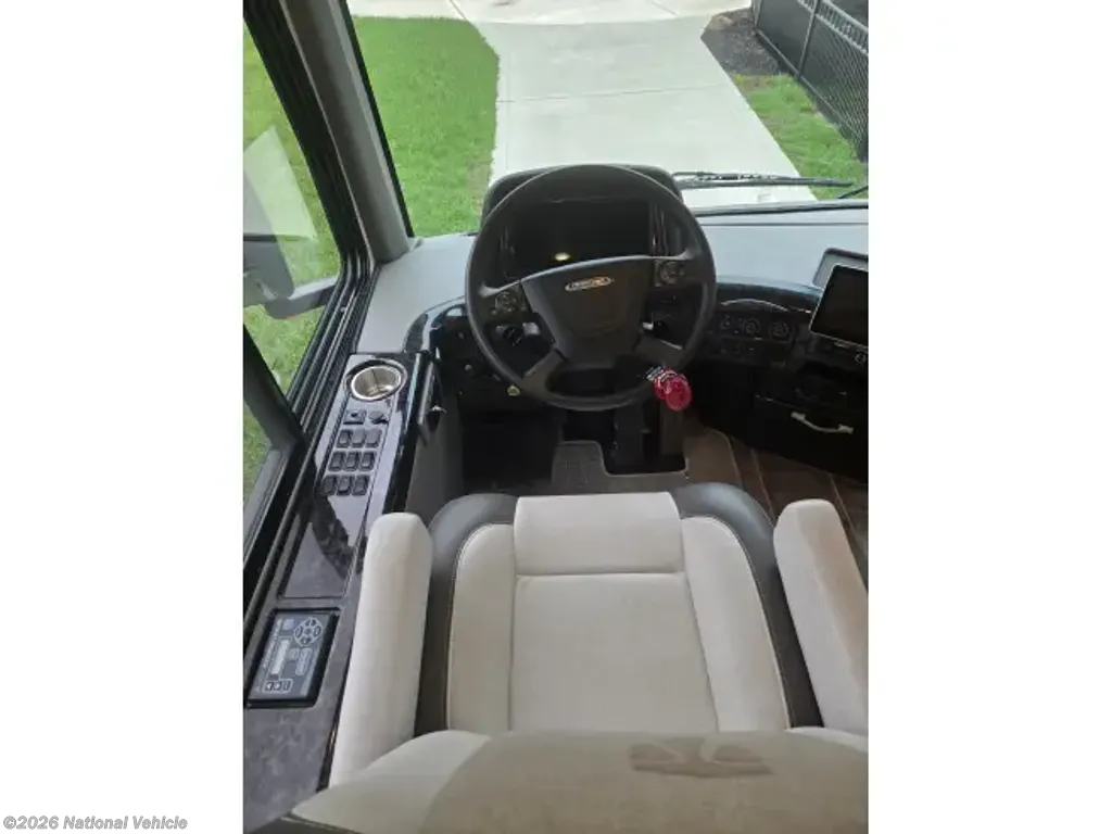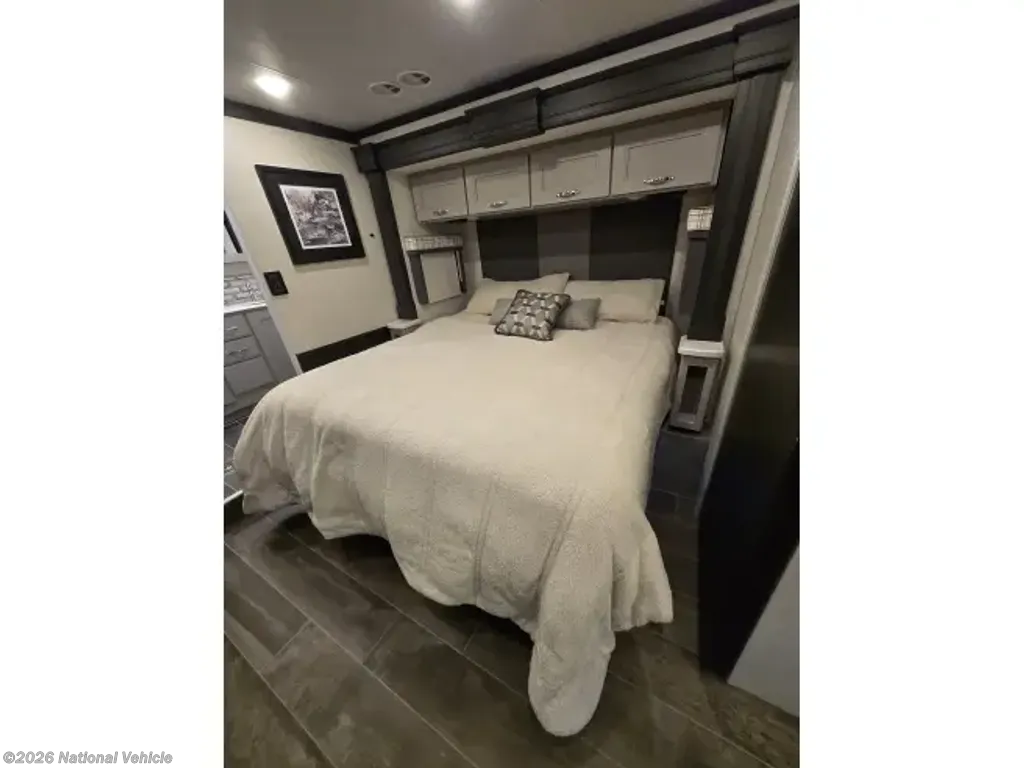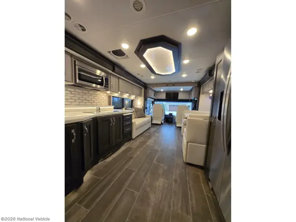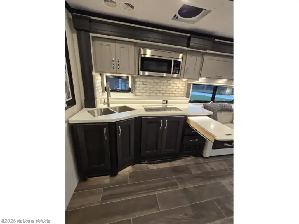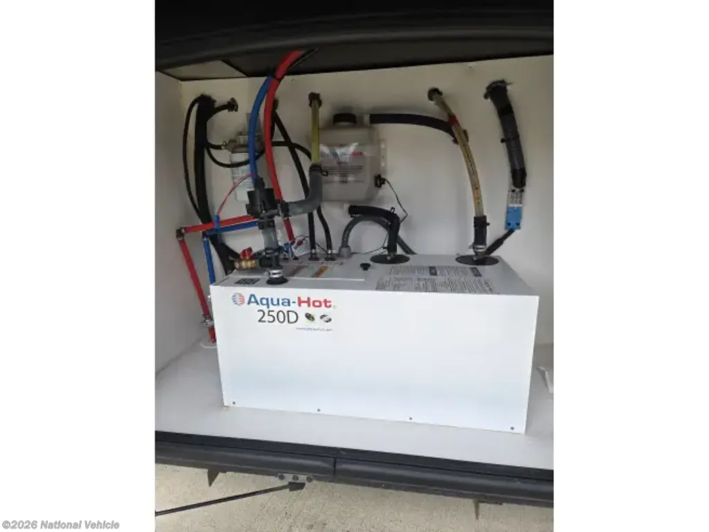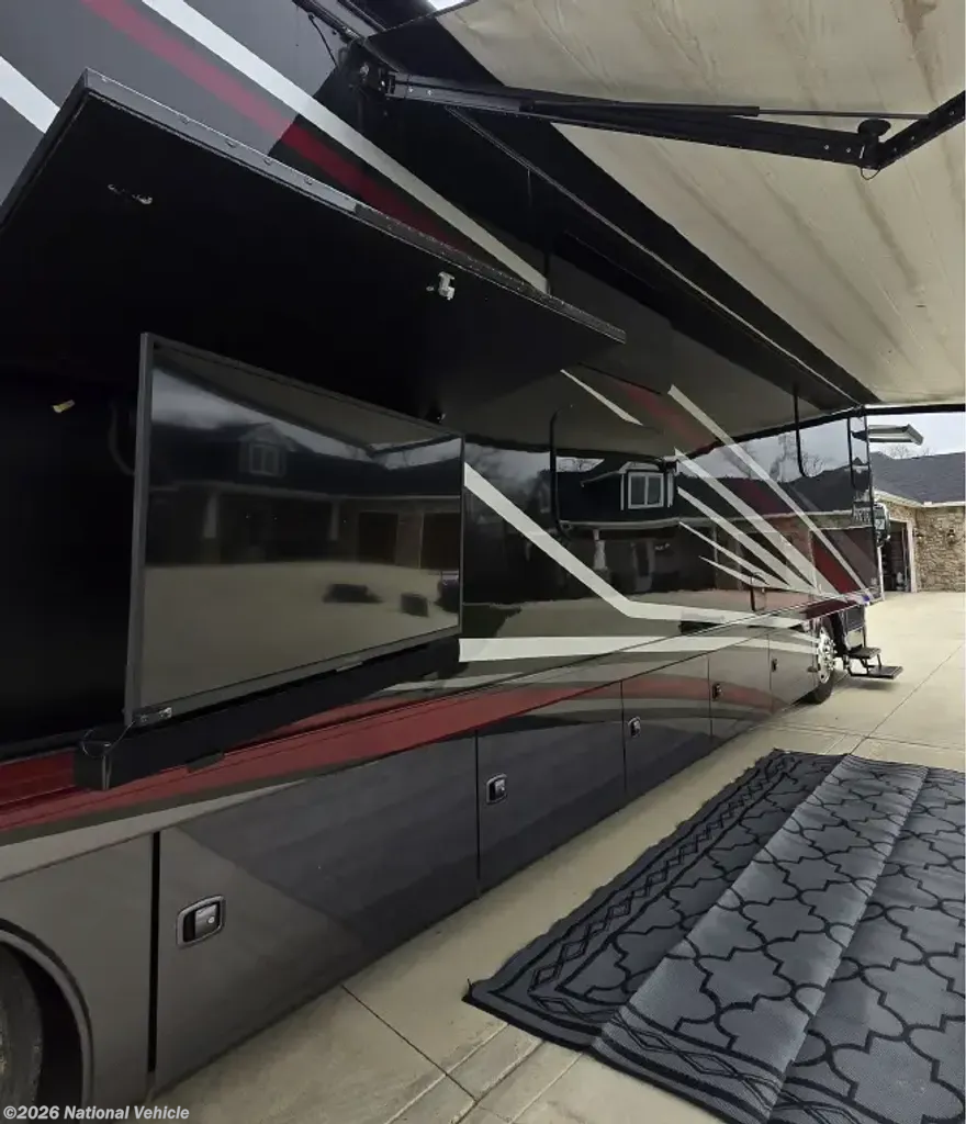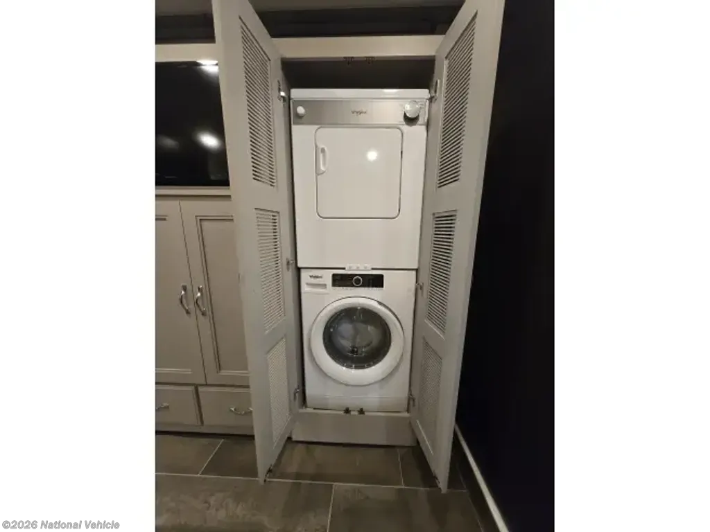 This home sleeps up to 10 people and has an on-board washer & drier, Cummins diesel generator (only 113 hours logged to date), auto leveling and retraction system, 3 driving cameras (rear, left & right sides), docking lights, 2 full baths, water filtration, adjustable water pressure gauge, large reservoirs for extended boondocking (fresh, grey & black), 200 amp roof-mountrd solar panel to keep house batteries charged, 50-amp 25' shore cable with 25' extension, tire pressure and temperature monitoring system, 4 televisions, residential full-size fridge & freezer, satellite wifi-ready, 3 AC units & heat pump for house HVAC, AquaHot for hot water, very large "basement" passthrough storage, rear emergency exit, key fob for lock/unlock, swivel front driver and passenger seats to become additional living area recliners, ceramic tile floors and backsplashes throughout, 10,000 lb-rated hitch, porcelain toilets, removable induction cooktop (for indoor or exterior cooking), high powered air compressor (generator add-on), and much more...