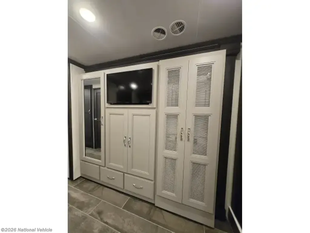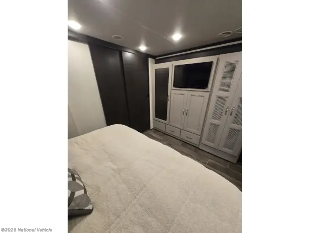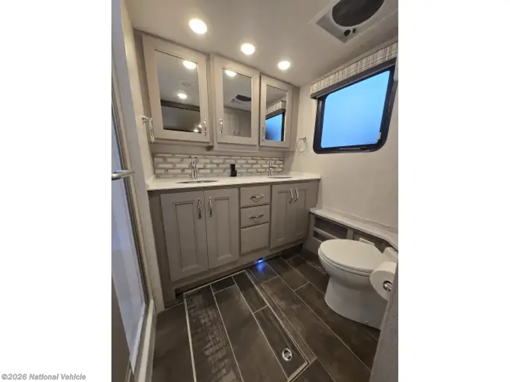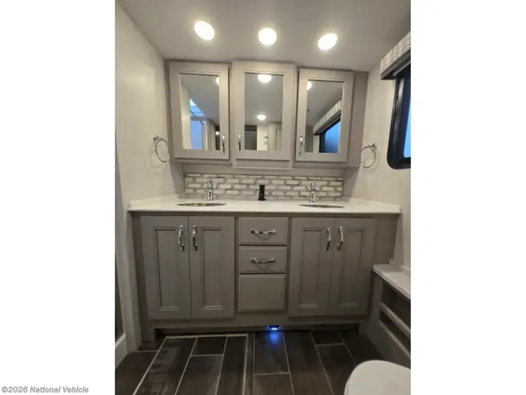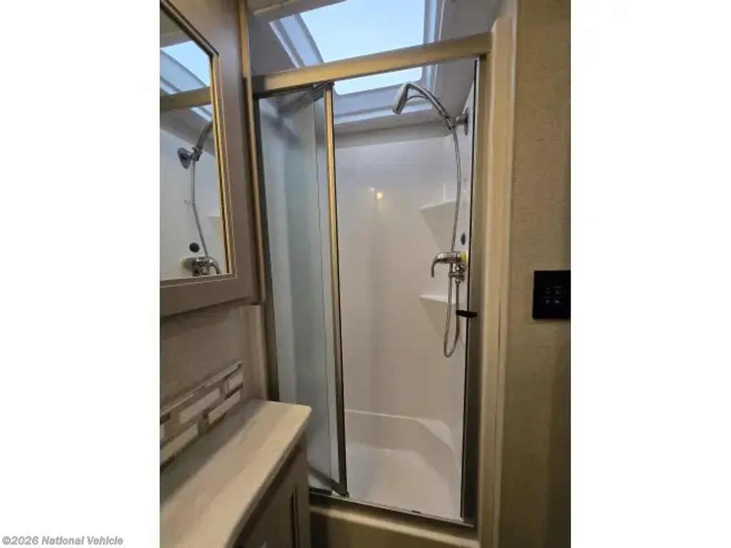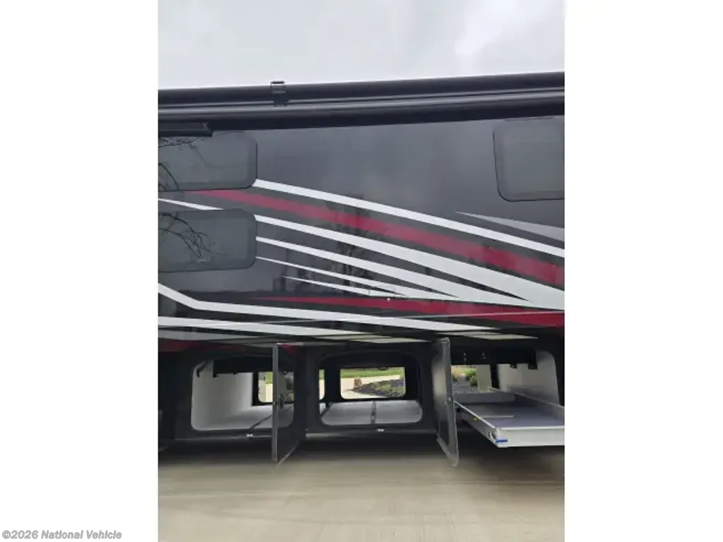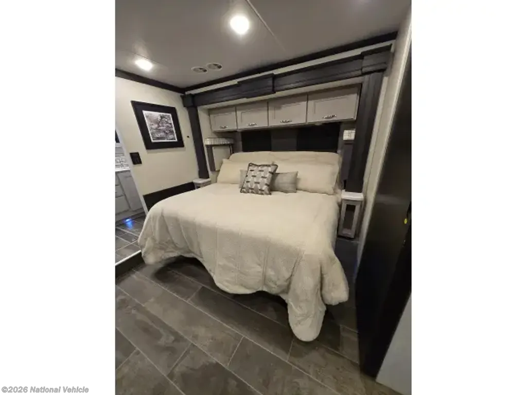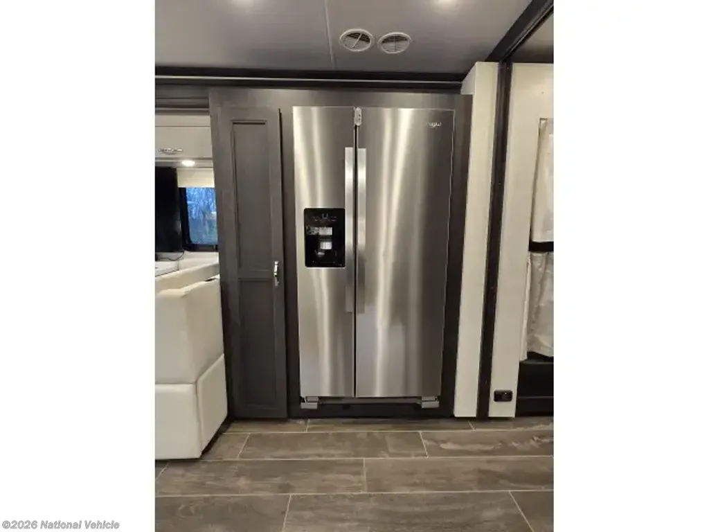 This home sleeps up to 10 people and has an on-board washer & drier, Cummins diesel generator (only 113 hours logged to date), auto leveling and retraction system, 3 driving cameras (rear, left & right sides), docking lights, 2 full baths, water filtration, adjustable water pressure gauge, large reservoirs for extended boondocking (fresh, grey & black), 200 amp roof-mountrd solar panel to keep house batteries charged, 50-amp 25' shore cable with 25' extension, tire pressure and temperature monitoring system, 4 televisions, residential full-size fridge & freezer, satellite wifi-ready, 3 AC units & heat pump for house HVAC, AquaHot for hot water, very large "basement" passthrough storage, rear emergency exit, key fob for lock/unlock, swivel front driver and passenger seats to become additional living area recliners, ceramic tile floors and backsplashes throughout, 10,000 lb-rated hitch, porcelain toilets, removable induction cooktop (for indoor or exterior cooking), high powered air compressor (generator add-on), and much more...