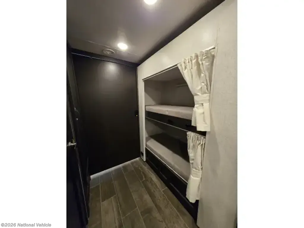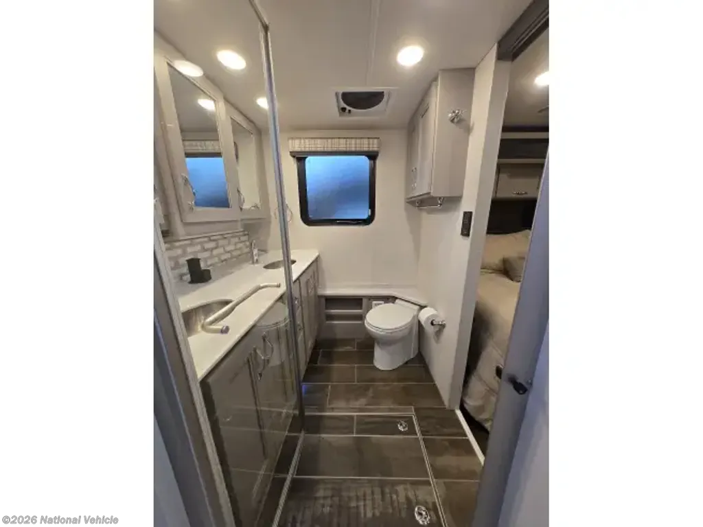 The master bedroom of the Aria 4000 is a true oasis, with a comfortable king-size bed, plenty of closet space, and a private en-suite bathroom with 2 sinks. The bathroom features a large shower, elegant fixtures, and premium finishes, creating a spa-like retreat that you'll never want to leave. In addition to the master bedroom, there are additional sleeping accommodations for guests, making this motorhome perfect for families or couples traveling together.