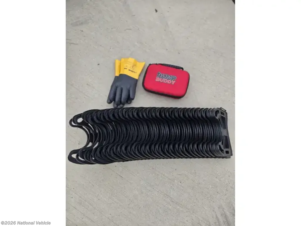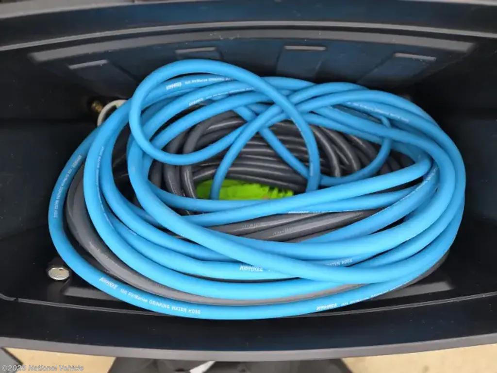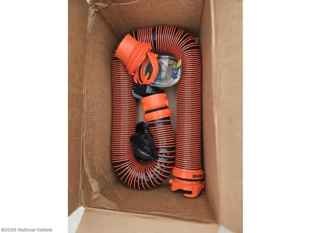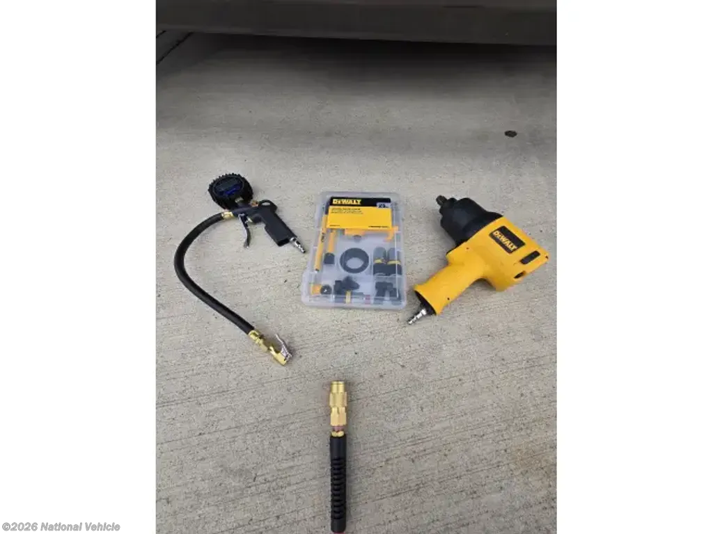 INCLUDED: Blackstone grill, SoloStove, air compressor lines & gear/attachments, fresh water hoses & attachments, 50 amp surge protector & 25' extension cable, new (unused) black/grey water hoses, kitchen silverware and cooking set with pots & pans, Keurig, air fryer, Dewalt tool set, safety equipment (wheel chocks, traffic cones, etc), exterior table and 4 chairs (2 rockers), all weather exterior ground carpet & more.