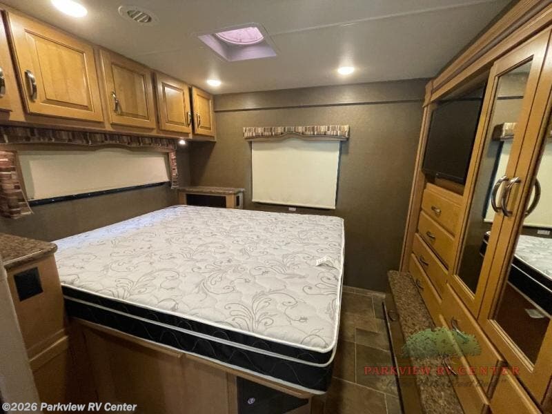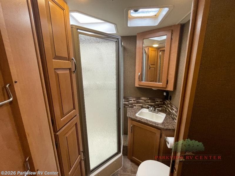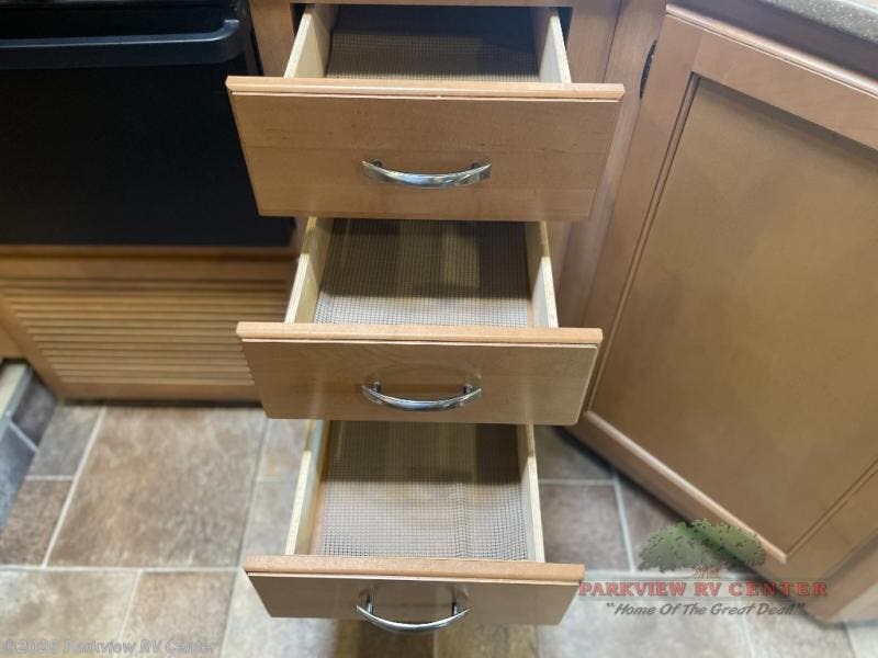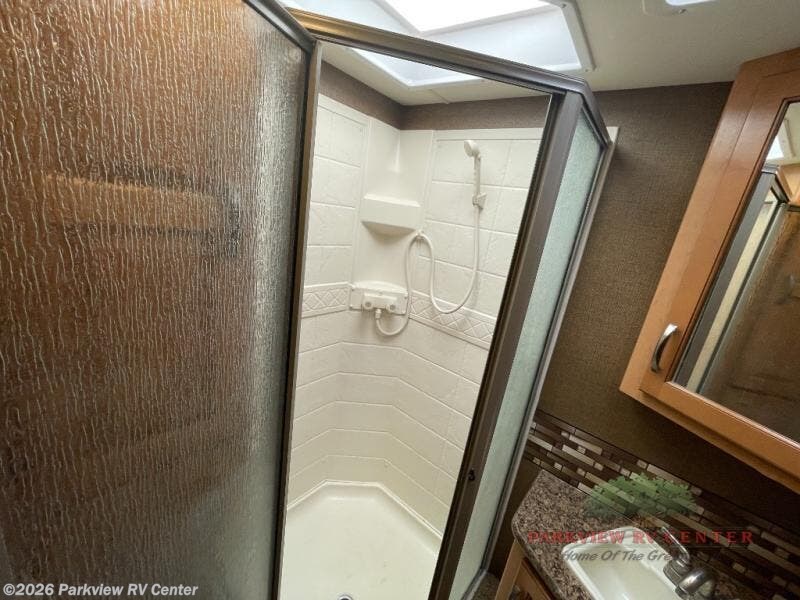 This motorhome is ready to hit the highway when ever you are! Enjoy at home comforts like a rear private bedroom with a 60" x 75" queen bed, a closet, a dresser, and TV prep. There is also a 39" TV above the 71" Dream Dinette for even more entertainment. Freshen up each morning in the full bathroom with the 32" x 32" radius shower with a skylight for added natural lighting then fill your bellies with some yummy bacon cooked on the three burner cooktop. Next to the kitchen pantry is a large closet for your storage needs. Relax in true comfort at night on the 68" jackknife sofa and use the 52" x 96" bunk over cab for another sleeping or storage space!