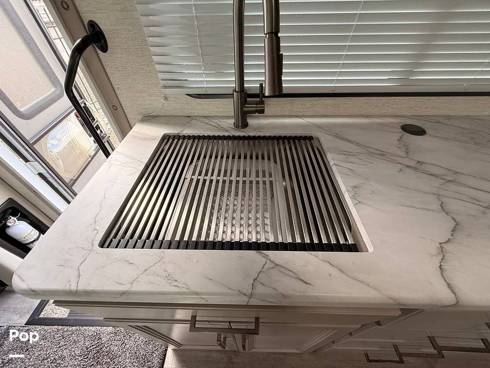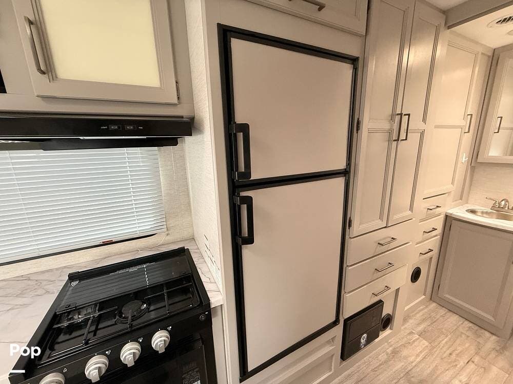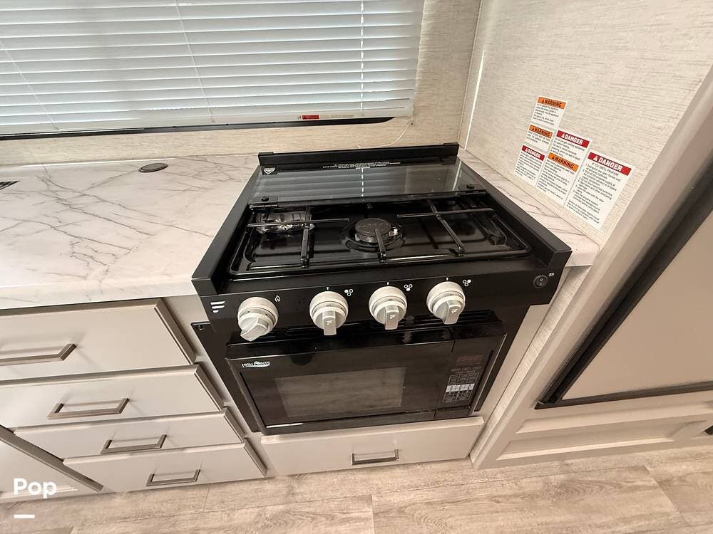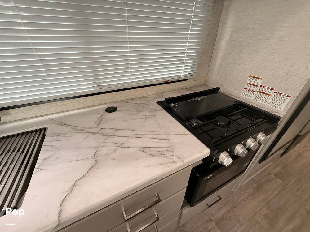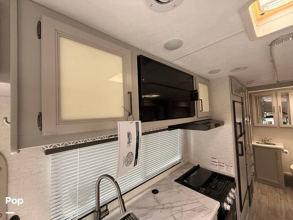Prepare meals with a 3-burner stove, convection microwave with air fryer, cooktop cover, and a refrigerator with a freezer. Stay entertained with a flat-screen TV, Bluetooth stereo, CD player, and a digital antenna.