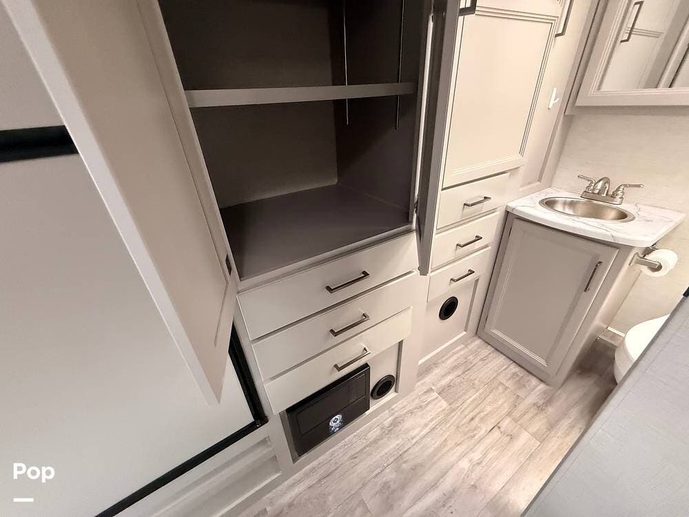 Additionally, exterior storage, an awning with LED lighting, a backup camera, and automatic entry steps make setup quick and easy.
