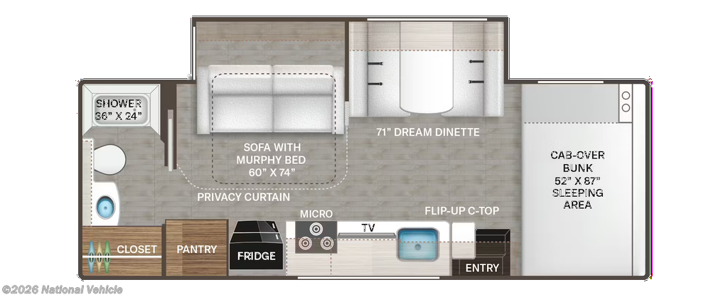 Inside, the Coleman 24CL shines with one of the most innovative floorplans in its class. The multi-functional living space features a clever Murphy bed system that easily transforms from a comfortable sofa during the day into a spacious sleeping area at night-maximizing usable space without sacrificing comfort. A Dream Dinette and cab-over bunk provide additional sleeping options, allowing this coach to comfortably accommodate up to four travelers.