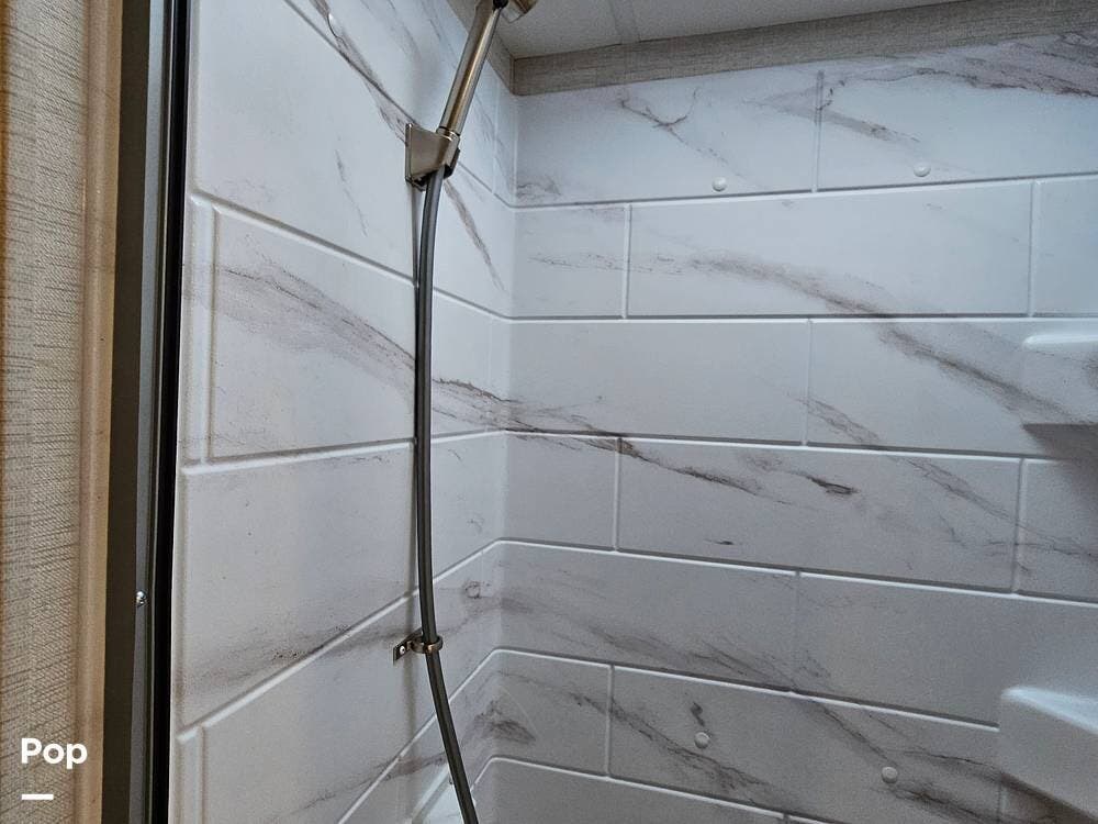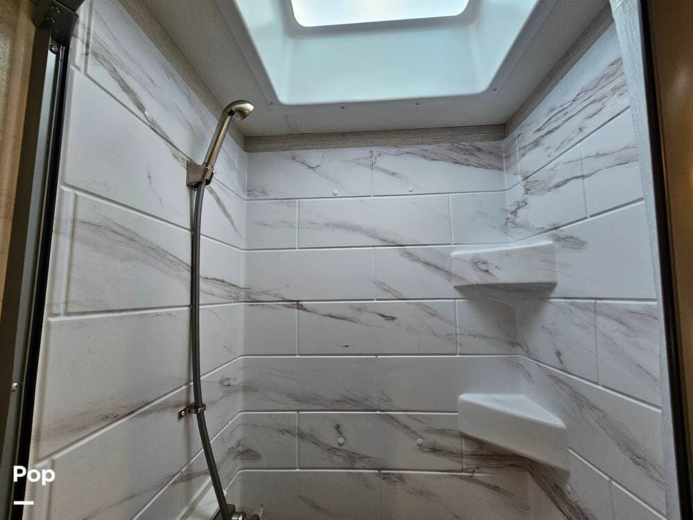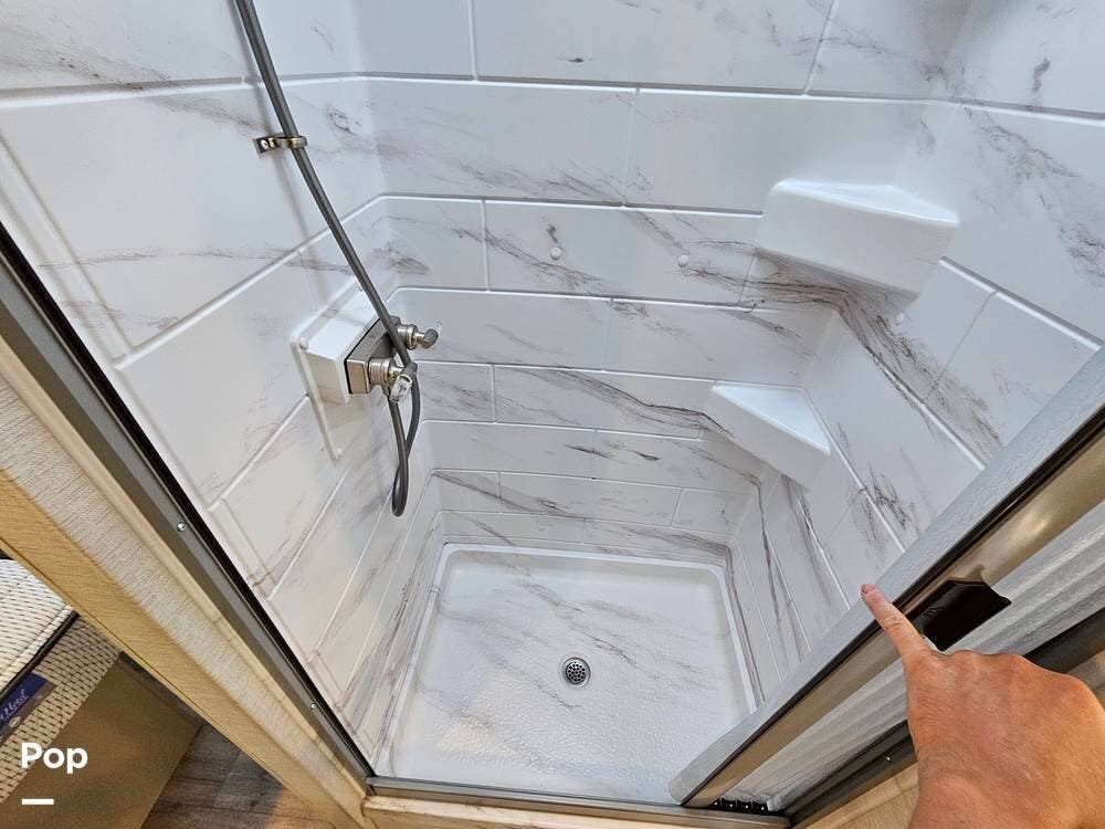 You'll also enjoy a full bathroom with a spacious shower, a 39" TV in the living area, and a 4.0kW generator for off-grid capability. Outside, the power awning with LED lights, backup camera, and ample exterior storage make campsite setup fast and easy.