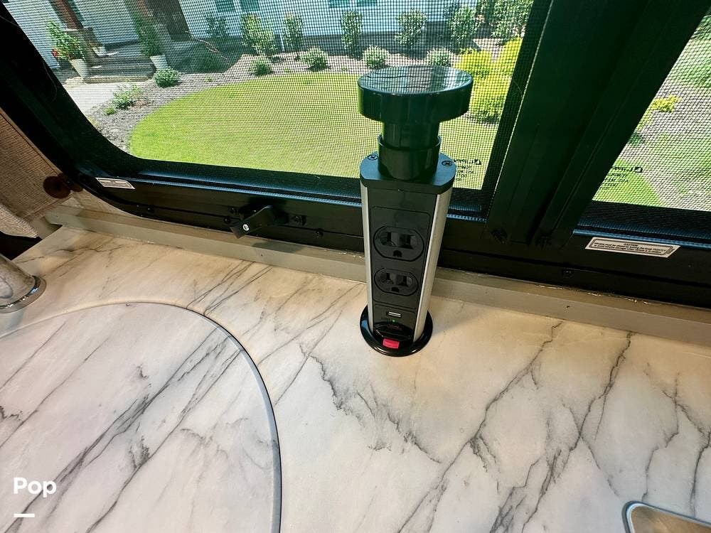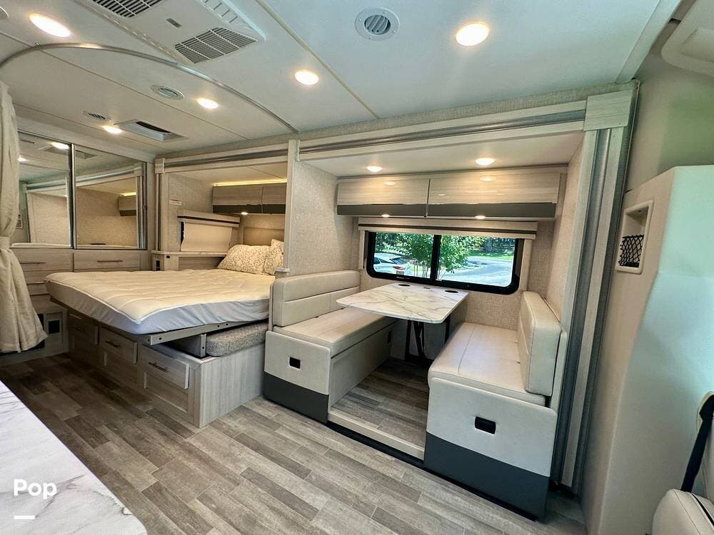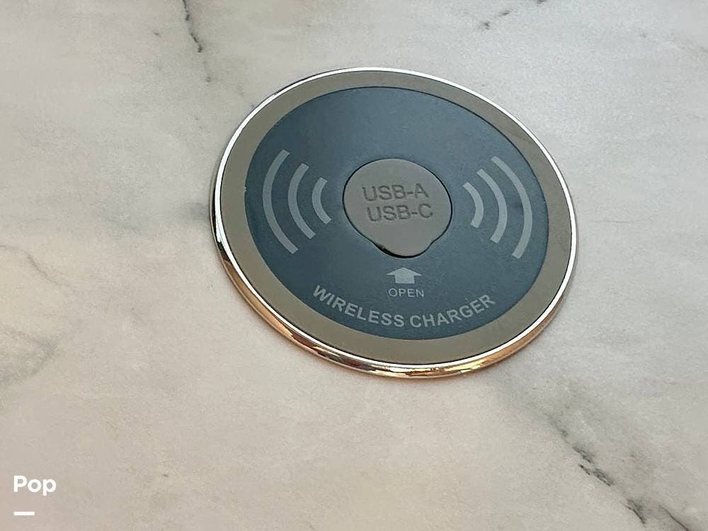 Check out the dream dinette that is cozy and comfortable, and easily converts to an extra bed. It also has a wireless charging station and a couple of cup holders.