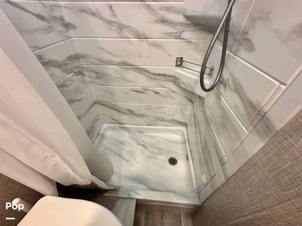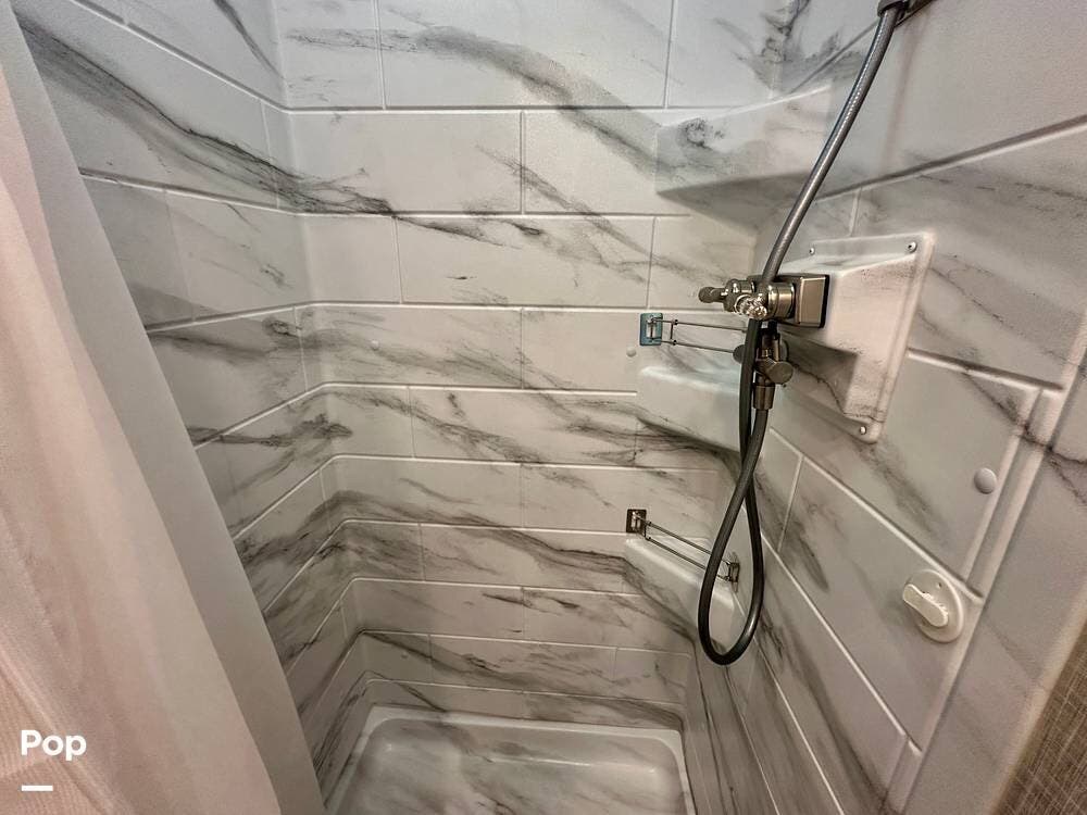 The walk-in shower is spacious, and with its On-Demand water heater, you will enjoy those showers. The toilet is raised higher than the standard.