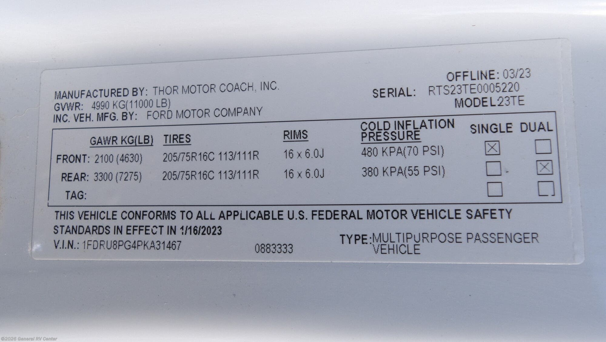 Request More Info on this 2024 Thor Motor Coach Compass AWD 23TE Offered for sale by General RV Center