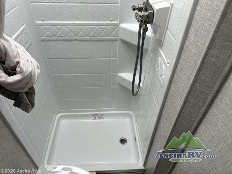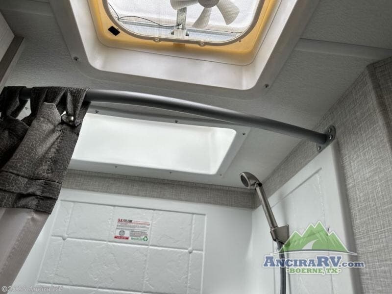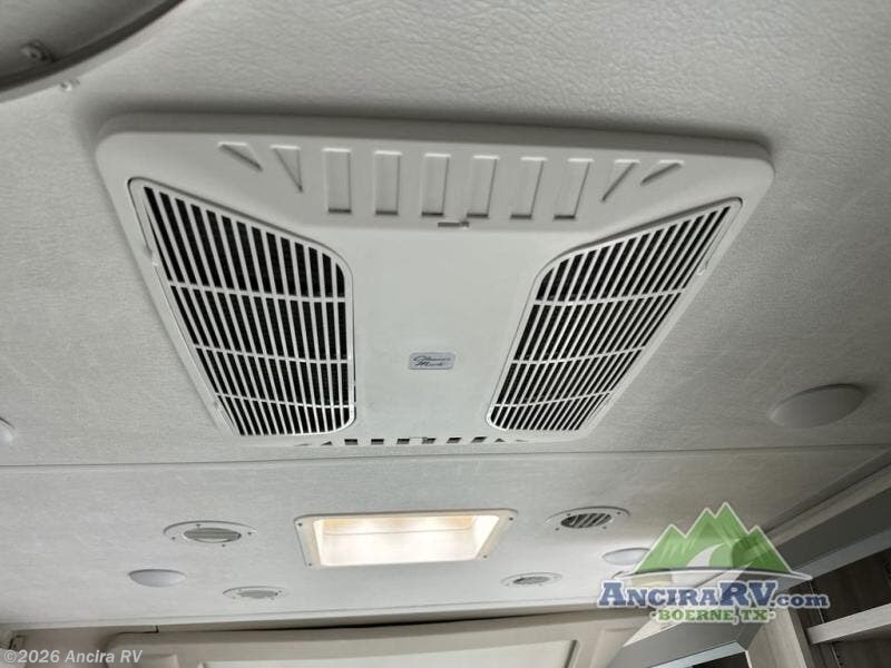 You can tour a local winery or trek up north to find a cozy and secluded camping spot with this Compass AWD Class B+ gas motorhome! All of your needs will be met with the excellent features and amenities included on this coach, like the full bathroom complete with a 24" x 32" shower, three robe hooks, a shower skylight, a foot-flush toilet, and a power bath vent. The kitchen is ready to help you make mobile meals, and the 68" Dream Dinette is the perfect place for eating those meals or playing a game later on. At the dinette table top, you'll find a wireless phone charger with USB plug so that you can charge your phones. There is a privacy curtain that sections off the flip-up RV queen bed, and you'll also find a 32" TV in the bedroom. The second 32" TV is located out in the main living area for everyone else to watch.