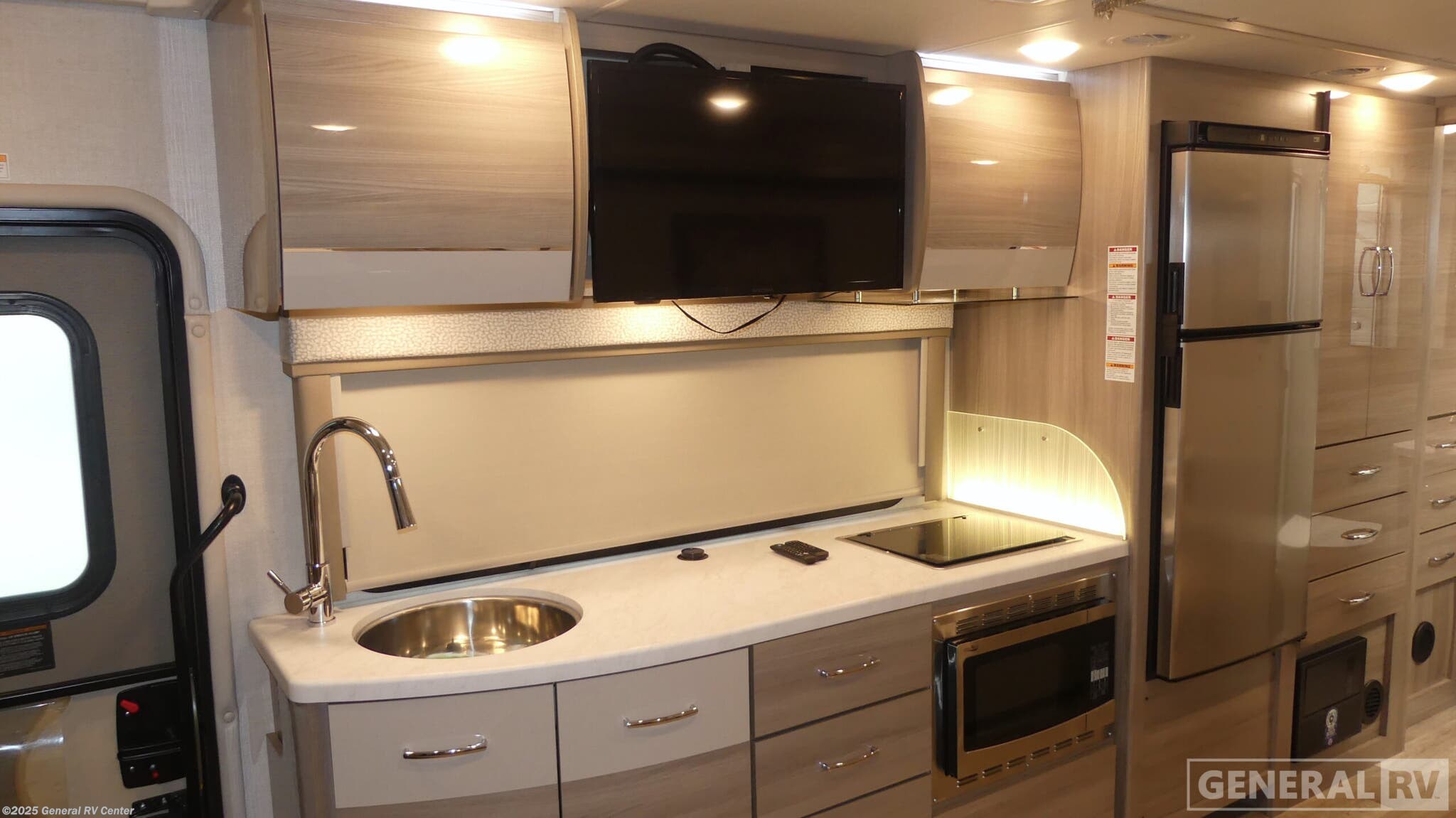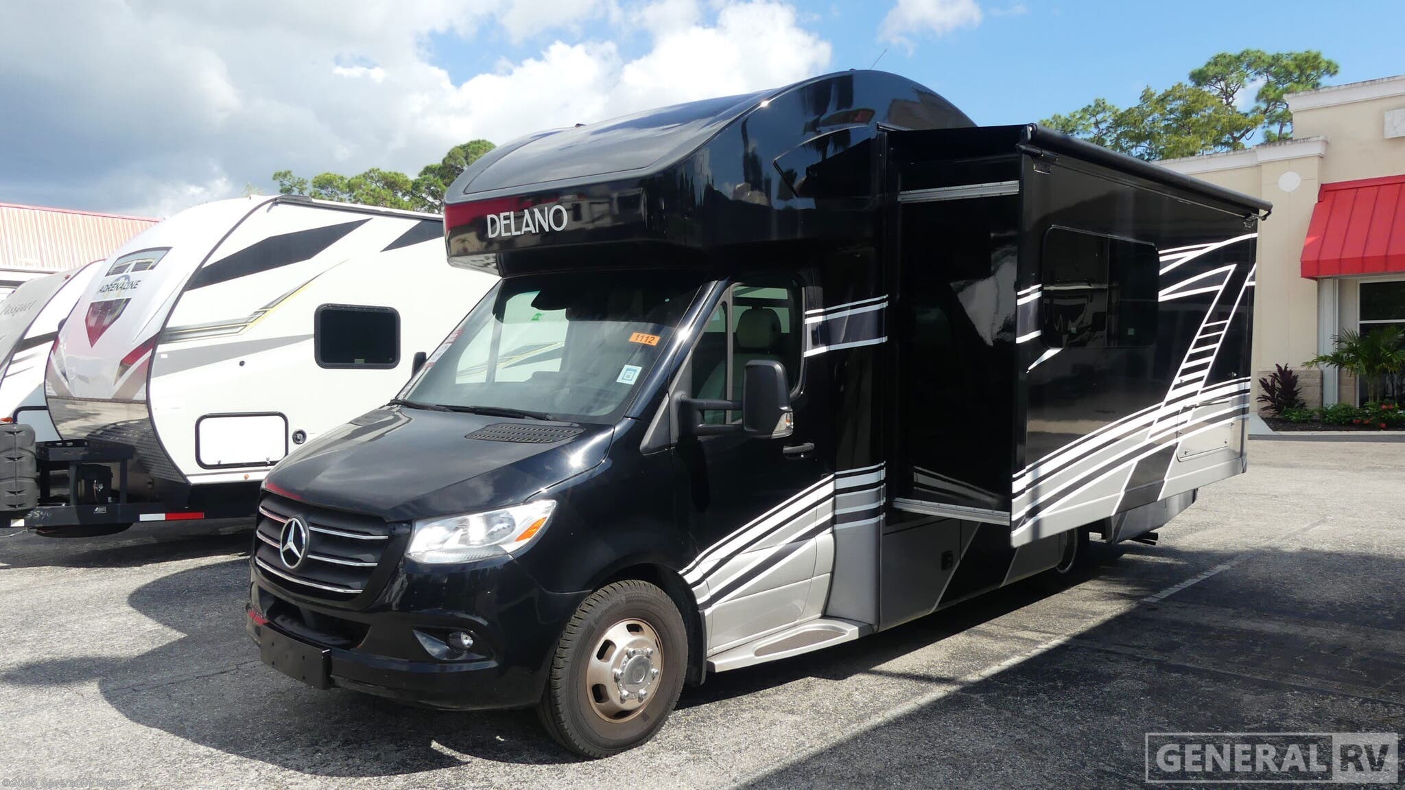 Step into the 2024 Thor Motor Coach Delano 24FB and experience a world where luxury meets practicality. This compact yet spacious RV is built on the reliable Mercedes-Benz Sprinter 3500 chassis, powered by a robust V6 diesel engine that delivers 188 horsepower and 325 torque, ensuring a smooth and powerful ride. With a length of just over 25 feet, it offers the perfect balance between maneuverability and comfort, making it ideal for both long road trips and quick weekend getaways. Inside, the Delano 24FB is designed with your comfort in mind. The front living area features a versatile 70” dream dinette and a 67” sofa, which seamlessly transforms into a cozy sleeping space. For a restful night's sleep, the rear houses a queen-size Murphy bed, cleverly tucked away to maximize living space during the day. The center kitchen is equipped with a mid-size electric refrigerator and two-burner cooktop, perfect for preparing meals on the go. The rear bath offers a spacious shower with a curtain for privacy and convenience. With ample storage options, including closets and overhead compartments, you’ll have plenty of room for all your essentials. The Delano 24FB also boasts modern conveniences like a 15 ft. powered retractable awning, providing a shaded outdoor space to relax and enjoy the scenery. With a fresh water capacity of 30 gallons and both gray and black water tanks holding 38 gallons each, this RV is well-equipped for extended adventures. Whether you’re a seasoned traveler or new to the RV lifestyle, the Delano 24FB is designed to make every journey memorable. For more information or to see this model in person, visit your nearest General RV dealership.