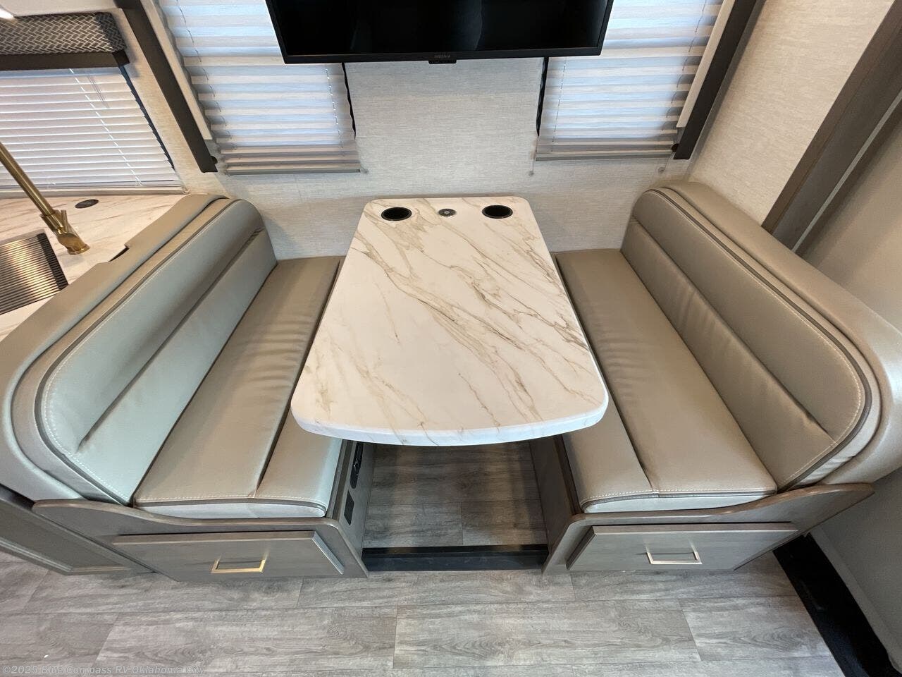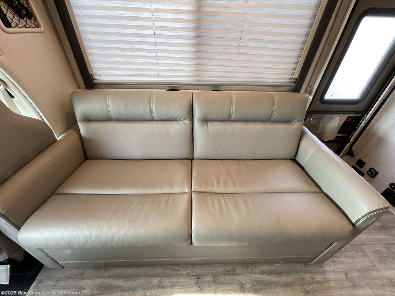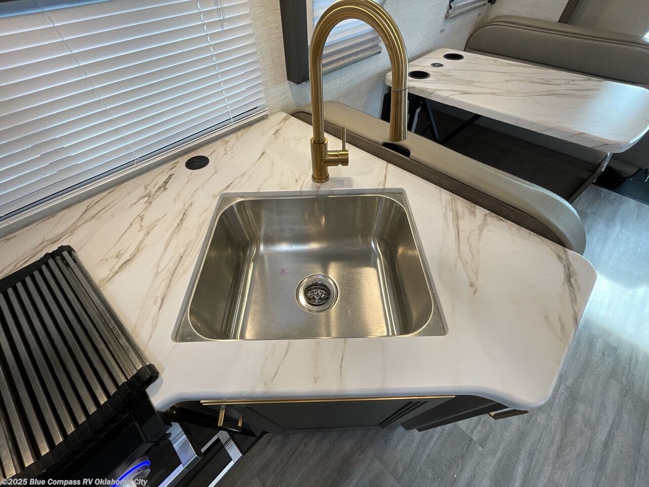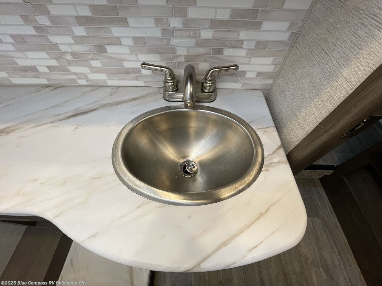 Perfect for a couple or a growing family, this coach will allow you to enjoy inside comforts and outdoor scenery where ever you drive and park! You will have great views out of the many windows when you are indoors, and the power awning offers an outdoor living area protected by the elements when you want some fresh air. The cook will love the large single bowl stainless steel sink with a single handle faucet with a pull-down sprayer when cleaning fruits and veggies, the gas cooktop and microwave when making meals, as well as the 12V refrigerator to hold all the cold items. The slide out creates even more floor space, the furniture offers a place to dine and visit as well as sleep, and the private bedroom with a full bathroom just steps away will complete the deal!