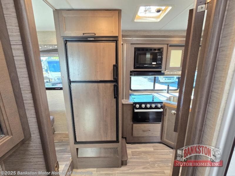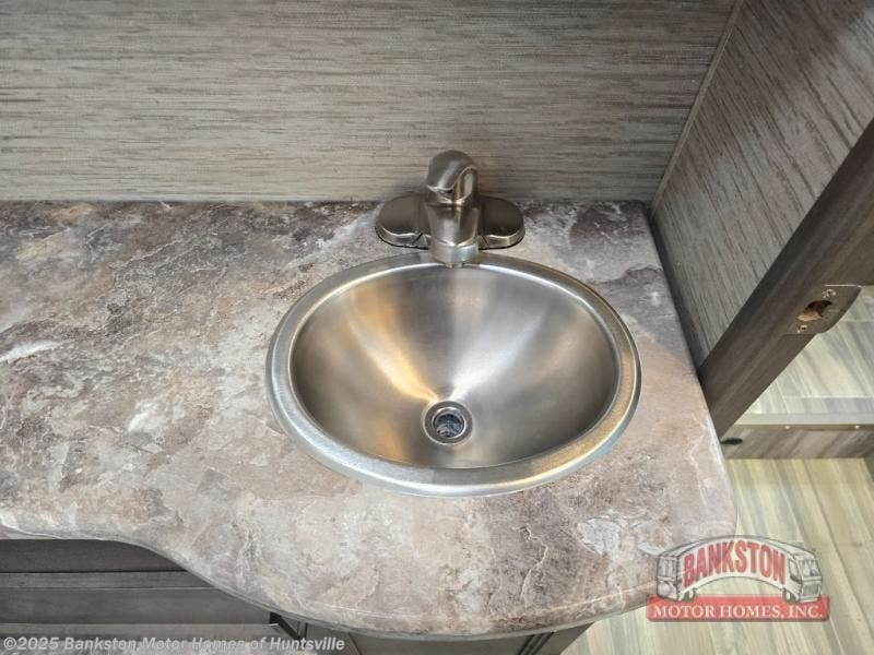 Perfect for a couple or a growing family, this coach will allow you to enjoy inside comforts and outdoor scenery where ever you drive and park! You will have great views out of the many windows when you are indoors, and the power awning offers an outdoor living area protected by the elements when you want some fresh air. The cook will love the large single bowl stainless steel sink with a single handle faucet with a pull-down sprayer when cleaning fruits and veggies, the gas cooktop and microwave when making meals, as well as the 12V refrigerator to hold all the cold items. The slide out creates even more floor space, the furniture offers a place to dine and visit as well as sleep, and the private bedroom with a full bathroom just steps away will complete the deal!