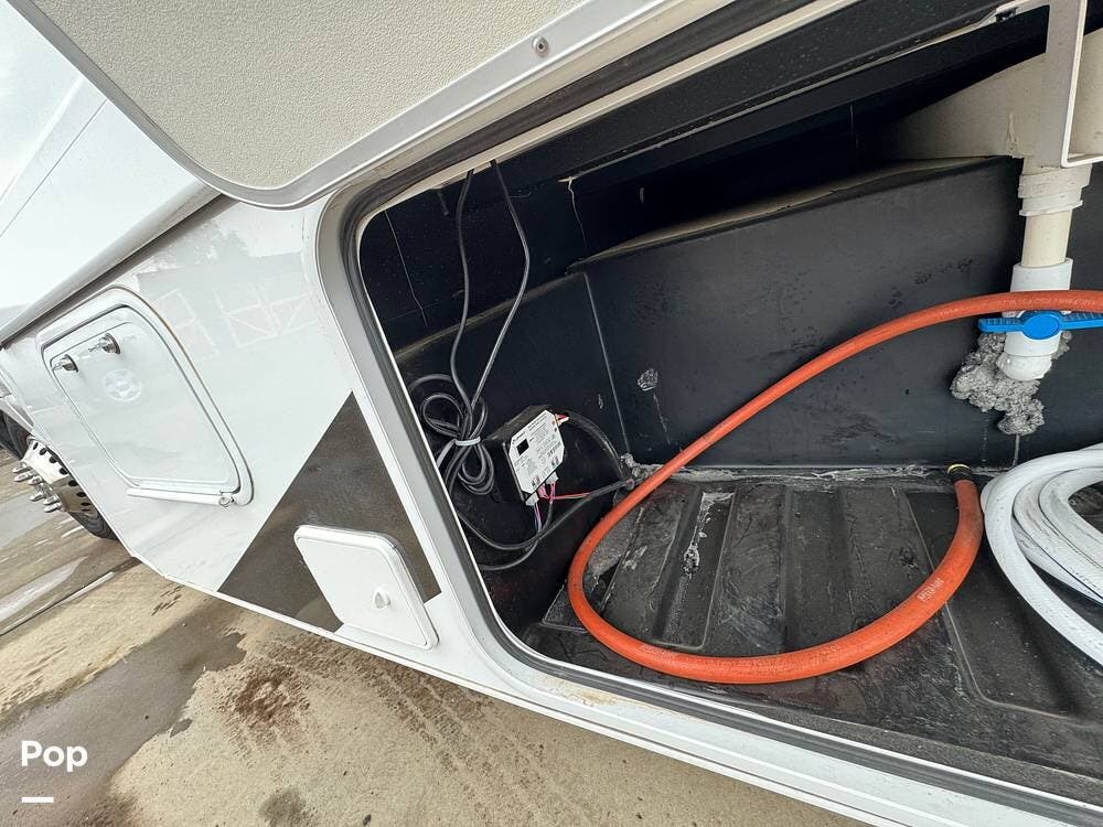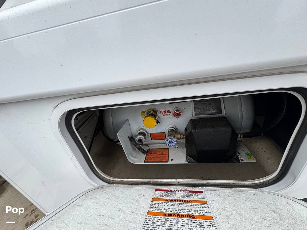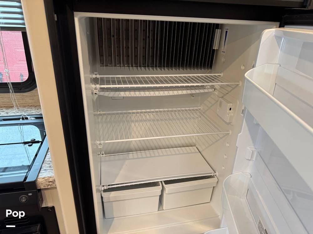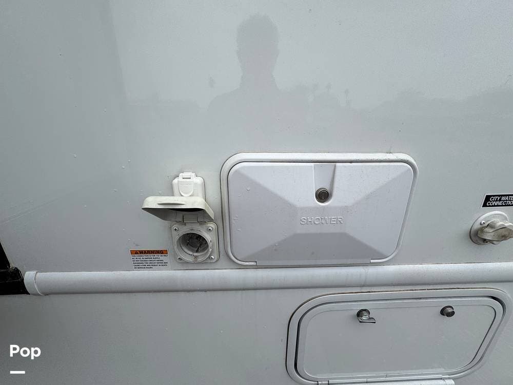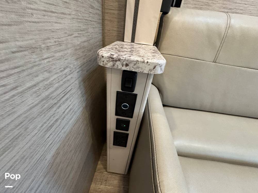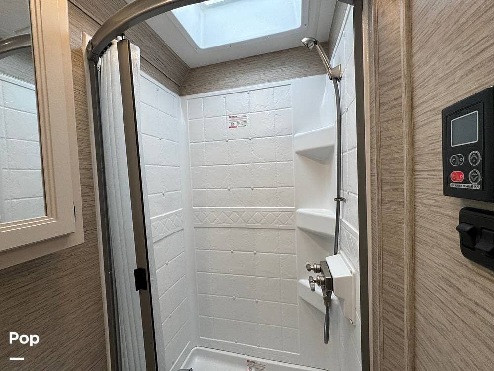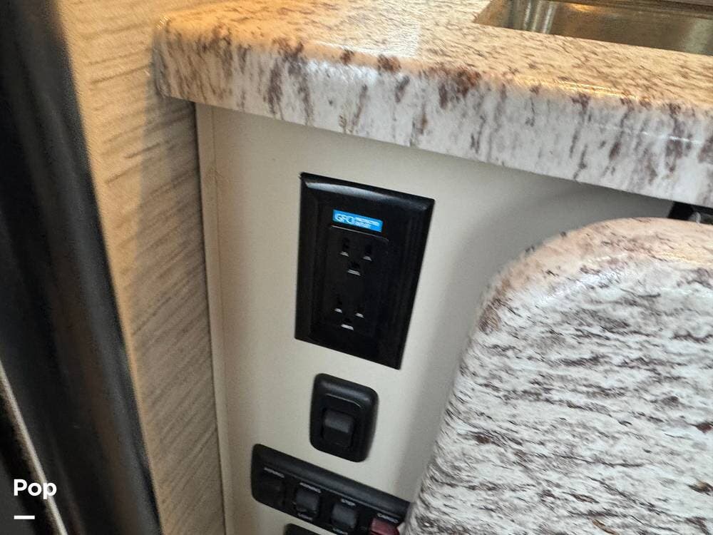 From the outside, the 24FL presents a modern profile with clean graphics and a one-piece fiberglass front cap. Its exterior gears toward practicality and convenience: a power patio awning with integrated LED lighting extends your living space outdoors, while MEGA-Storage compartments provide ample room for camping gear and travel essentials.
