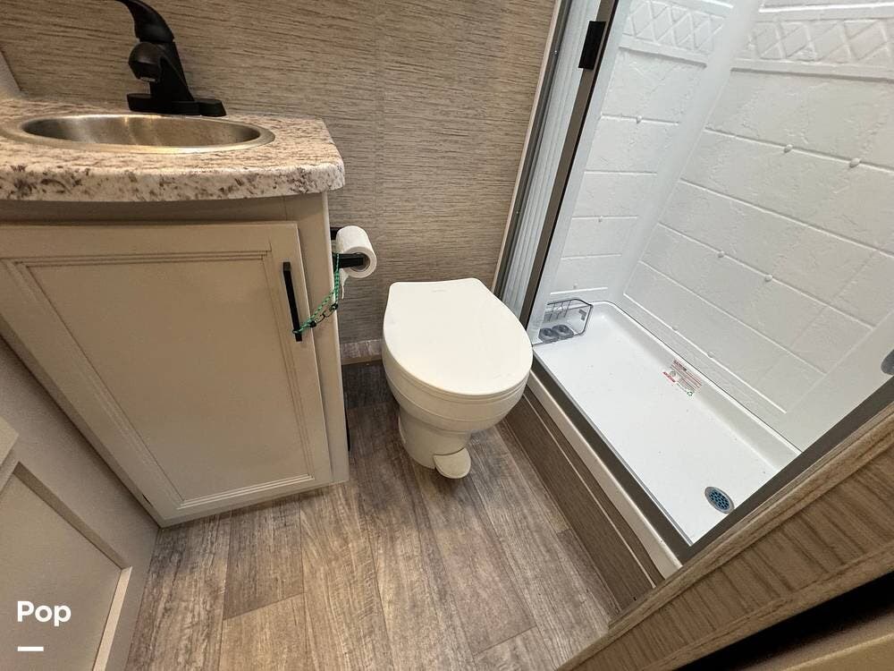 Step inside and you're greeted by a well-laid-out interior that maximizes every square foot. Soft LED lighting and 84″ high ceilings create an open feel, while durable residential-style vinyl flooring ties the space together.