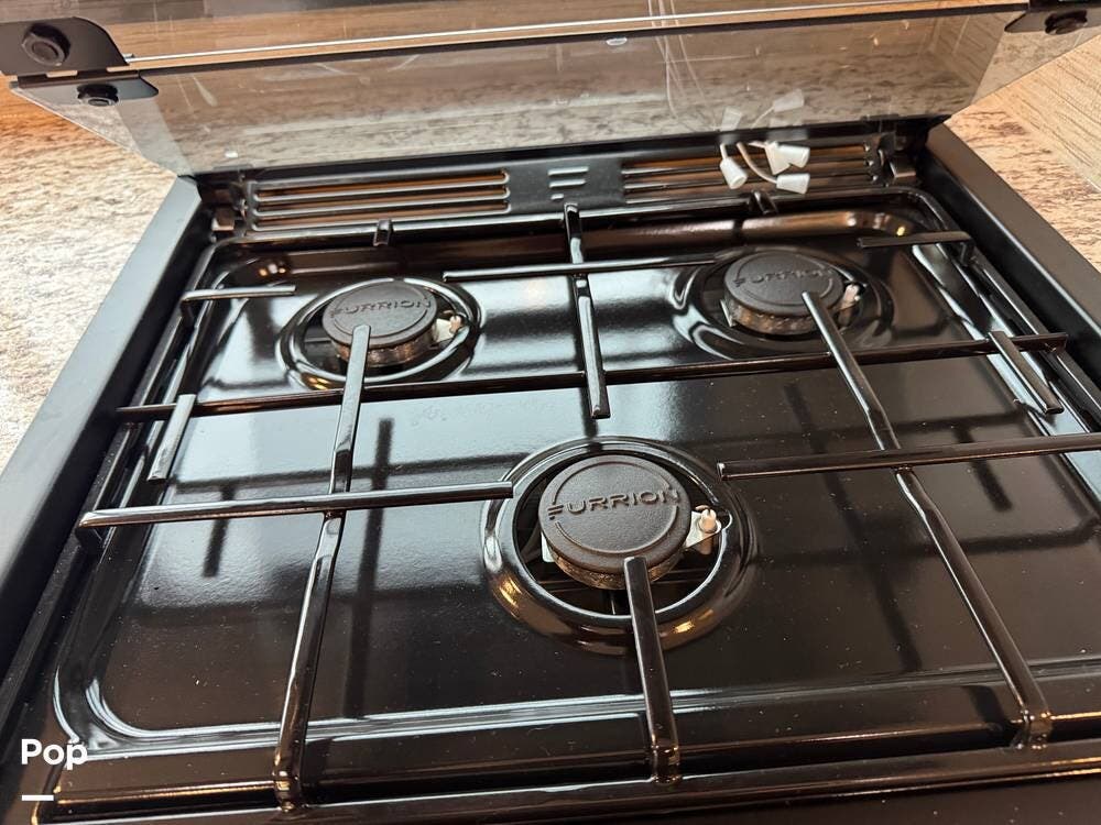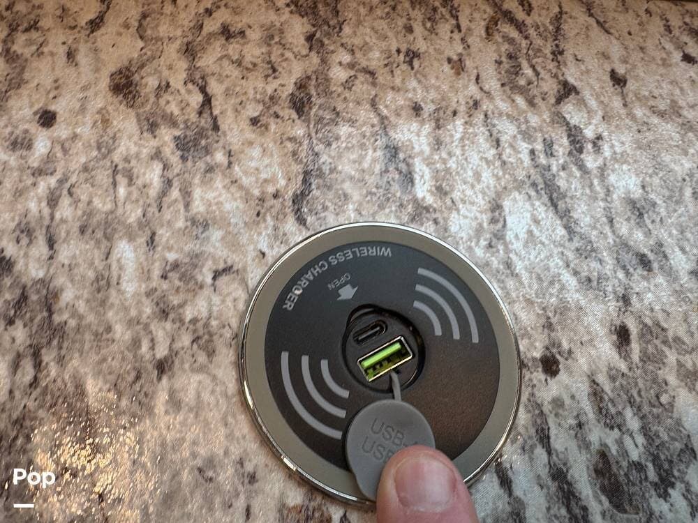 The kitchen is thoughtfully equipped with a high-rise faucet and stainless-steel sink, a multi-burner cooktop with a glass cover (which doubles as extra prep space), and a 12-volt double-door refrigerator -- perfect for weeklong trips or weekend getaways. A convenient pop-up power station with outlets and wireless charging keeps devices ready for adventure.