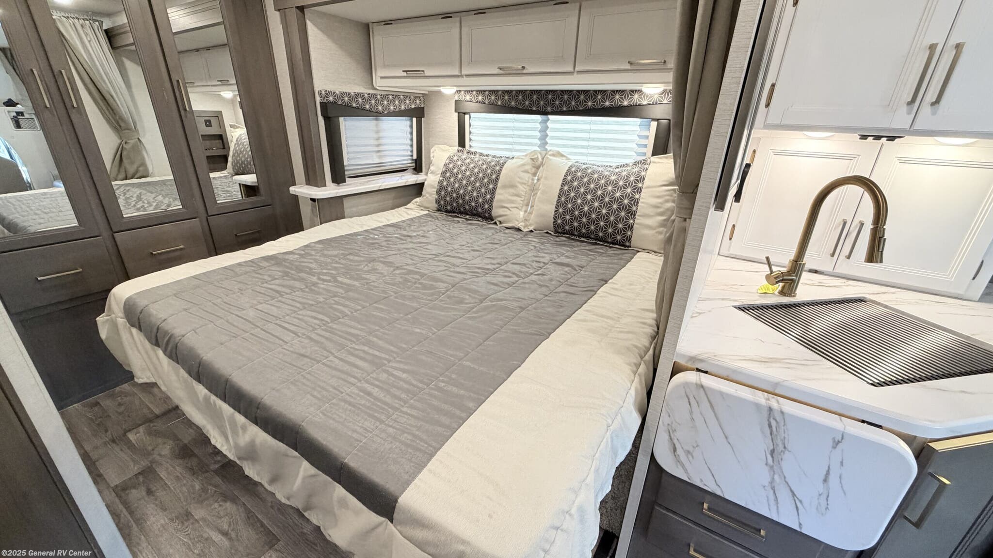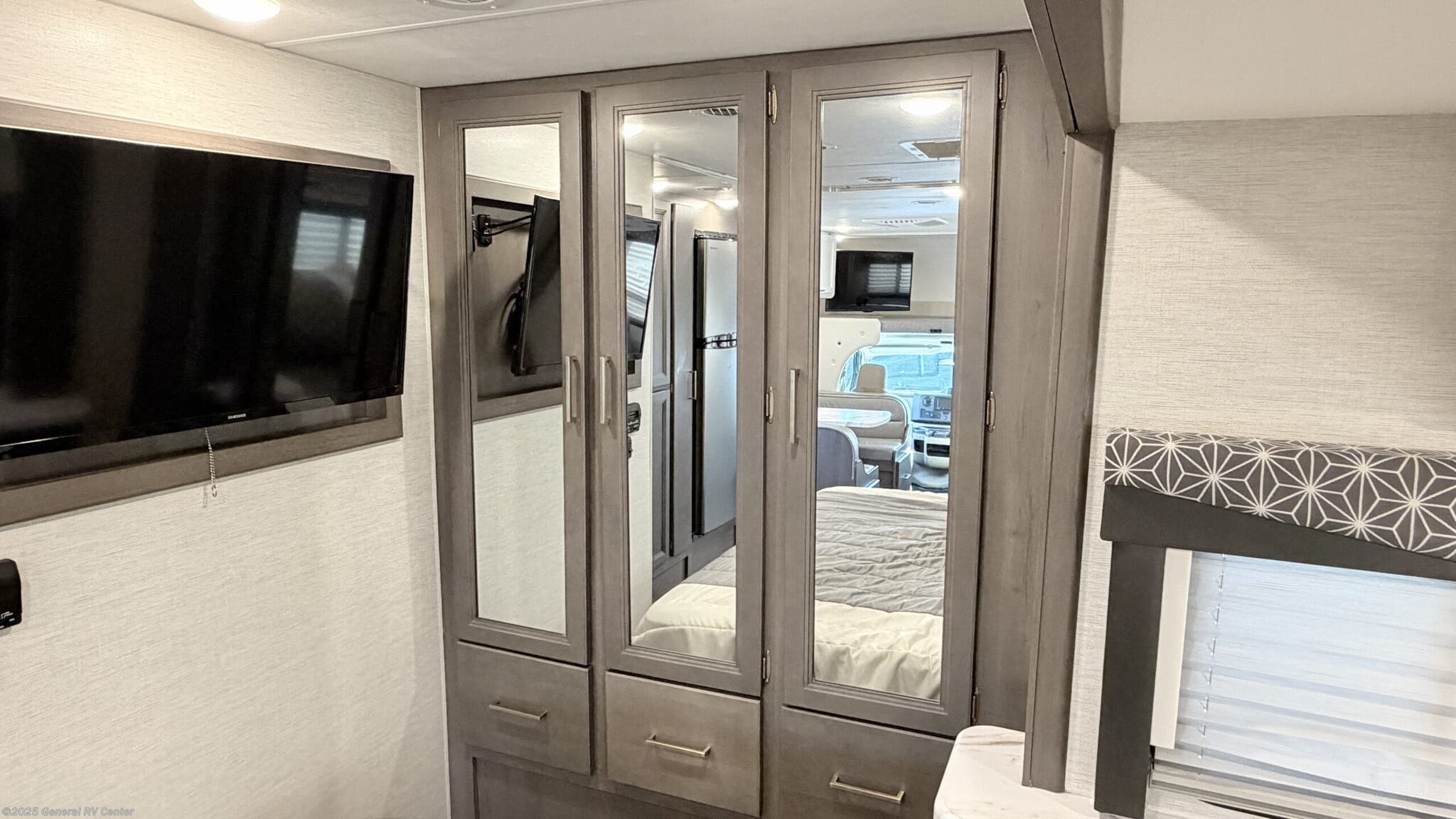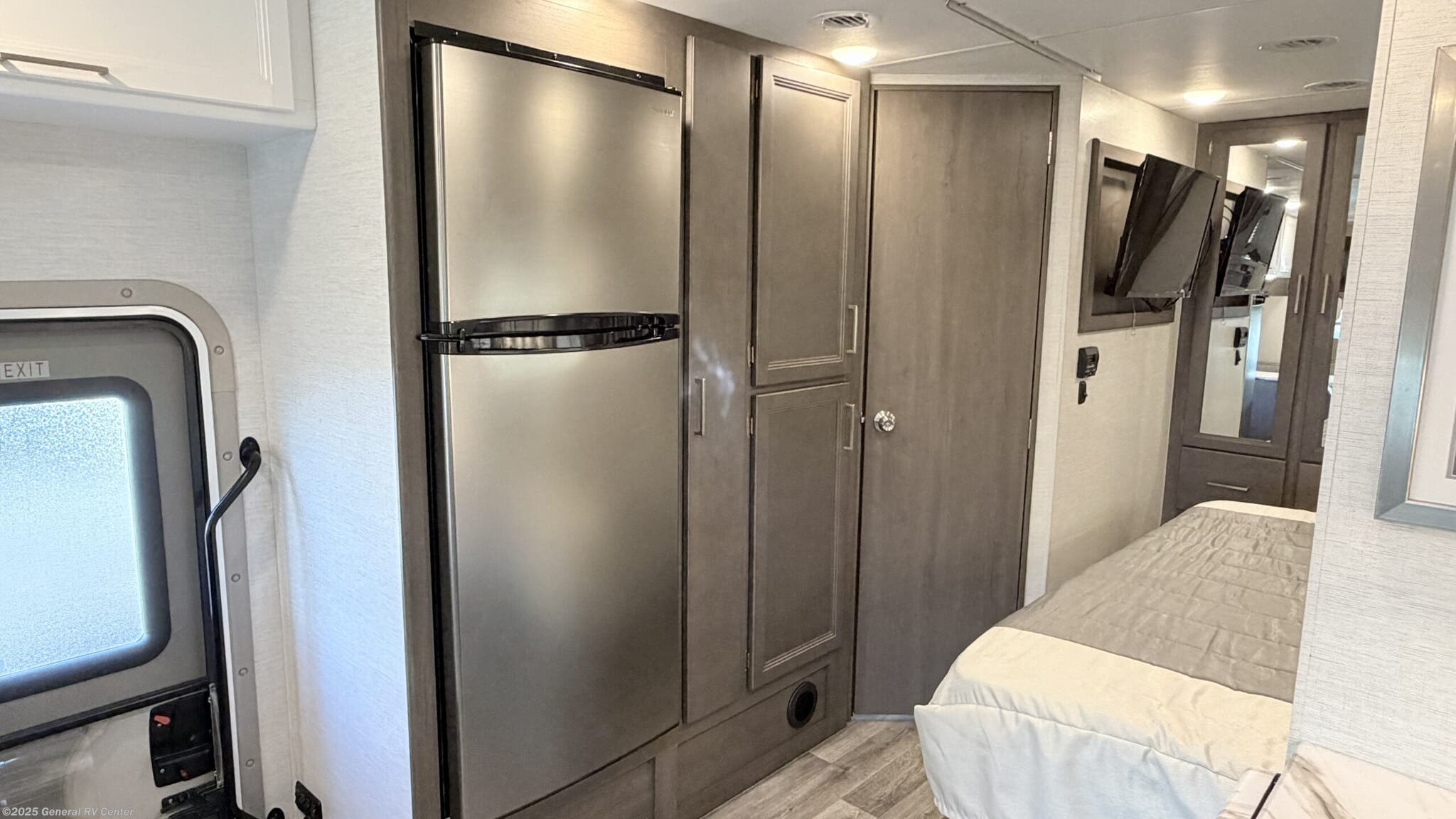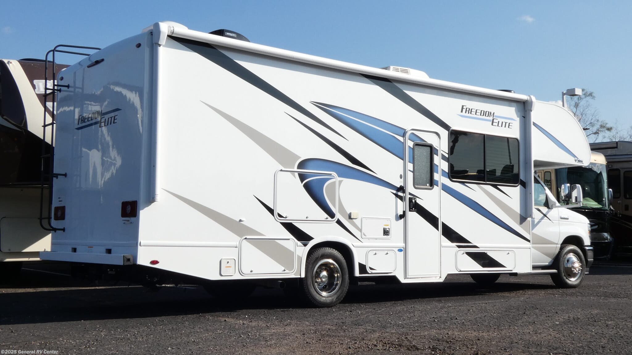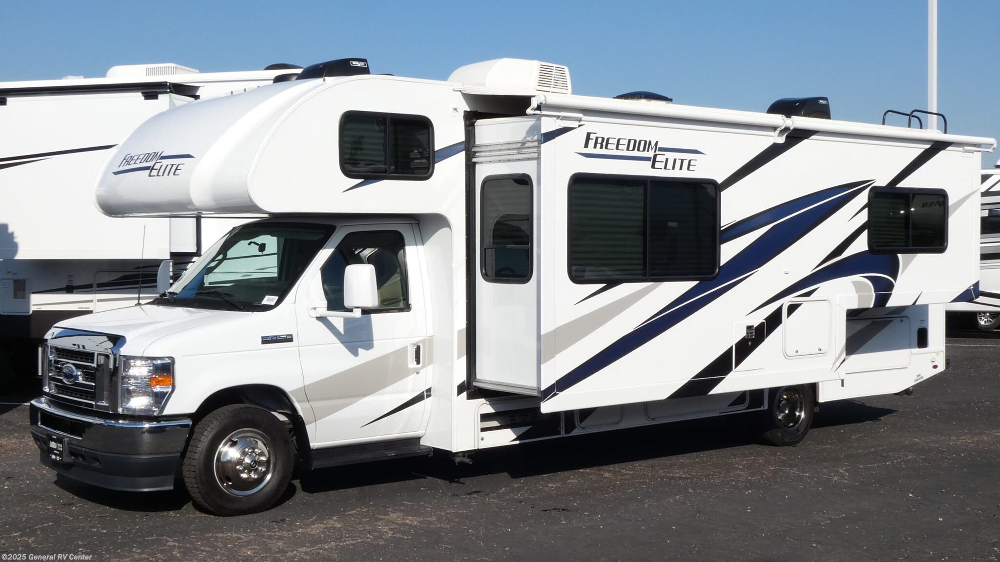 Experience the open road like never before with the 2024 Thor Motor Coach Freedom Elite 27FE. This motorhome is thoughtfully designed to accommodate up to eight travelers, making it perfect for family adventures or group excursions. With a spacious king bed, a cozy double bed, and convertible sleeping options, everyone will find their perfect spot to relax after a day of exploring. The Ford E450 chassis, boasting 325 horsepower and 450 torque, ensures a smooth and powerful drive, whether you're navigating city streets or cruising down the highway. Inside, you'll find a well-appointed central kitchen equipped with a three-burner cooktop and a mid-size refrigerator, ready to handle all your culinary needs. The front living area, complete with a 68" jack-knife sofa and a 71" dream dinette, provides ample space for dining and entertainment. The rear bathroom offers convenience with a shower and curtain, ensuring privacy and comfort. Step outside under the 20-foot powered retractable awning and enjoy the exterior 32" TV, perfect for outdoor movie nights under the stars. With a sleek exterior and practical features like a 40-gallon fresh water tank and a 55-gallon fuel capacity, the Freedom Elite 27FE is designed for those who crave adventure without sacrificing comfort. Visit your nearest General RV dealership to explore this incredible motorhome and start your journey today!
