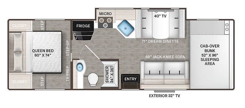 This 28-foot coach offers smooth handling and ample power while cruising highways or exploring scenic backroads.