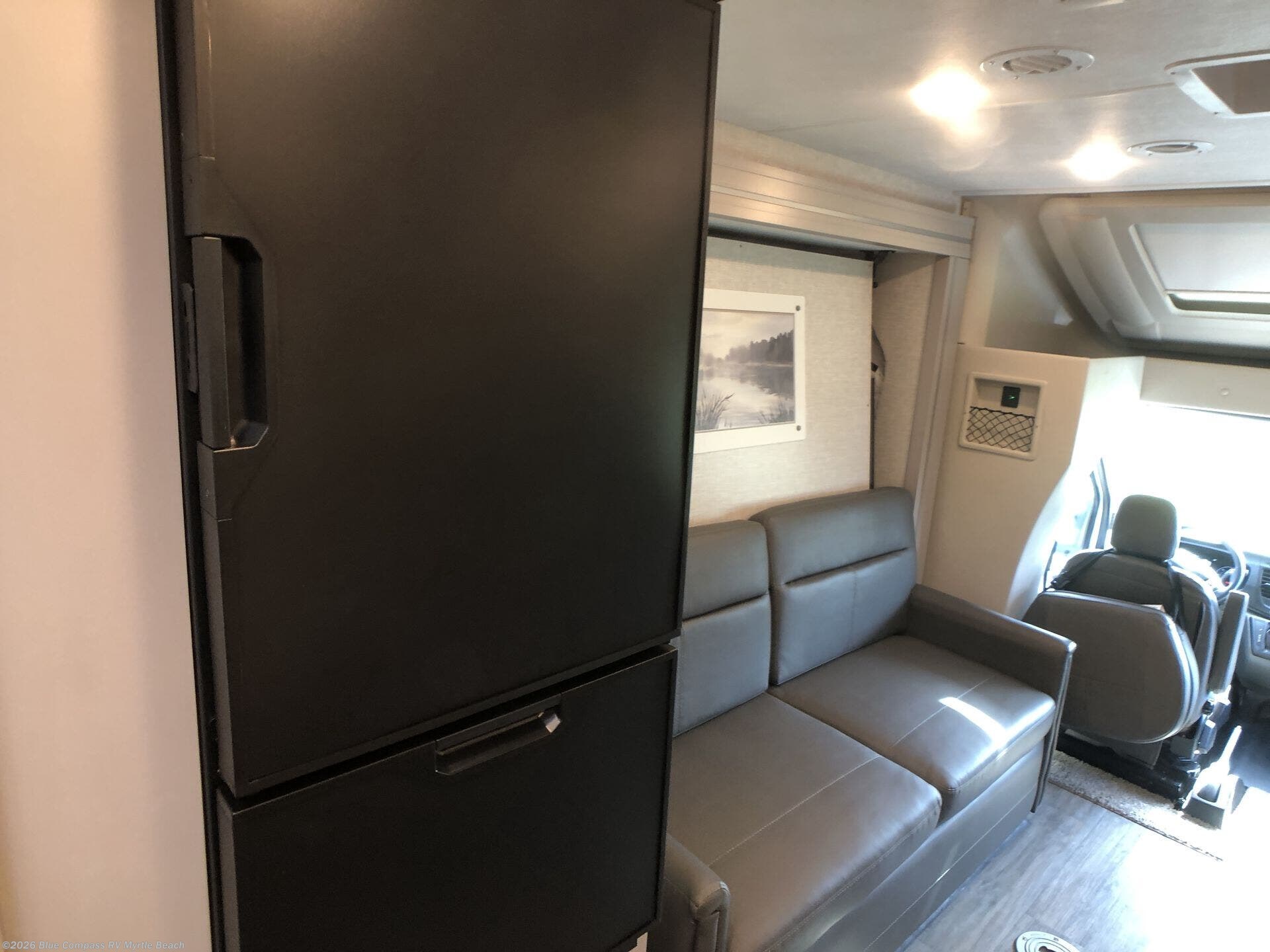 Pack your bags and fuel up this motorhome for a great vacation getaway! Enjoy a good night's rest each night on the 60" x 74" Murphy bed slide and sit on the sofa during the day with a pedestal table to set your drinks. You can prepare your best home cooked meals with the electric start two burner gas cooktop or heat up some leftovers in the convection microwave oven with an air fryer. The front built-in skylight lets in more natural lighting and makes it easier to see the retractable 39" TV. Freshen up each day in the full rear bathroom with a 24" x 36" shower and linen closet to keep your towels close by, plus there is a wardrobe just outside the bathroom to keep your clothes looking nice!