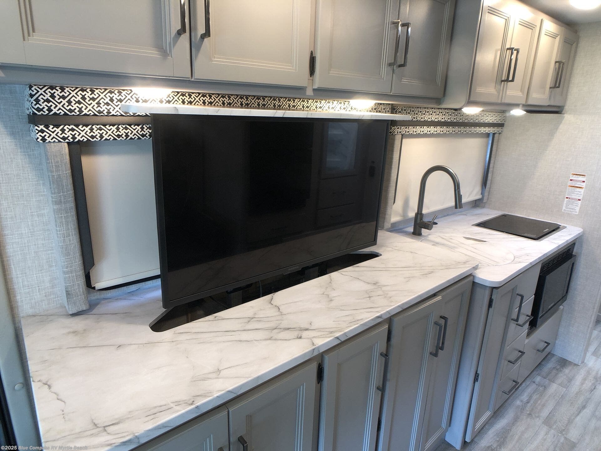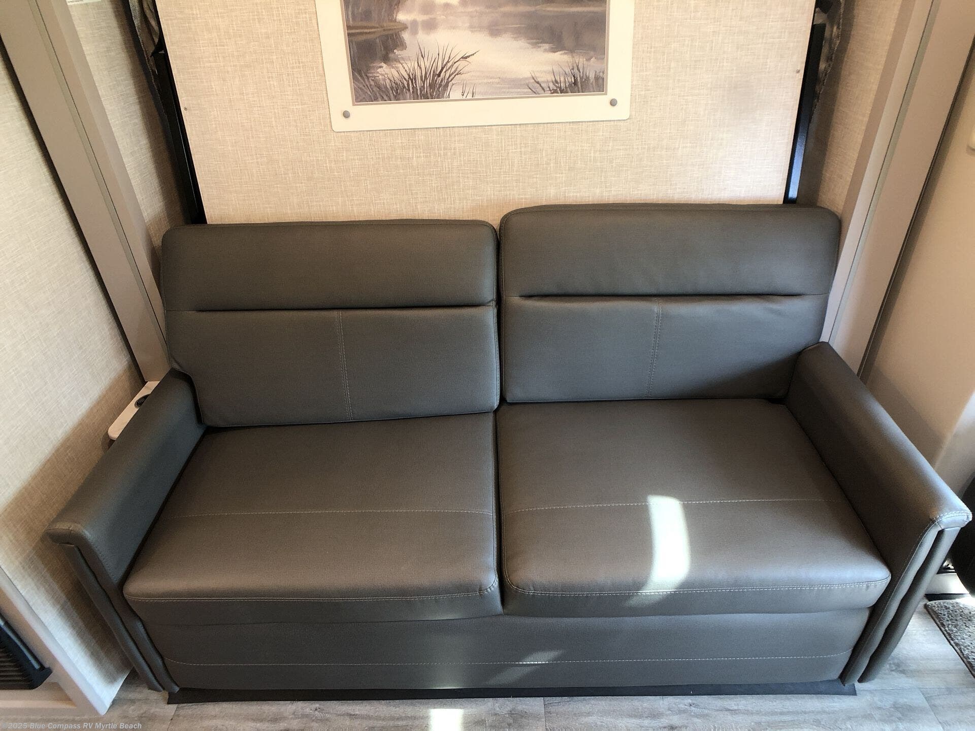 Pack your bags and fuel up this motorhome for a great vacation getaway! Enjoy a good night's rest each night on the 60" x 74" Murphy bed slide and sit on the sofa during the day with a pedestal table to set your drinks. You can prepare your best home cooked meals with the electric start two burner gas cooktop or heat up some leftovers in the convection microwave oven with an air fryer. The front built-in skylight lets in more natural lighting and makes it easier to see the retractable 39" TV. Freshen up each day in the full rear bathroom with a 24" x 36" shower and linen closet to keep your towels close by, plus there is a wardrobe just outside the bathroom to keep your clothes looking nice!