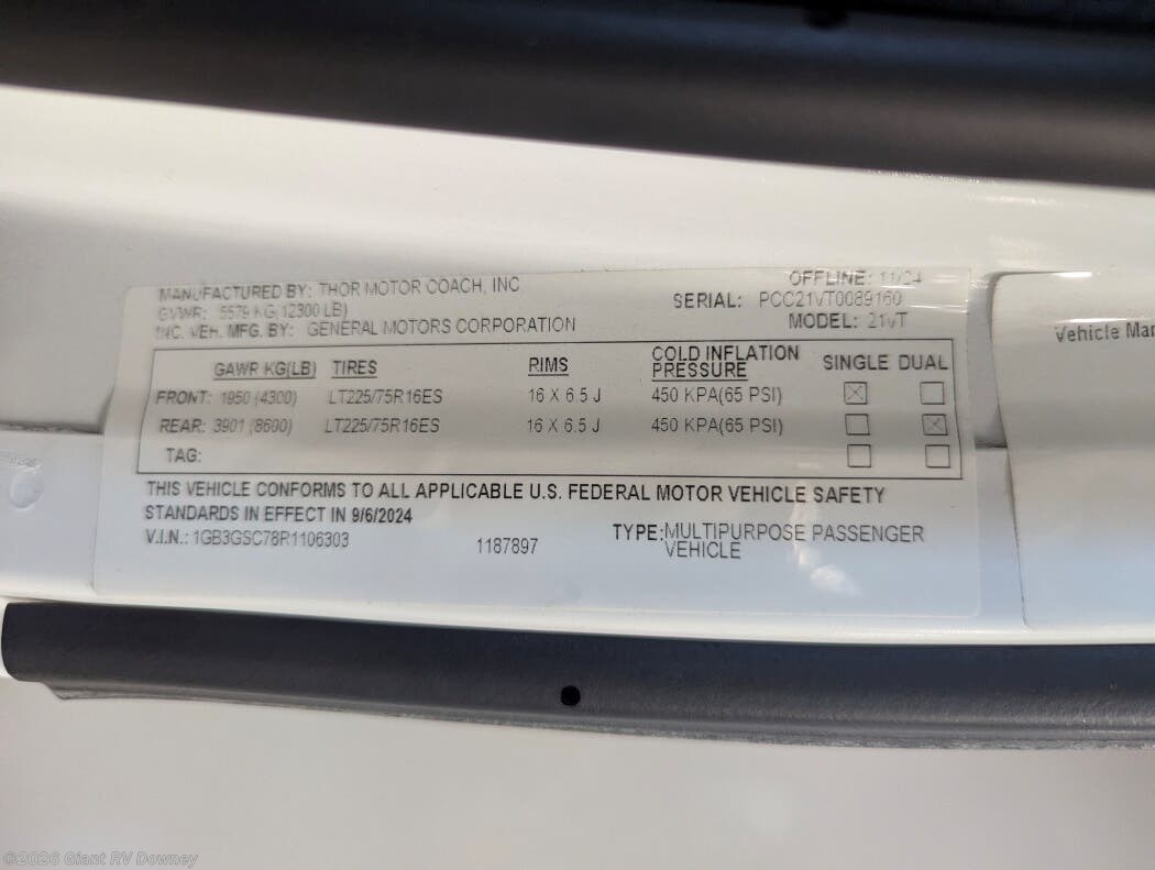 Request More Info on this 2024 Thor Motor Coach Geneva 21VT Offered for sale by Giant RV