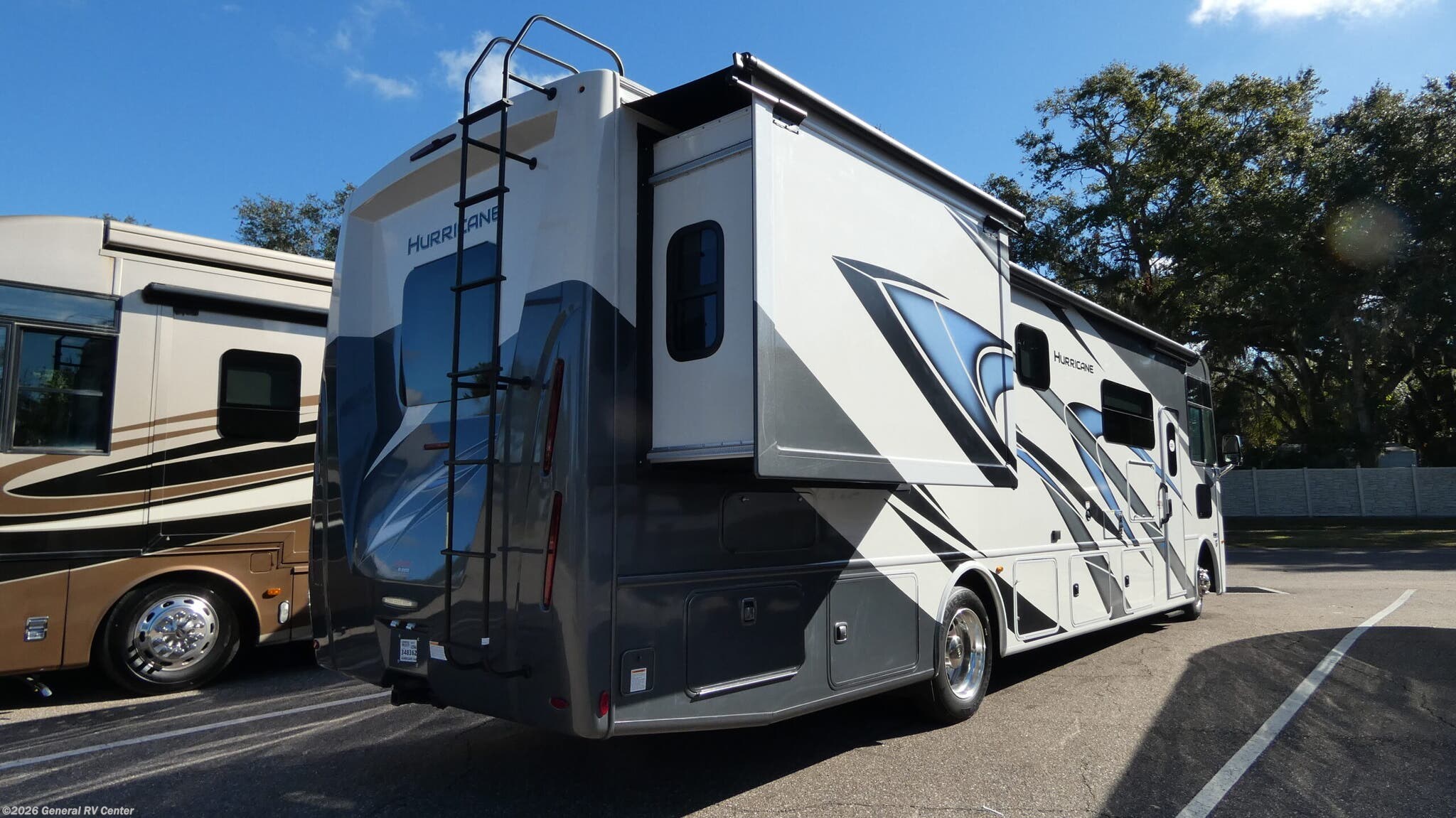 The 2024 Thor Motor Coach Hurricane 34A is your ticket to adventure with all the comforts of home. This RV combines style and functionality, offering a spacious retreat on the road. With its Ford F53 chassis and a robust 350-horsepower engine, you’ll experience a smooth ride and plenty of power to explore new destinations. The 36-foot length and two slides create a roomy interior, perfect for families or groups, comfortably sleeping up to eight. The king-sized bed in the rear bedroom ensures a restful night's sleep, while the convertible beds provide flexibility for guests. Inside, the Hurricane 34A features a thoughtfully designed floorplan with a center kitchen equipped with a full-size electric refrigerator and a three-burner cooktop, making meal preparation a breeze. The front living area offers a cozy space to relax, complete with an expanding sofa bed and a Dream Dinette for dining or game nights. Enjoy the convenience of the washer/dryer prep, and unwind in the center bath with a plastic/glass shower. The powered retractable awning extends your living space outdoors, perfect for enjoying the fresh air and scenic views. Whether you're embarking on a cross-country journey or a weekend getaway, the Hurricane 34A is ready to elevate your travel experience. For more information, visit your nearest General RV dealership and start your adventure today!
