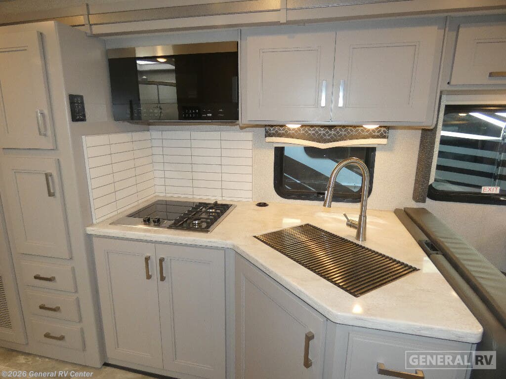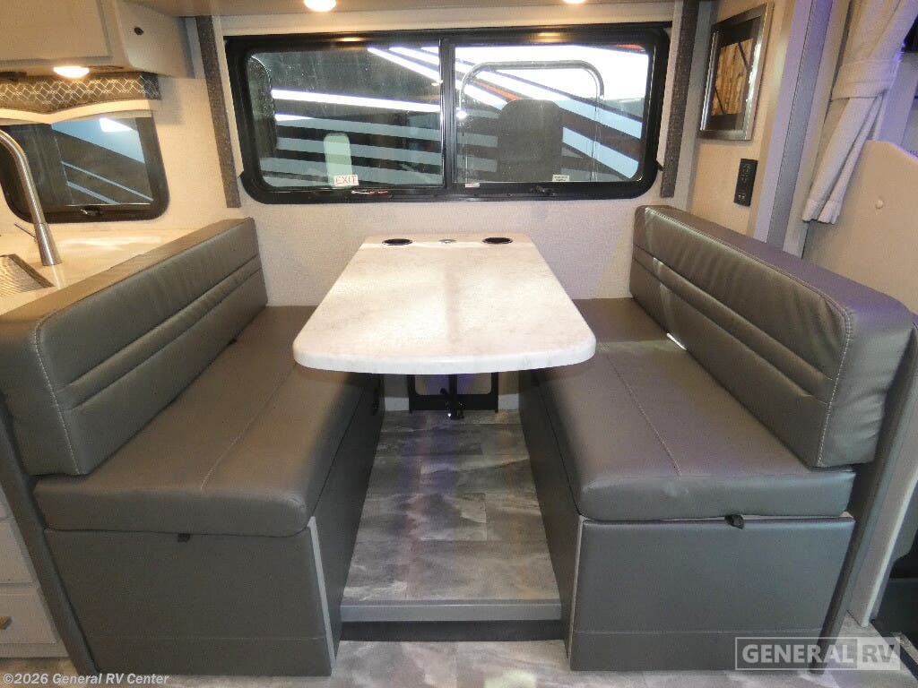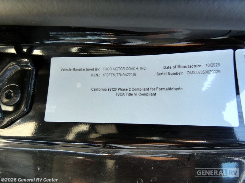 Experience the open road like never before with the 2024 Thor Motor Coach Omni SV34. This luxurious RV is designed for those who crave adventure without sacrificing comfort. Measuring nearly 36 feet in length, this diesel-powered powerhouse is built on a robust Ford F600 chassis, boasting a formidable 330 horsepower V8 engine with 950 lb-ft of torque. Whether you're towing up to 12,000 pounds or simply cruising through scenic routes, the Omni SV34 delivers a smooth, reliable ride. Inside, you'll find a thoughtfully designed space that accommodates up to eight sleepers, featuring a king-size Tilt-A-View bed for ultimate relaxation. The front living area boasts a cozy cab-over bunk and theater seating, perfect for family movie nights on the 39" swivel TV. The center kitchen is equipped with a full-size refrigerator and convection cooking, ensuring you can whip up gourmet meals on the go. With a 20-foot powered retractable awning, you can extend your living space outdoors, enjoying the fresh air while watching your favorite shows on the exterior TV. The Omni SV34's layout also includes a center bath with a convenient shower, ample storage options, and a versatile dream dinette that easily converts for additional sleeping space. With a generous 65-gallon fresh water capacity and efficient tank systems, this RV is ready for extended journeys. Visit your nearest General RV dealership to explore the 2024 Thor Motor Coach Omni SV34 and start your next adventure today!