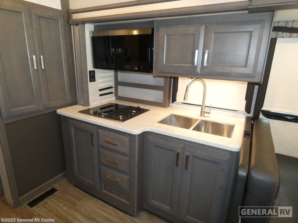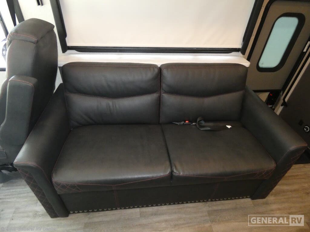 Step into the world of adventure with the 2024 Thor Motor Coach Outlaw 38KB. This remarkable RV is designed for those who crave the thrill of the open road without sacrificing the comforts of home. The Outlaw 38KB offers a spacious and versatile living experience, featuring a unique floorplan that includes a center kitchen, front living area, and a center bedroom with a luxurious Tilt-A-View inclining king bed. Imagine relaxing in the plush living space with a 66" sofa bed and a 72" dream dinette, perfect for entertaining guests or enjoying a quiet evening with family. This motorhome is not just about comfort; it's about functionality too. With a full-size refrigerator, convection cooking, and a washer/dryer, you have everything you need for extended stays. The garage area doubles as a patio deck, expanding your living space to the great outdoors. With the capacity to sleep up to 12 people, this RV is ideal for large families or groups of friends. The Ford F53 chassis, powered by a robust 350 horsepower engine, ensures a smooth and powerful drive, while the 18 ft. powered retractable awning provides shade for those sunny days. For more information or to see this beauty in person, visit your nearest General RV Dealership. Your adventure awaits!