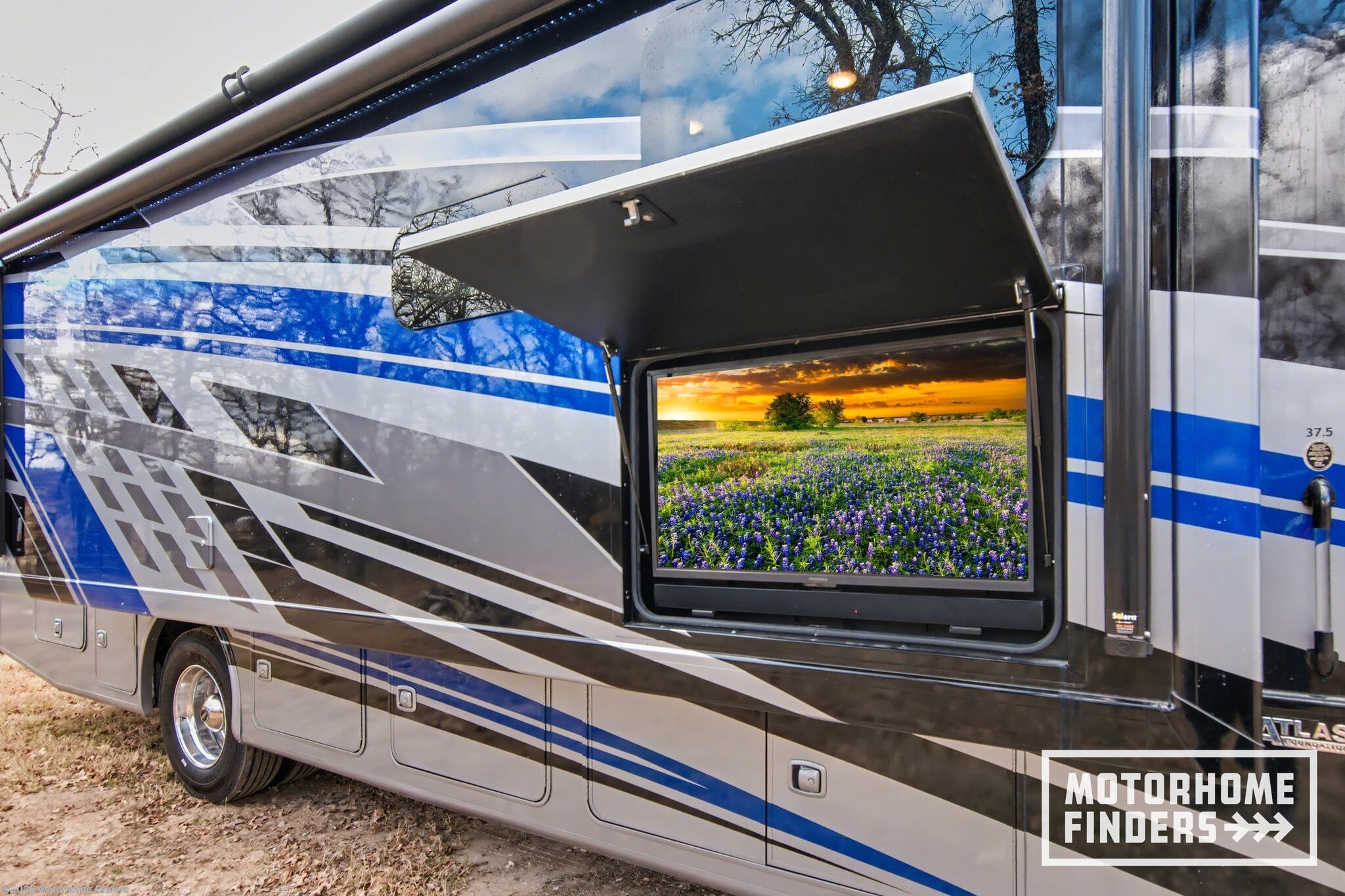 Backup Camera, Bluetooth Stereo, CO Detector, Fire Extinguisher, GPS Navigation, LP Detector, Propane, Smoke Detector, Stereo System, Televator TV, TV, TV Antenna -