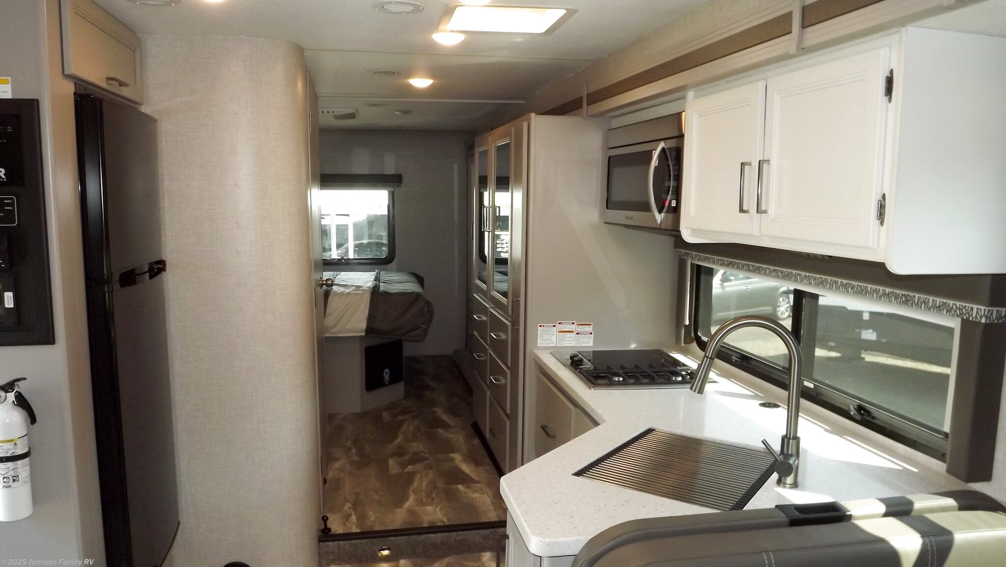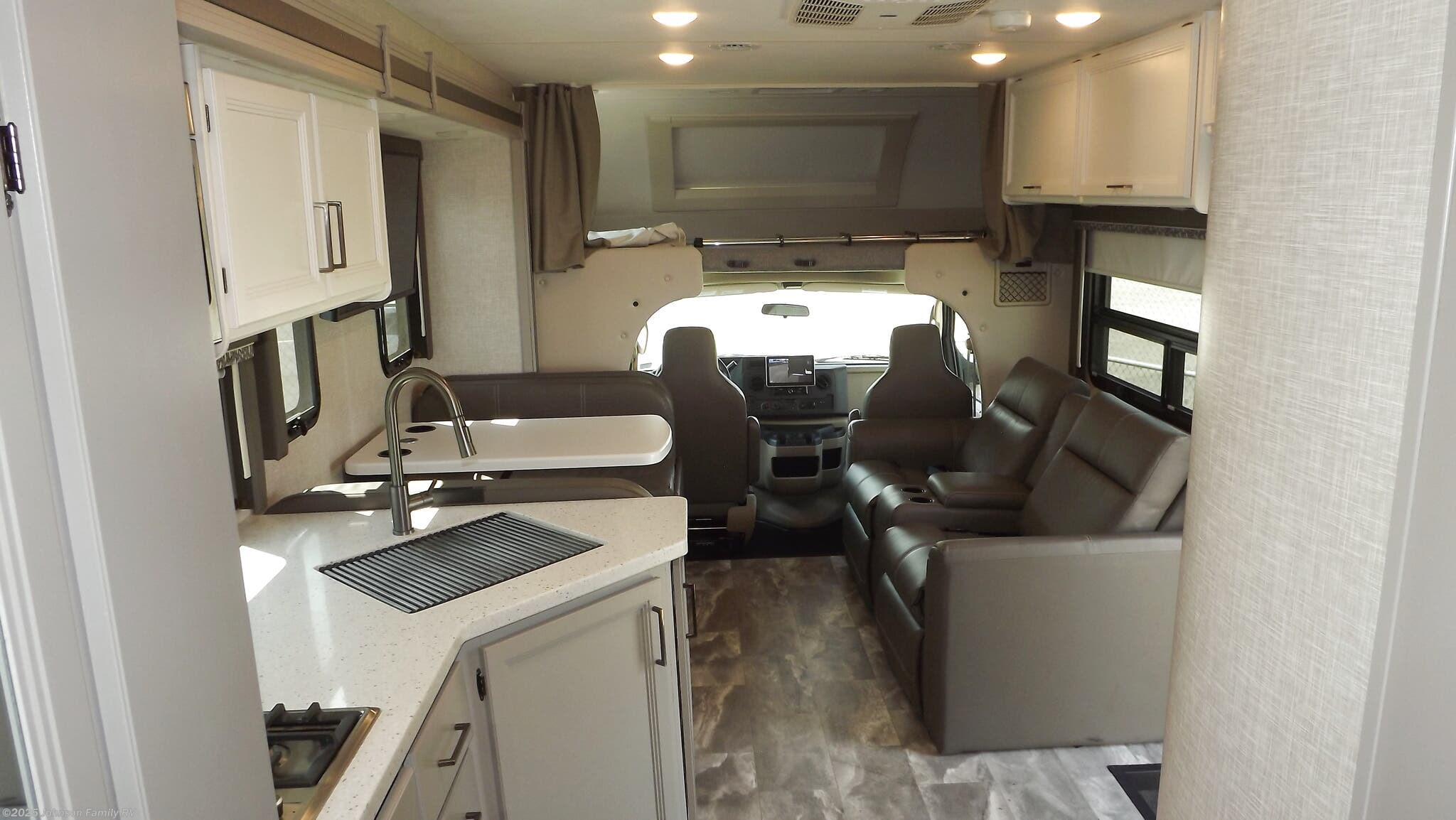 The 2024 Thor Quantum Class C motorhome is a versatile recreational vehicle built on a Ford E-450 chassis with a reliable 7.3L V8 325 horsepower gas engine. This 32 feet 4 inches long, 8 feet 3 inches wide and 11 feet 2 inches tall motorhome is designed for families and friends who crave comfortable travel without sacrificing performance. With a bunk over cab, mid kitchen, mid living area, and rear bedroom floorplan, it sleeps up to eight people and offers practical space for both everyday living and weekend adventures. The Quantum combines rugged reliability with modern amenities, making it an excellent upgrade from traditional travel trailers to a full-featured motorhome experience.