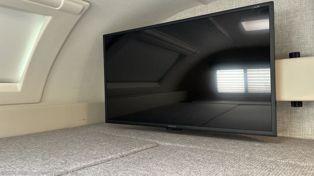 You're going to love the amount of space in this coach thanks to the large slide out. Here, you'll find the leatherette Dream Dinette and the sofa with a Murphy bed for versatility. There is even a privacy curtain around the bed so you can enjoy your own space at night. The full-equipped kitchen includes a 12V refrigerator, a microwave oven, plus a three burner cooktop with an oven and glass cover for more counter space. This model also includes a 39" TV with a swivel in the cab-over, plus a 32" TV across from the bed, and an optional 32" exterior TV so you'll never go bored. If you'd rather have a Chevy chassis, you can choose that option!