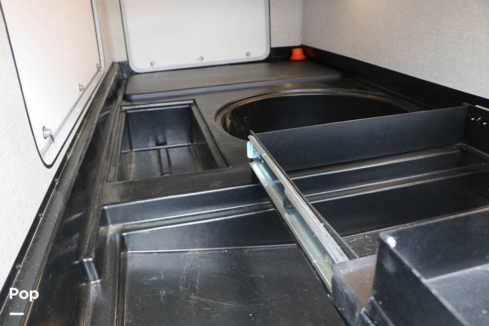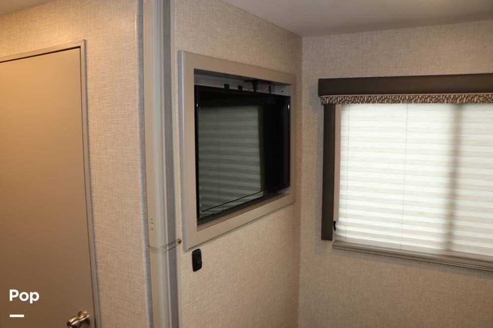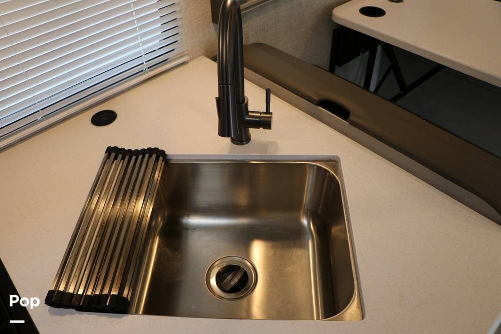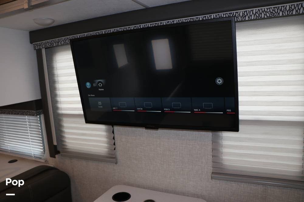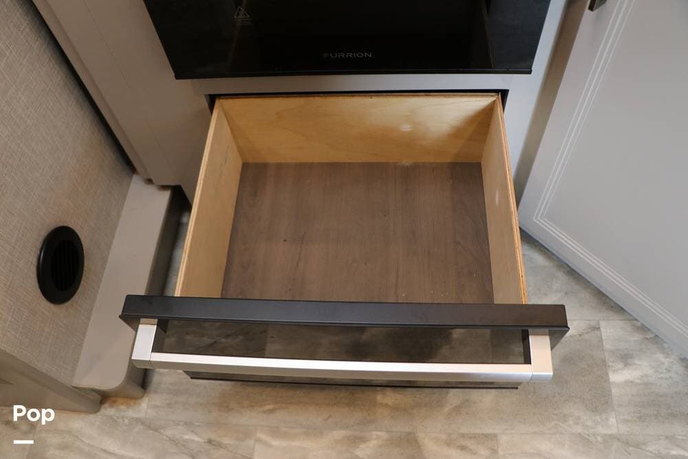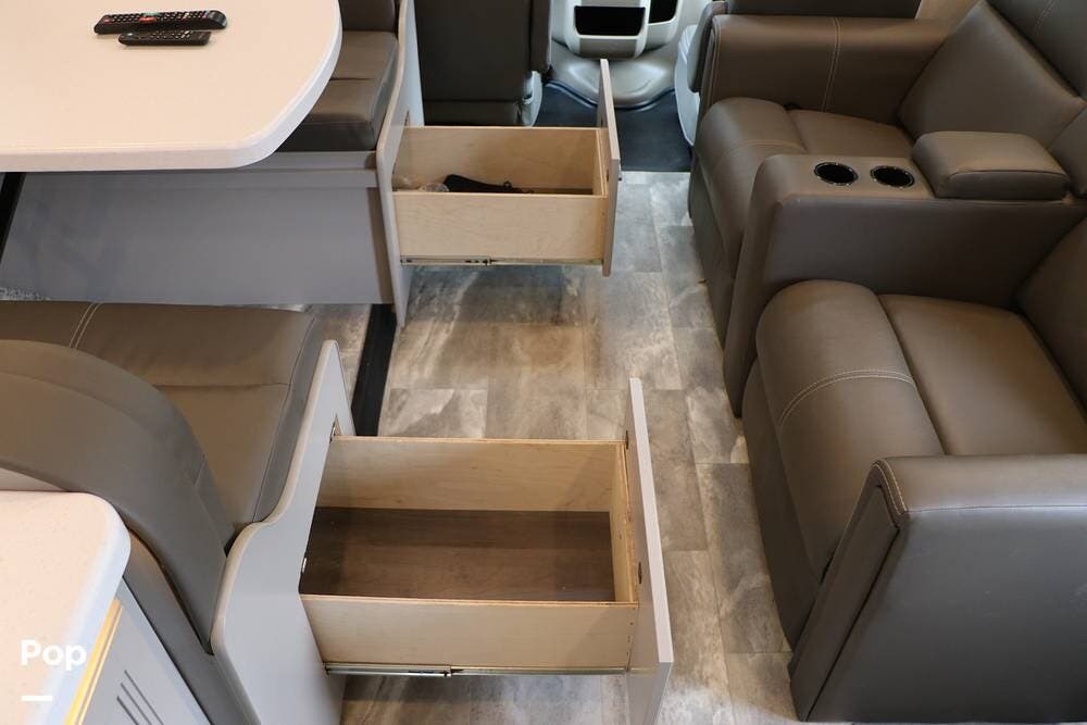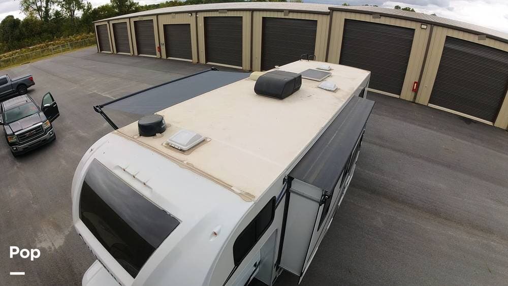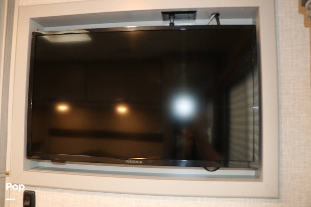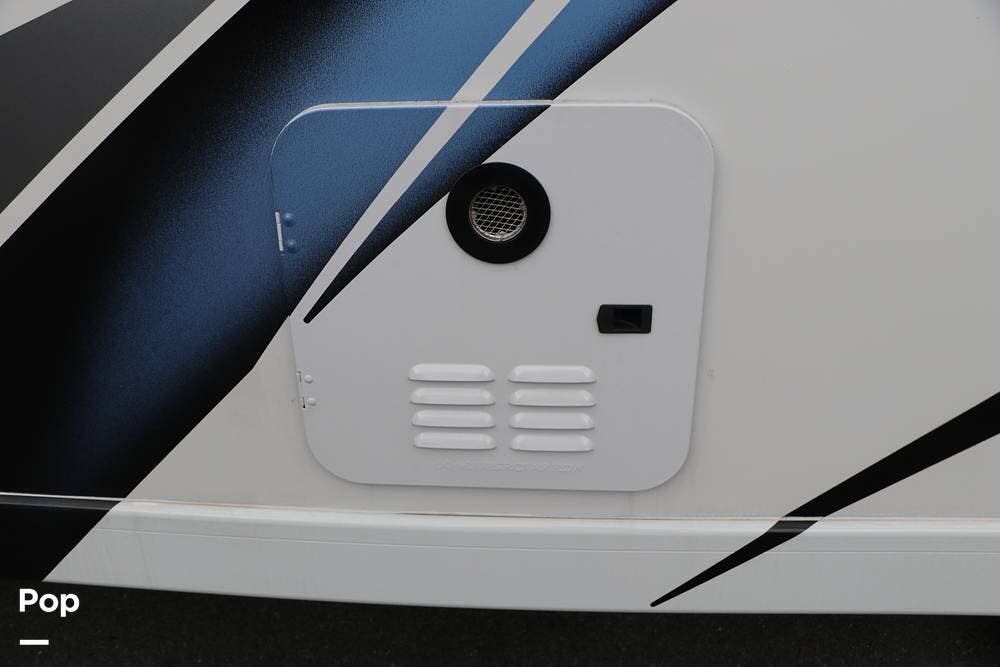 This RV is great for family outings or tailgating at your favorite team's events. The RV features a large power patio awning - an exterior TV mounted on a bracket that allows viewing from multiple angles. The exterior kitchen features a retractable refrigerator/freezer and a large electric griddle. The large rear storage compartment also has a plastic table that can be quickly set up to augment the outdoor kitchen and has access from three points for easy access to the items stored in this large space.
