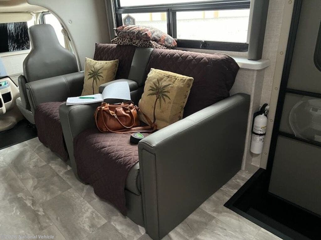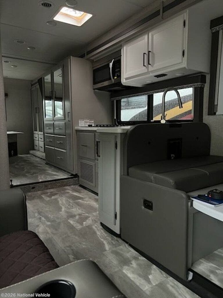 Step inside to a welcoming interior that maximizes both living and storage space. Relax in the spacious lounge area with comfortable seating, a versatile dinette, and large windows that bring the outdoors in. The fully equipped kitchen makes meal prep on the road a breeze with modern appliances, generous counter space, and smart storage solutions - perfect for everything from quick snacks to full-course meals.
