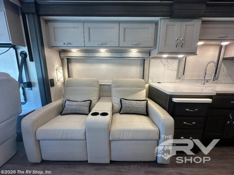 With any Riviera Class A diesel motorhome by Thor Motor Coach, you will enjoy a luxury home on wheels wherever you decide to roam! You will appreciate a capable Freightliner CS-S straight rail chassis with an Atlas foundation and better fuel mileage with the Cummins ISB-XT 6.7L diesel engine. There is a spacious basement pass-through storage for your camp gear, a powered patio awning with LED lighting, and an exterior 40" LED TV for outdoor movie nights. You will be able to enjoy your coach for years to come thanks to the durable construction materials that include a welded tubular steel floor, Vacu-Bond laminated roof, walls, and floor, plus a one-piece domed roof membrane. The elegant interior is designed with luxury vinyl tile flooring, "Studio Collection" cabinetry, solid surface countertops, and designer backsplash in the kitchen. Some of the amenities you'll appreciate on each model include the RapidCamp+ multiplex wiring control system, a tankless water heater, and an Onan RV QD 6000 diesel generator. Enjoy your RV life with a Riviera Class A diesel coach!