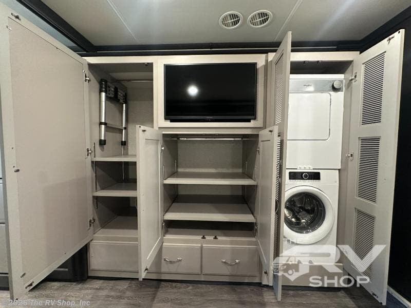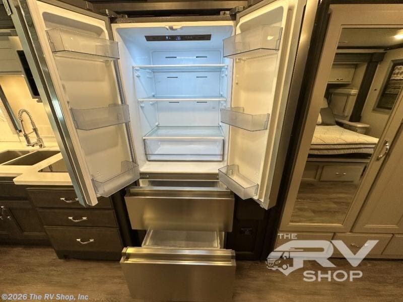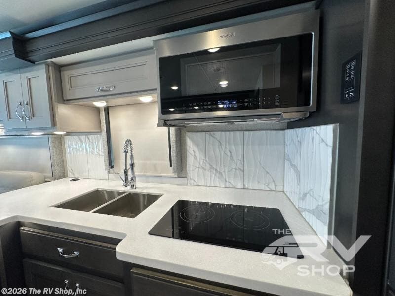 If you're traveling and camping with friends and family, this coach is sure to come in handy with its triple slides and a bath and a half! Once you arrive at the campsite, set up the 20' power lateral arm awning with LED lights, unpack your gear from the pass-through storage, and watch the game with the exterior 40" LED TV. If you'd rather enjoy some time inside, you'll find the 68" theater seating across from the 50" TV to be accommodating, plus there is a 68" sofa and a 72" Dream Dinette for more seating space! This Riviera kitchen includes a pull-out countertop for more prep space, a two burner electric induction cooktop, plus a pantry and a 15.7 cu. ft. French Door residential refrigerator for food storage! When you're ready to turn in for the night you'll enjoy the Tilt-A-View inclining king bed across from a 32" LED Smart TV, and the full rear bath with ample space to get ready for bed!