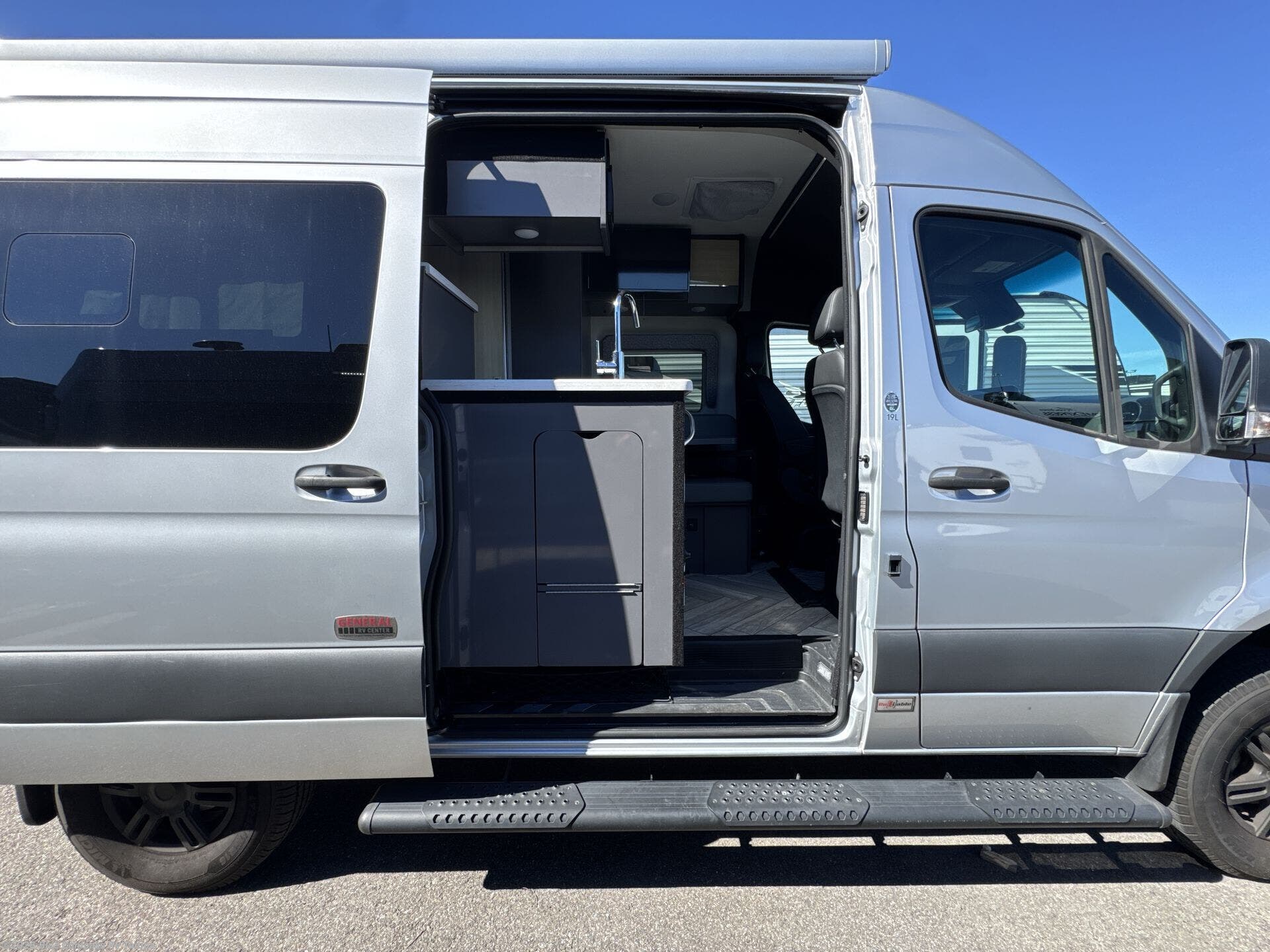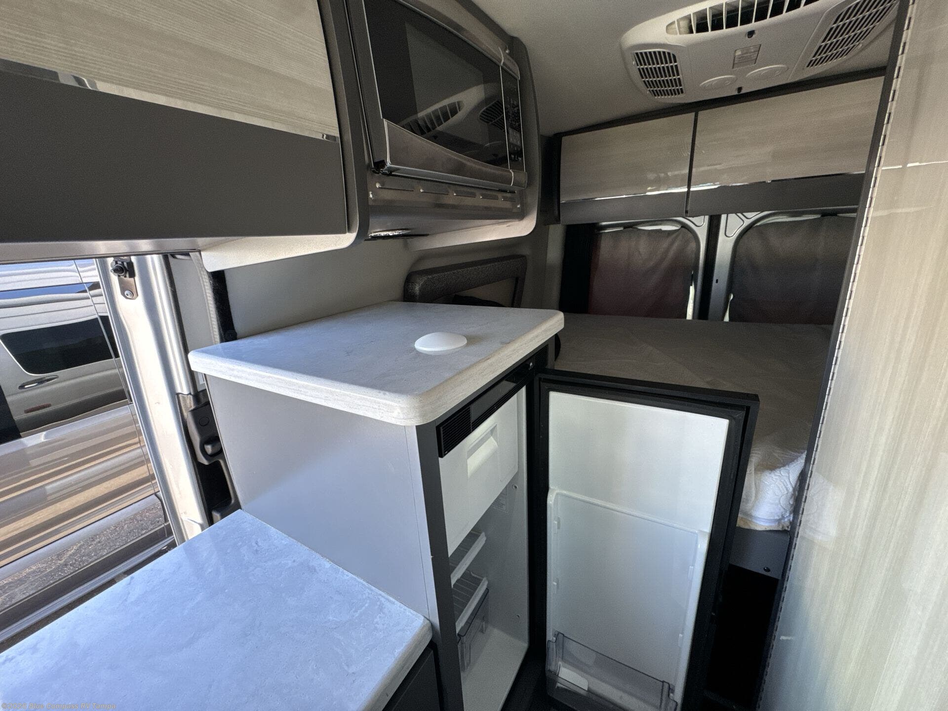 When you love to explore without sacrificing luxuries such as having your own 51" x 74" bed at night, this camper van will be perfect for two! The captain's chairs swivel to offer more seating space to utilize the removable table in front of the side seating, and to watch TV once at your destination. The kitchen includes a single door refrigerator, a microwave oven, and solid surface countertops with a single bowl sink. For cooking, you will find a single burner induction cooktop. The fold-out exterior table allows you to dine outside under the power awning with integrated LED lighting. There are many more standard features and a few options to choose from, start exploring today!