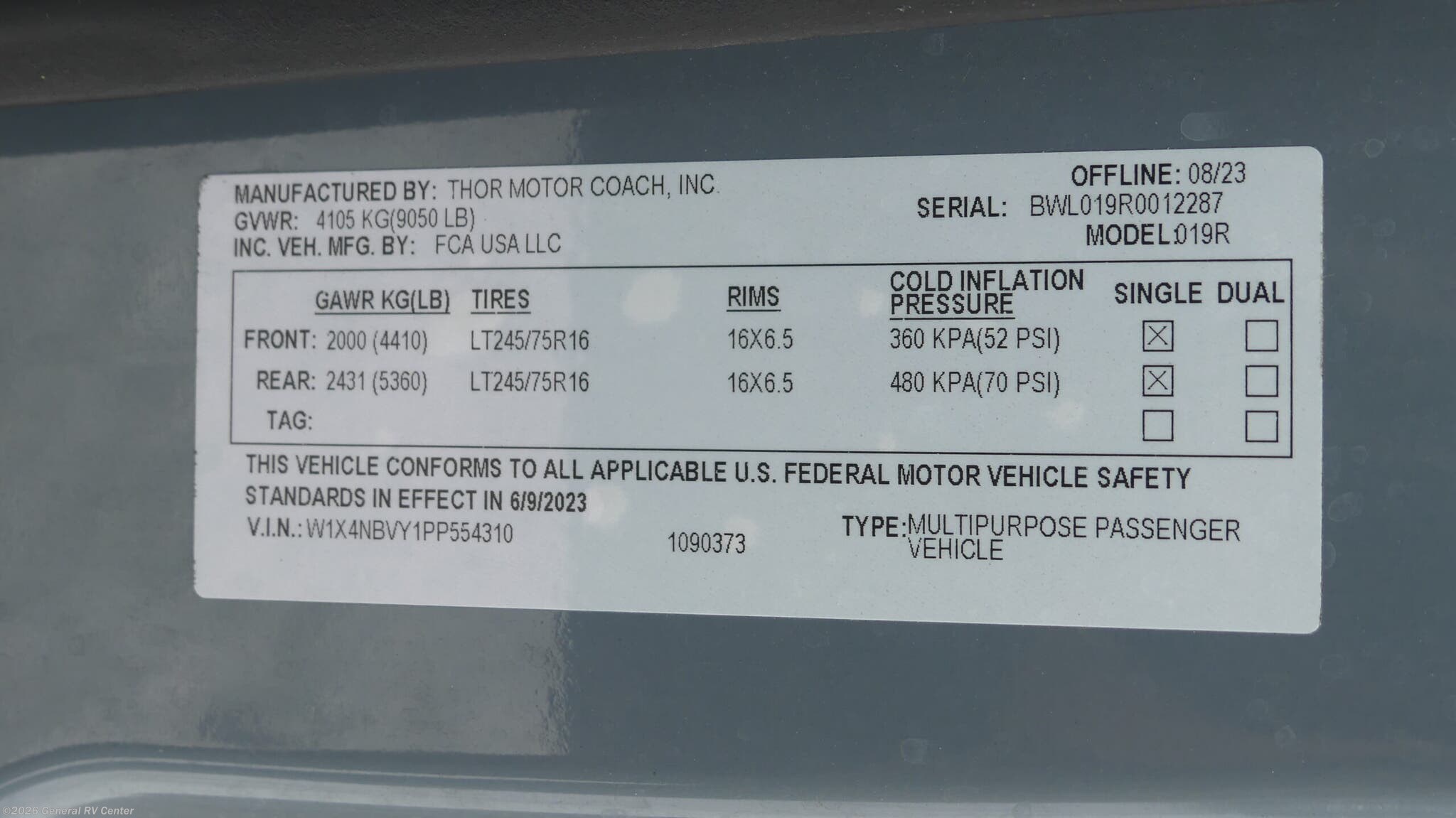 Request More Info on this 2024 Thor Motor Coach Sanctuary 19R Offered for sale by General RV Center
