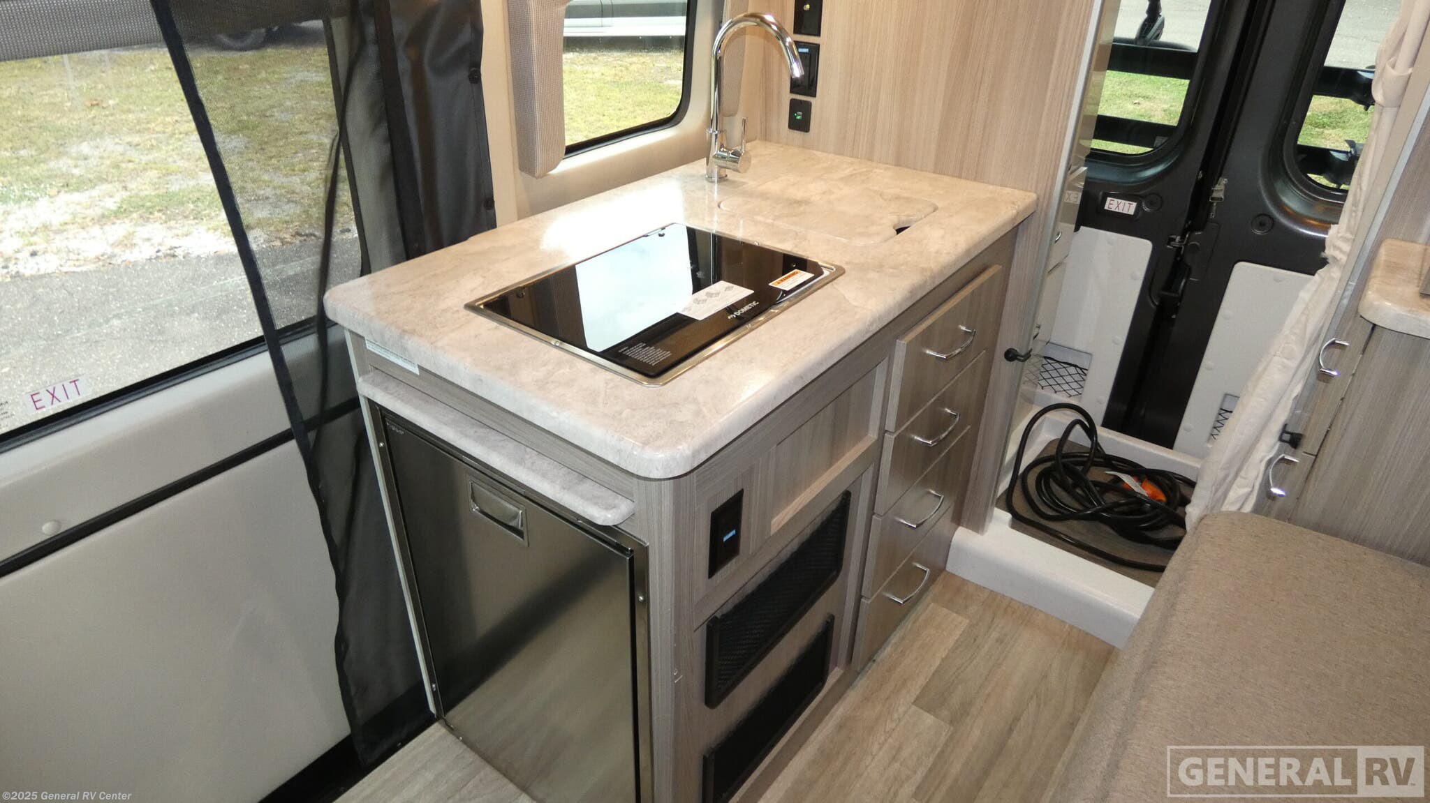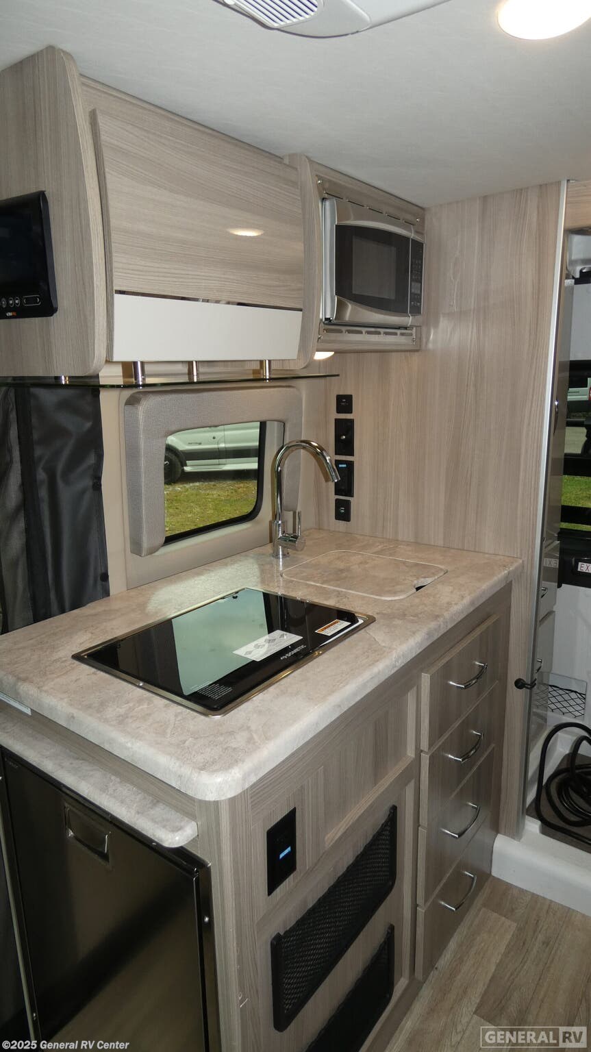 Experience the freedom of the open road with the 2024 Thor Motor Coach Scope 18M. This compact yet versatile RV is designed for those who crave adventure without sacrificing comfort. At just under 18 feet, it offers a nimble driving experience while packing in essential amenities. The front living area features swivel chairs, perfect for relaxing or entertaining guests. The center kitchen is equipped with a two-burner cooktop and a compact electric refrigerator, making meal preparation a breeze. The cleverly designed pull-out bed promises a restful night's sleep, transforming the space efficiently. A rear wet bath with a shower curtain ensures you have the essentials covered, while ample storage keeps your belongings organized. With a powerful Pentastar V6 engine on the ProMaster 3500 chassis, you'll enjoy a smooth ride and impressive towing capacity. The 10-foot powered retractable awning extends your living space outdoors, perfect for enjoying the scenery. Discover the perfect blend of functionality and style with the Scope 18M at your nearest General RV dealership.